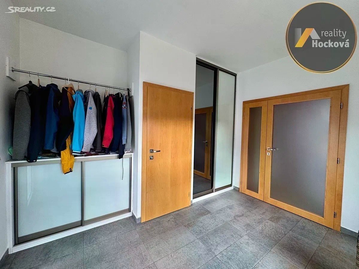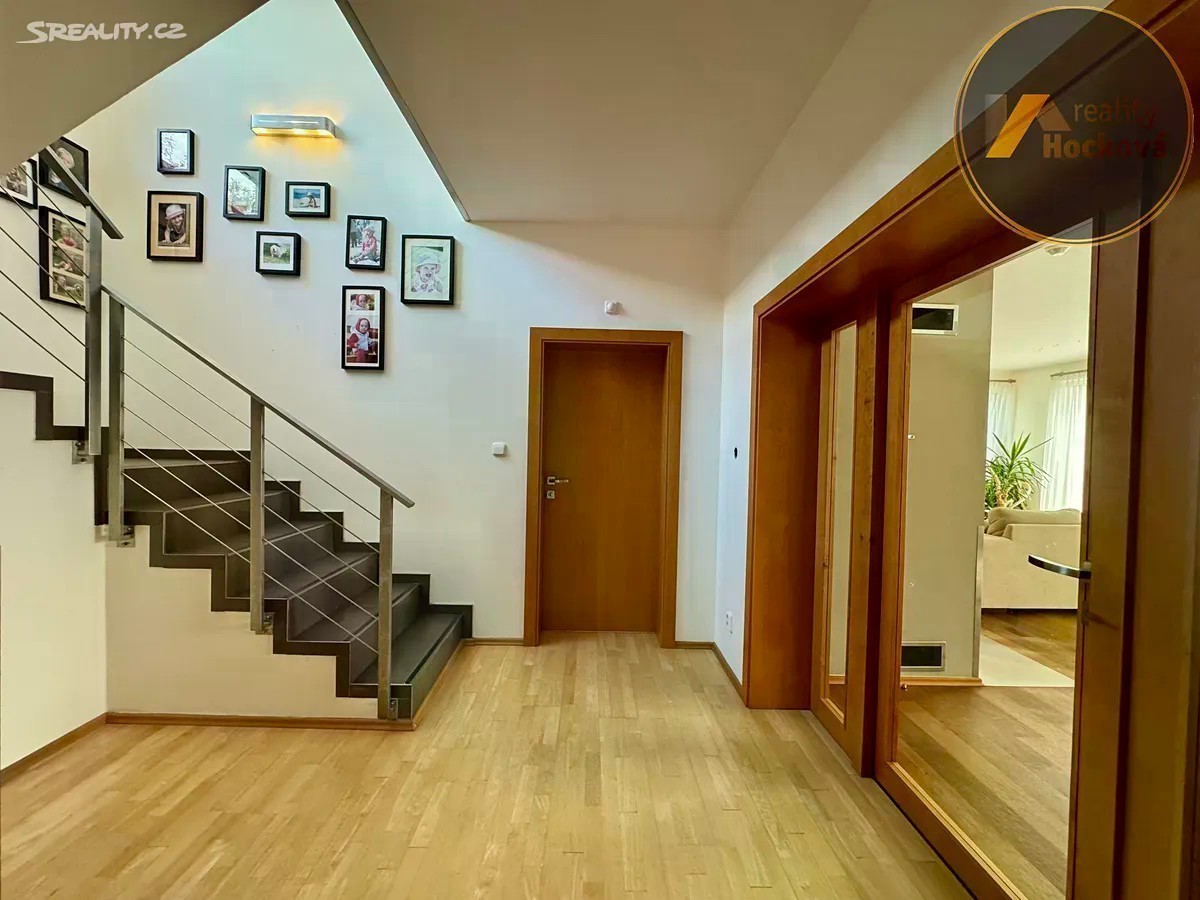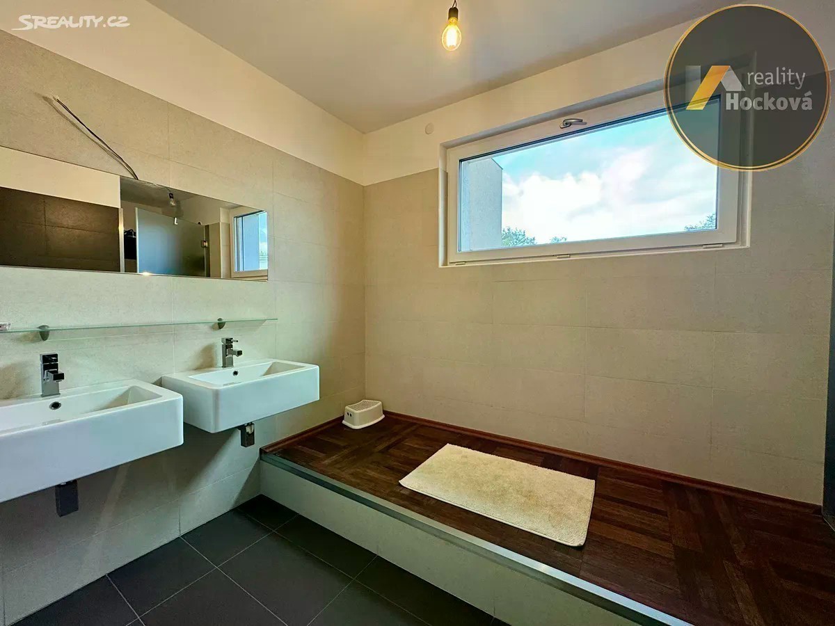 Nabízíme k dlouhodobému pronájmu samostatně stojící rodinný dům 6+kk s užitnou plochou přes 333m², který se nachází v klidné a vyhledávané lokalitě Praha 5 - Lipence. Dům stojí v tiché ulici Ke Štěrkovně a nabízí komfortní rodinné bydlení s nadstandardním vybavením, krásnou zahradou, bazénem, dvougaráží a venkovní kuchyní s grilem. Dispozice domu: Přízemí (1. NP): Vstupní hala navazuje na technickou místnost a dvougaráž s přímým vstupem do domu. Z haly se vchází do chodby, odkud je přístup do komory, samostatného WC, prostorné koupelny s dvojumyvadlem a sprchovým koutem a také do ložnice v přízemí. Dominantou domu je rozsáhlý obývací pokoj s krbem, jídelní část a moderní kuchyně s dostatkem pracovního i úložného prostoru. Pod schodištěm se nachází praktický úložný prostor. Patro (2. NP): V horním podlaží se nachází pracovna, hlavní ložnice se šatnou a další dva samostatné pokoje, ze kterých je vstup na balkon s výhledem do zahrady. Dále zde najdete prostornou koupelnu s vanou, sprchovým koutem a dvojumyvadlem a samostatné WC. Vybavení a technické zázemí: Dům je vytápěn tepelným čerpadlem a disponuje podlahovým vytápěním v celém domě. Samozřejmostí je alarm, předokenní žaluzie a dálkové ovládání garážových vrat. Na udržované zahradě se nachází zastřešený bazén, pergola s venkovní kuchyní a grilem - ideální místo pro letní posezení a rodinné oslavy. Lokalita: Praha 5 - Lipence nabízí klidné rezidenční bydlení v blízkosti přírody, přesto s výbornou dostupností do centra Prahy. V místě je základní občanská vybavenost - mateřská a základní škola, obchod, restaurace, dětská hřiště a možnost sportovního vyžití (golf, cyklostezky, řeka Berounka). Další informace Dispozice: 6+kk Dvougaráž (s možností parkování i obytného vozu) + další parkovací stání na pozemku Bazén, venkovní kuchyně s grilem a pergolou Podlahové vytápění, tepelné čerpadlo Alarm, předokenní žaluzie. Nájemné 70.000,-/měsíčně, vratná kauce 140.000,-, provize ve výši měsíčního nájmu, zálohy 1.000,-/osoba vodné, stočné a elektřina se přehlašuje na nájemce. Volný od 1. 12. 2025 Kontakt: *********