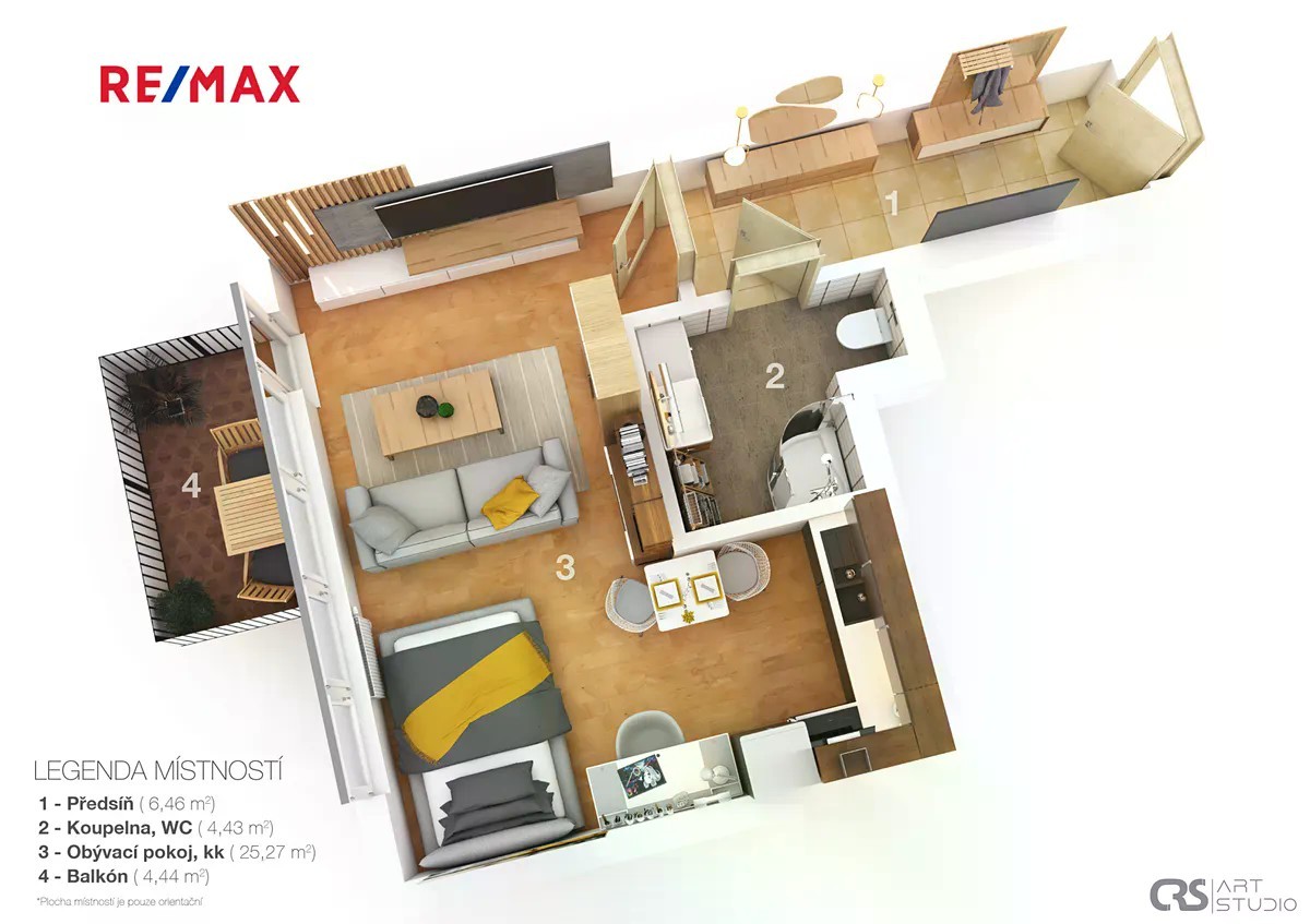 Byt 1+kk s balkonem, komorou (celkově 43 m²) a prostorným garážovým stáním. Hledáte bydlení v Praze, avšak zároveň na klidném místě s dosahem přírody a zeleně, s možností procházek, cyklovýletů a s dobrým spojením do centra jak MHD, tak třeba i vlakem? Představujeme Vám kompletně zařízený byt 1+kk s bezbariérovým vstupem a dostatečně širokými vstupními i domovními dveřmi a výtahem, který se nachází v Praze 14, Hostavicích, ul. U Hostavického potoka. Byt v osobním vlastnictví se nachází v prvním patře nízkého domu z roku 2010 (bytový projekt Jahodnice). Ačkoli je tento byt o velikosti 1+kk, je šikovně dispozičně řešený a nabízí tak plnohodnotné bydlení pro jednu až dvě osoby - obývací část, dvoulůžko, velký pracovní stůl, prostorná kuchyň, koupelna s WC dohromady, předsíň. Byt je příjemně světlý, což zajišťují velká okna. Pro relaxaci a například k pěstování bylinek můžete využít příjemný balkon. K bytu patří komora a velké garážové stání, které se nacházejí v sousedním domě (i odtud je možné se do bytu dostat bezbariérově). Výměry: • předsíň 4,46 m² • koupelna + WC 4,40 m² • obývací pokoj + kuch. kout 25,31 m² • balkon 4,20 m² • komora 2,67 m² • parkovací místo cca 15 m² Byt se prodává kompletně zařízený. Je možné jej tedy začít rovnou využívat bez starostí s pořizováním nábytku a stěhováním. Okolí je velmi hezké, v těsné blízkosti domu se nachází velký park, jako stvořený k procházkám, relaxaci, ale i k pohybu (venkovní hřiště / posilovna) a který protínají cyklostezky. Zastávka autobusu je cca 5 min od domu. Autobusem se za cca 20 min. dostanete na stanici metra Hloubětín. Procházkou cca 10 min. dojdete na vlakové nádraží Praha - Dolní Počernice. Nájezd na Štěrboholskou spojku cca 5 - 10 min. (dle dopravy). Kousek od domu je supermarket Albert a příjemné kavárny. Vytápění a ohřev vody jsou dálkově, v bytě je pouze elektřina (plyn není v domě zaveden). Aktuální náklady na byt jsou ve výši 3 120,- Kč (včetně fondu oprav 543,- Kč) plus náklady na elektřinu. Nákup bytu je možné financovat hypotečním úvěrem, s jehož vyřízením Vám rádi pomohou naši hypoteční specialisté. Pro sjednání prohlídky a další informace kontaktujte prosím makléřku nemovitosti.