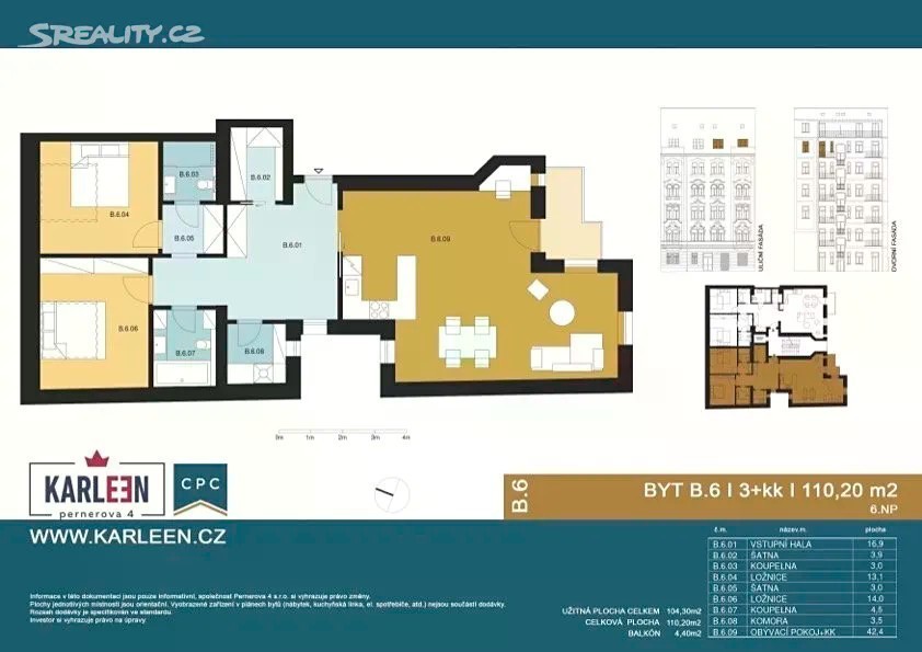 Exkluzivně nabízíme prodej nového bytu 3+kk o celkové ploše 110 m² v Karlíně v nově zrekonstruovaném činžovním domě. Tento elegantní byt s prostorným balkonem se nachází v 6.NP s výtahem. Byt je úplně nový a nebyl ještě obývaný. Byt je kompletně designově vybavený a připravený k okamžitému nastěhování. Součástí je nejen stylová kuchyňská linka se spotřebiči z dílny Art Room, ale také vestavěné skříně, závěsy a další vybavení vyrobené na míru ve vysokém detailu, např. postele včetně matrací od studia Dorelan nebo noční stolky od firmy Kartell. K bytu patří prostorný sklep v -1.PP. Byt vzniknul jako půdní nástavba v rámci rekonstrukce činžovního domu, který byl zkolaudován na podzimu roku 2023. V přízemí domu je instalován Smart Box, který je vhodný pro ukládání zásilek, nákupů či jiného využití na principu Alzaboxu. Stylové, nové bydlení v reprezentativním domě v jedné z nejžádanějších pražských lokalit. Ideální pro ty, kteří hledají moderní komfort v tradičním karlínském stylu.