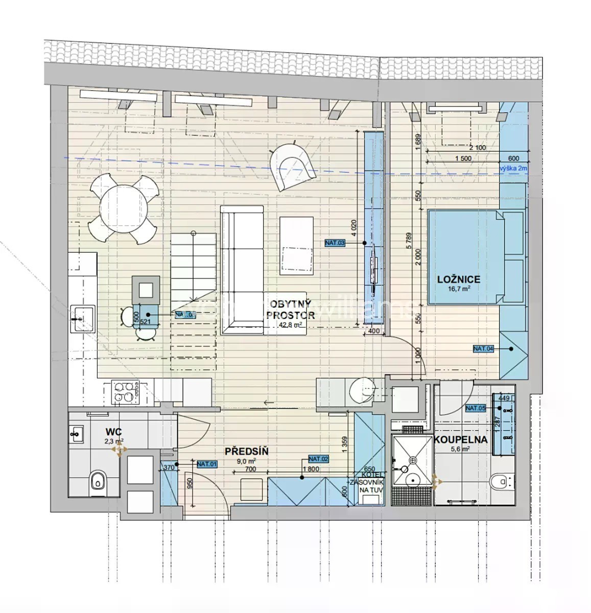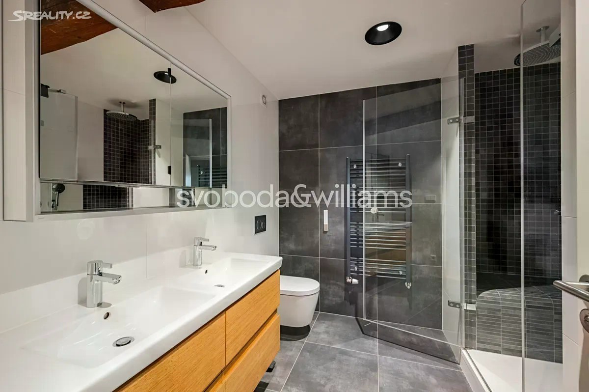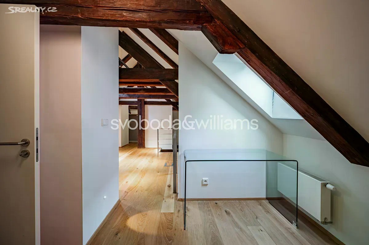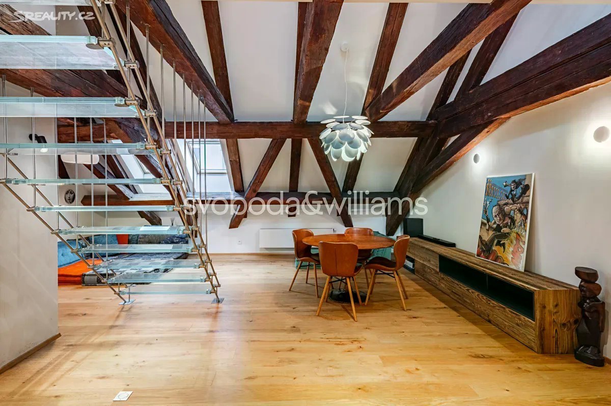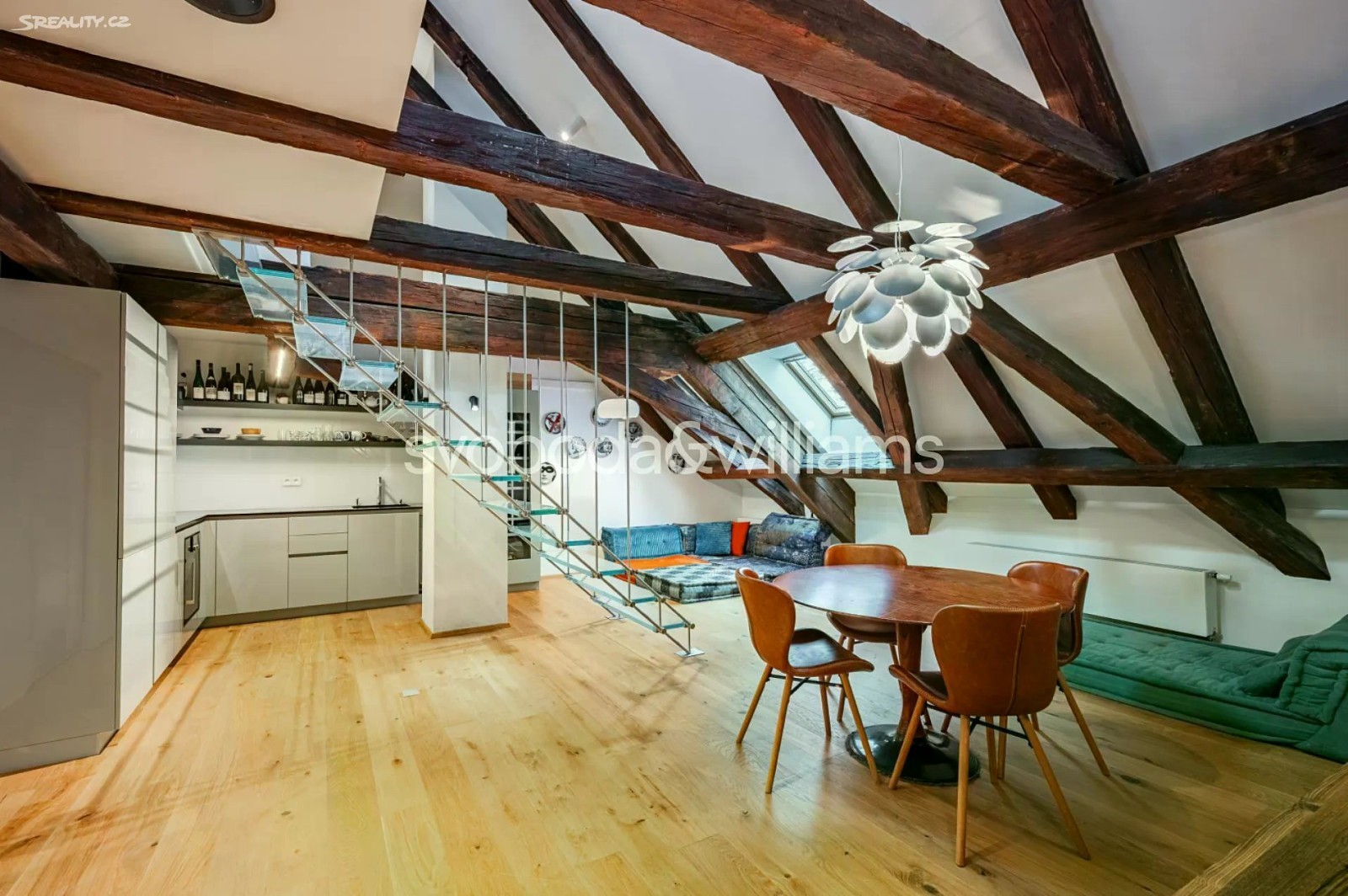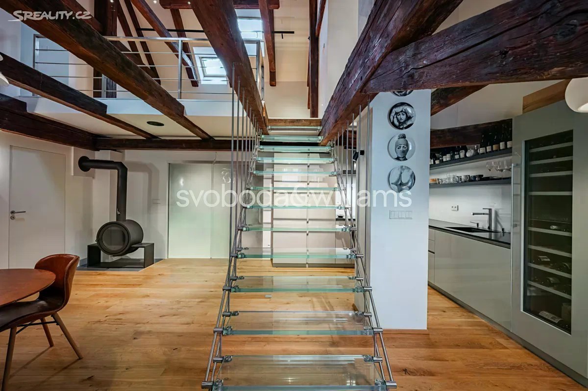 Stylový mezonetový byt vznikl v roce 2020 citlivou a architektonicky zdařilou půdní vestavbou v podkroví památkově chráněného městského domu U Krkavců. Nemovitost je situována v tichém vnitrobloku přímo v srdci Starého Města, jen několik kroků od Staroměstského náměstí a Pařížské ulice. Spodní podlaží mezonetu sestává z konceptu propojeného obývacího pokoje, jídelny a kuchyně se skleněným schodištěm do patra, ložnice s en-suite koupelnou, samostatné toalety a vstupní haly s vestavěnými skříněmi. V horním patře se nachází otevřená galerie s variabilním využitím, prostorná šatna, pracovní kout a další koupelna. Pěkně udržovaný pavlačový dům, jehož historie sahá až do 15. století, je bez výtahu. Autentickou atmosféru podkrovního bydlení podtrhuje odhalené dřevěné trámoví a krb na dřevo. Interiér je zařízený na míru s důrazem na použití kvalitních materiálů. Kuchyně je vybavena nejvyšší řadou spotřebičů značky Gaggenau včetně domácí vinotéky. Vytápění je řešeno vlastním kotlem a nechybí ani příprava na klimatizaci. Prestižní lokalita Starého Města spojuje historický genius loci s moderním městským životem, v okolí se nachází špičkové restaurace, kavárny, butiky i kulturní instituce. Za nákupy lze vyrazit do Pařížské i nedalekého obchodního centra Palladium. Veškerá občanská vybavenost v pěším dosahu, výbornou dopravní dostupnost zajišťuje stanice metra a tramvajových zastávek Náměstí Republiky. Podlahová plocha cca 109 m2. Jednotka je v prohlášení vlastníka vedena jako 2+kk s (neaktualizovanou) výměrou 77,1 m2.