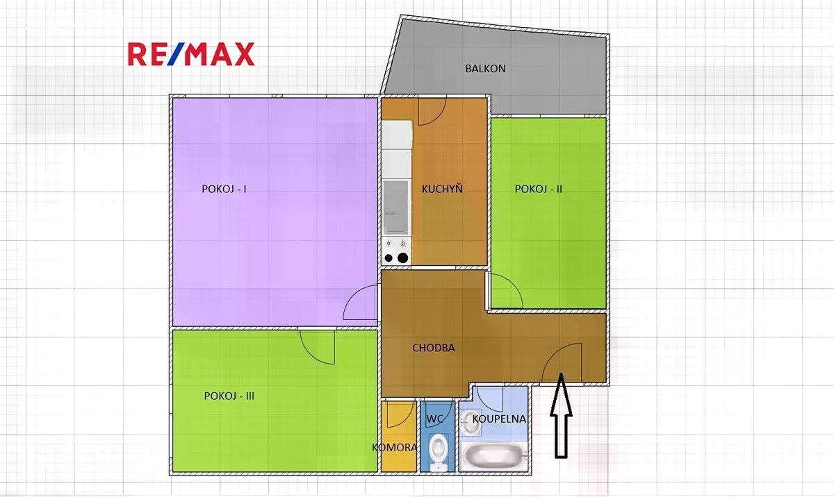 Prodej bytu 3 + 1 s velkým balkonem, na ploše 78 m2, umístěný v II.NP. Rozložení místností je vidět na přiloženém půdorysu. V případě koupě bytu jako investice pro následný pronájem, lze snadným způsobem v bytě vymezit čtyři samostatné pokoje se společným sociálním zázemím a kuchyní s balkonem (ideálně pro studenty). Byt se nachází v ulici Čajkovského č. p. 914/54, s dobrou dostupností do centra města, ale také fakultní nemocnice a univerzity. Pro volnočasové aktivity jsou nedaleko hradecké lesy. Zastávka MHD je vzdálena 100 m od domu, v domě je prostorná společná kolárna a také k bytu náleží zděný sklep s plochou 5 m2 k parkování hodnotnějších dopravních prostředků (kola-koloběžky). V případě zájmu o prohlídku nás neváhejte kontaktovat.