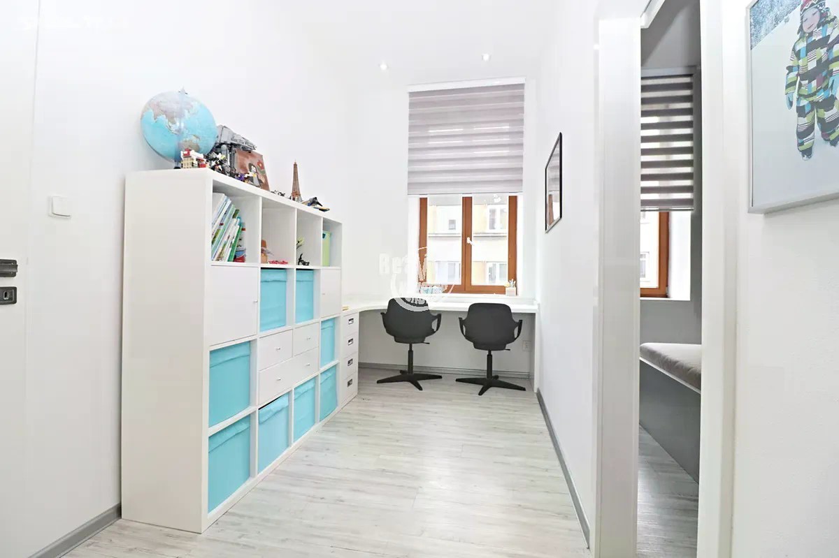 Pronájem zděného, kompletně zrekonstruovaného a nadstandardně vybaveného bytu 4+1, Bezručova, Jihlava Jedná se o bytovou jednotku v klidném zrekonstruovaném domě v ulici Bezručova, nedaleko centra města Jihlavy. Byt se nachází ve druhém patře (3. NP). Dispozičně byt nabízí svým obyvatelům vstupní chodbu s vestavnou skříní, na kterou navazuje koupelna s vanou a toaletou. Dále se vstupuje do kuchyně s vestavnou kuchyňskou linkou, americkou lednicí a jídelním stolem. Přímo na kuchyň navazuje prostorný obývací pokoj s křeslem a sedací soupravou. Dále se přes průchozí pracovnu vstupuje samostatně do ložnice a dětského pokoje s patrovou postelí. Mimo vestavné skříně v bytě je součástí pronájmu také prostorný sklep a teoreticky také půdní prostor. Celý byt je vybaven podlahovým vytápěním poháněným samostatným plynovým kotlem, který zároveň také ohřívá teplovou vodu. Samozřejmostí je připojení k internetu optickým kabelem. V okolí domu je dostatek parkovacích stání a veškerá občanská vybavenost v pěší dostupnosti včetně MHD. Na začátku nájemního vztahu se hradí 50.000,-Kč vratná kauce, 20.000,-Kč nájemné na první měsíc bydlení a 20.000,-Kč je platba kanceláři. Byt je aktuálně připraven k nastěhování. Bližší informace Vám rádi poskytneme při osobním jednání.