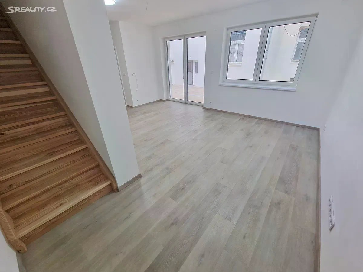 Novostavba právě dokončeného rodinného domu postaveného ve vnitrobloku. Dispozice přízemí: Obývací pokoj s kuchyňským koutem, předsíň, WC s mísem pro pračku a sušičku, 1.patro dva neprůchozí pokoje (jeden s menším balkonem) a koupelna se sprchovým koutem. K dispozici je vlastní dvůr před domem ve vnitrobloku. Všechna okna i dveře jsou vybavena předokenními elektrickými hliníkovými žaluziemi. Dům je k dispozici v průběhu listopadu. El. topení v podlaze + rekuperace zajišťuje nízké náklady na bydlení. Předpokladaná spotřeba 7000 elektřina + 500 st. voda. Nájemné 42tis, vratná kauce ve výši dvou nájmů, odměna RK. Dům je vhodný např. pro rodinu s dětmi. Majitelé preferují nájemce bez zvířat. Předpoklad dlouhodobého nájmu.
