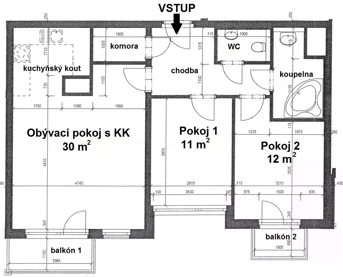 Nabízíme exkluzivně k prodeji byt 3+kk o podlahové ploše 71 m2 + 2x balkón ve 4. patře velmi dobře udržované novostavby z roku 2012 s vlastní uzavíratelnou garáží (19 m2) a velkým sklepem (10 m2). Bytu dominuje hlavní obývací pokoj s kuchyňským koutem (30 m2). Moderní kuchyňská linka je plně vybavena (elektrická trouba, mikrovlnná trouba, sklokeramická varná deska, lednice mrazák). Z obývacího pokoje je vstup na větší balkón (3,5 m2). V další části bytu se nachází dva samostatné pokoje (11 a 12 m2), přičemž jeden z nich má vlastní menší balkón (2 m2). V prostorné koupelně (5 m2) s rohovou vanou je prostor pro umístění standardně velké pračky (šíře 60 cm). WC zvlášť. K dispozici je také praktická komora v bytě (2,3 m2) a velký sklep u garážového stání ve třetím podzemním podlaží. Garáž o ploše 19 m2 má rozměry 2,87 x 6,67 m, přičemž vjezd je vrata umožňují vjezd pro vozidla o maximální šířce 2,24 m a výšce 1,94 m. Velkokapacitní sklep má plochu 10 m2 a rozměry 5,6 x 1,7 m. Pár kroků od vstupních dveří od domu je k dispozici praktická kočárkárna. Byt poskytuje komfortní a moderní bydlení v blízkosti metra Letňany. Vinylové podlahy v bytě jsou nevratně poškozeny (vada materiálu při instalaci) a je nutná jejich výměna (jsme ochotni zorganizovat pokládku nové podlahy). Nejbližší MHD zastávka „Staré Letňany“ se nachází 5 min. pěšky od domu, bus jede 4 min. na metro Letňany. V docházkové vzdálenosti od domu základní občanská vybavenost (restaurace, obchody) a lesopark Letňany. Předpis záloh na služby (včetně poplatků za garáž) je ve výši 7.252 Kč / měs., z čehož fond oprav tvoří 2.035 Kč. Předpisy na služby vycházejí ze spotřeb čtyřčlenné rodiny (bývalých nájemců). Na byt lze čerpat hypotéku.