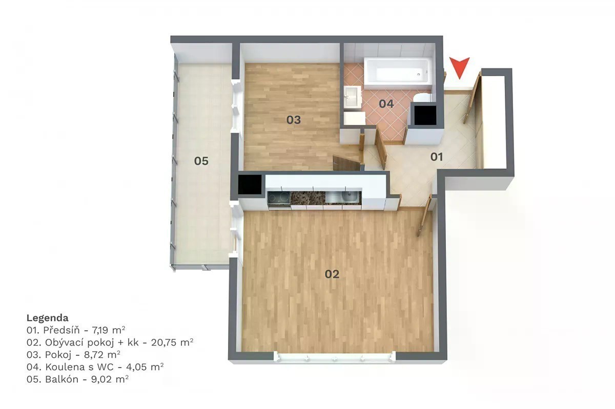 Přestěhujte se do Kyjí. Soccer Reality vám výhradně zprostředkuje pronájem pěkného a útulného bytu 2+kk/B o velikosti 50 m2 v pražských Kyjích. Byt se nachází ve 3. NP novostavby z roku 2015, orientace je na severozápad. Po vstupu vás přivítá předsíň s vestavěnou skříní, která je dostatečně prostorná pro uložení všech potřebných věcí. Z předsíně se dostanete do všech ostatních místností. Obývací pokoj je vybaven kuchyňskou linkou (lednice, myčka, trouba, sklokeramická deska, digestoř). Balkon v tomto pokoji nabízí výhled do okolí severozápadním směrem. Ložnice se nabízí nevybavená. Koupelna je s vanou, toaletou a přípravou na pračku. Byt je ideálním místem pro jednotlivce nebo pár, který hledá startovací bydlení v klidné části Prahy s dobrou dostupností do centra. Bytový komplex v Kyjích je výbornou kombinací klidu a ruchu velkoměsta. Lokalita je tichá a příjemná, do centra města se autem dopravíte během chvíle. K dispozici je také autobusová zastávka Sicherova, odkud se svezete na Černý Most nebo do Holešovic. V okolí najdete několik restaurací, fitness, mini-market, nákupní centra OC Letňany nebo Černý Most jsou v dojezdové vzdálenosti pěti minut.