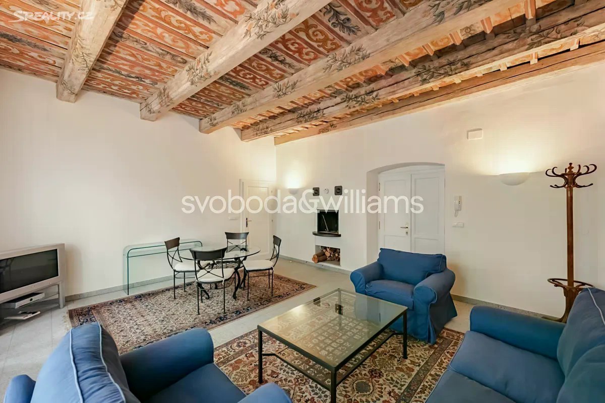 Stylový zařízený byt se 2 koupelnami, původním dřevěným malovaným stropem a výhledem na Čertovku, situovaný ve 2. patře kompletně zrekonstruované historické budovy s výtahem na Malé Straně. Půvabná historická lokalita na ostrově Kampa přímo u Čertovky, pár kroků od Karlova mostu, v pěším dosahu Pražského hradu a Starého Města. Byt byl kvalitně zrekonstruován za použití italských materiálů. Interiér tvoří 2 ložnice (jedna s vlastní koupelnou), samostatná koupelna, obývací pokoj s jídelnou, malovaným stropem a krbem, plně vybavený kuchyňský kout a technická komora. Zachované původní prvky, velká okna, vestavěné úložné prostory, dlažba, koberce, bezpečnostní dveře, plynový kotel, pračka, sušička, myčka, TV, alarm, výtah.