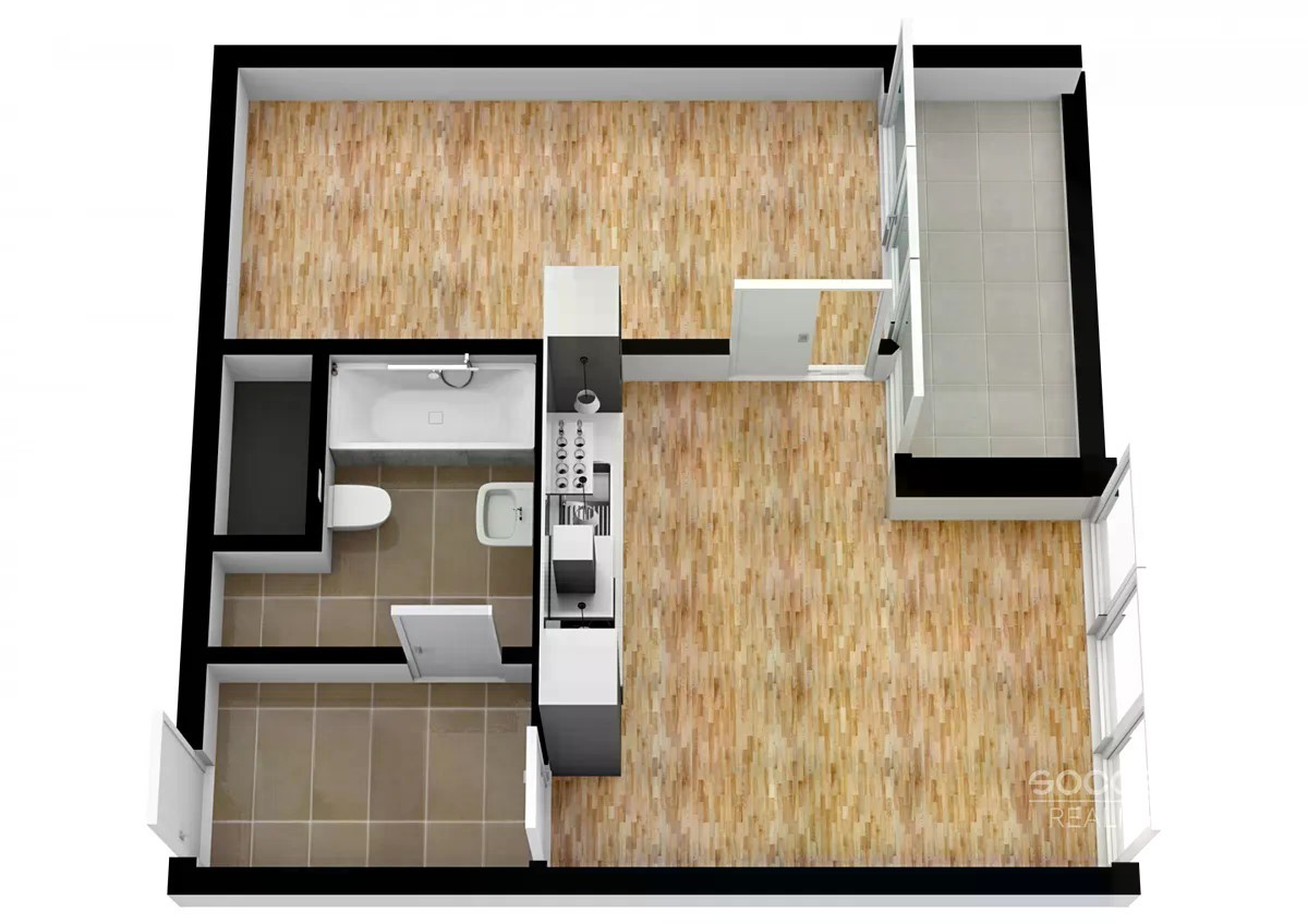 Jedná se o nový byt, který se nachází ve 2. patře prémiového, rezidenčního projektu Port Karolína. K bytu náleží balkon 5 m2 s orientací na východ. Byt je nezařízený, pouze kuchyňská linka se všemi spotřebiči. Ložnice je průchozí z obývacího pokoje a je rozdělena posuvnými dveřmi. Koupelna je s vanou a WC dohromady. Na podlahách je položena plovoucí podlaha a dlažba. Možnost internetu a kabelové TV. Karlín disponuje veškerou občanskou vybaveností, v okolí se nachází spousta restaurací a kaváren, obchody, divadlo, lékárna, pošta. U domu je cyklostezka vedoucí do centra Prahy a do Troji. Skvělá dostupnost MHD. Byt k dispozici od 1.12.2025.