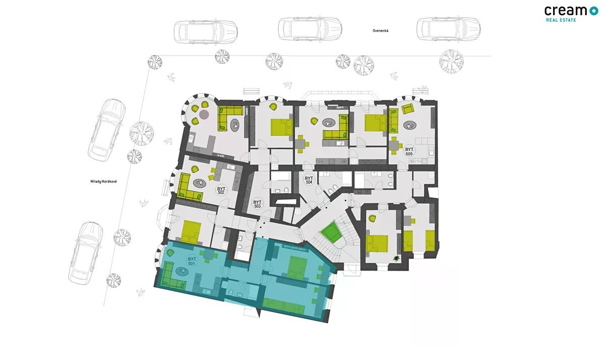 Exkluzivní byt k pronájmu v žádané lokalitě Praha 7, ulice Ovenecká. Velkorysý byt o dispozici 3+kk s rozlohou 74 m² se nachází v 5. NP a nabízí komfortní bydlení. Světlý a prostorný interiér je navržen s důrazem na moderní bydlení, zatímco jeho umístění v klidné části Prahy 7 zaručuje vynikající dostupnost do centra města i do parku Letenské sady. Interiér tvoří obývací pokoj, kuchyně propojená s jídelnou, oddělaná ložnice, pokoj, a koupelna s toaletou. Byt se pronajímá nevybavený. K dispozici bude od 1. ledna 2026. Byt se světlou výškou více než 3 metry pronajímáme po kompletní rekonstrukci. V bytě jsou nová špaletová izolační okna, dřevěné podlahy, obklady i dlažby. V kuchyni je kuchyňská linka včetně spotřebičů. V těsné blízkosti se nachází Letenské sady, které vybízí k relaxování, procházkám i schůzkám s přáteli. Přes třídu Milady Horákové se zase rozprostírá rozsáhlý park Stromovka, jenž láká k mnoha volnočasovým aktivitám. V pěší dostupnosti najdete vše potřebné - obchody, poštu, drogerii, lékárnu, kavárny, cukrárny, restaurace, školy a dětská hřiště. Historické centrum hlavního města (například Náměstí republiky a Pražský hrad) je vzdáleno zhruba 20 až 30 minut chůze. CREAM Real Estate poskytuje služby v oblasti realit, developmentu, facility managementu, energií a asset managementu. Hlavní provozovna sídlí ve Zlíně v bývalém areálu Baťovy továrny, který z významné části vlastní a revitalizuje. Všechny nemovitosti má v osobním vlastnictví.