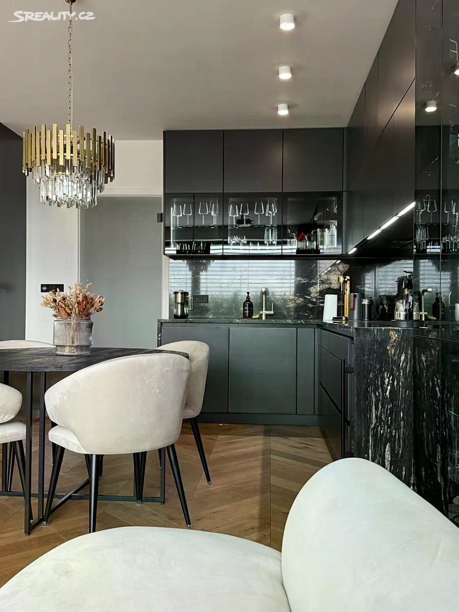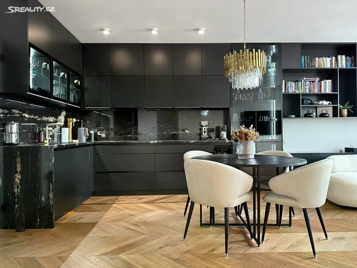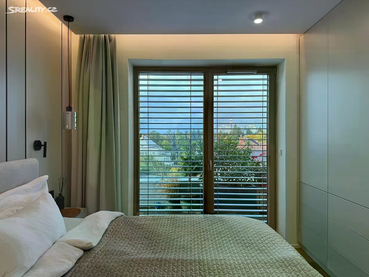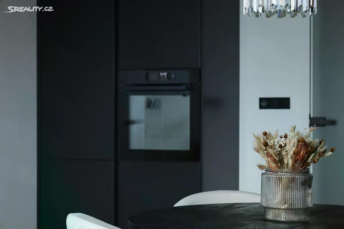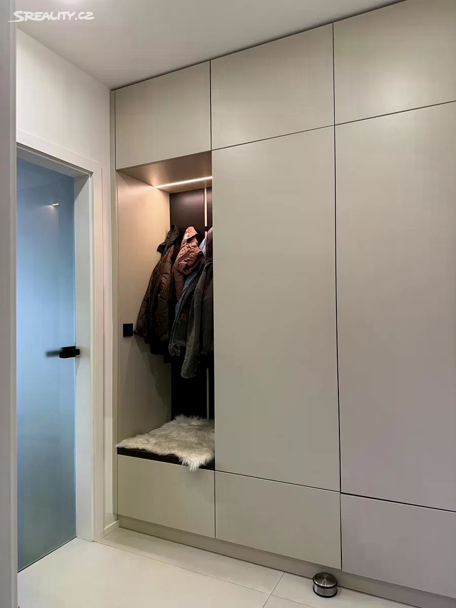 Nabízíme exkluzivní příležitost koupi této naprosto nadstandardní a ojedinělé nemovitosti. Projekt Rezidence Pod Lipami, který vznikl před necelými 3 lety obsahující kolem 80 bytů o dvou vchodech, je unikátní svým umístěním v docházkové vzdálenosti od samotného centra města s výhledem na čtvrť prvorepublikových vil. Nabízená nemovitost disponuje vestavěným nábytkem na míru od truhláře s povrchovou nadstandardní lakovanou úpravou. Kuchyňská linka se pyšní obložením z přírodního kamene o tloušťce až 3 cm s krémovo-zlatou žílou včetně dřezu z tohoto kamene, dále rovněž konferenční stolky a deska na odkládání nezbytností v předsíni tak, aby celý interiér zůstal designově propojený. Obývací pokoj s kuchyňským koutem o rozloze 33,5 m2. Ložnice s vestavěnou skříní po celé stěně 14,4 m2. Pokoj/pracovna 12,9 m2. Koupelna 5,3 m2. Samostatná toaleta 1,9 m2. Vstupní chodba 4,7 m2. Chodba 3,2 m2 Garážové stání 13,6 m2 x2. Sklep 2,2 m2. Velkou nevšedností jsou černá umyvadla a rovněž celočerné toalety. Koupelna disponuje prostorným walk-in sprchovým koutem. Díky rohovému situování poskytuje byt velké soukromí. Každá z místností má své LED podsvětlení. Velký důraz byl kladen na dostatek osvětlení, zásuvek a úložného prostoru. Součástí vybavení bytu jsou dále dřevěné dubové třívrstvé parkety, prémiové spotřebiče francouzské značky De Dietrich (trouba, myčka), lednice Liebherr, předokenní žaluzie ovládané přes aplikaci nebo dálkový ovladač, klimatizační jednotky v každé obytné místnosti (venkovní jednotka umístěná na střeše domu, a tak nezabírá místo na terase), interiérové dveře s vyšší hmotností pro komfortní tlumení hluku s magnetickými zámky, dřevěná okna. Terasa vedená podél celého bytu orientovaná od jihovýchodu po západ o rozloze 29,5 m2. Součástí ceny je veškerý vestavěný nábytek s vestavěnými spotřebiči. Měsíční náklady činí 36.962,- (nájemné družstvu včetně spotřeby vody, elektřiny, nákladů na správu domu, obě garážová stání a sklep). Garážová stání jsou vedle sebe a ihned u výtahu. Díky družstevnímu vlastnictví odpadá nutnost skládání celé kupní ceny nemovitosti naráz. Anuita k 30.9. 2025 činí 6.166.203,- Kč. Úroková sazba fixována do roku 2027. Převod do osobního vlastnictví možný kdykoliv. Bez provize RK. Osobní prohlídky možné pouze pro velmi vážné zájemce. Děkujeme za respektování.