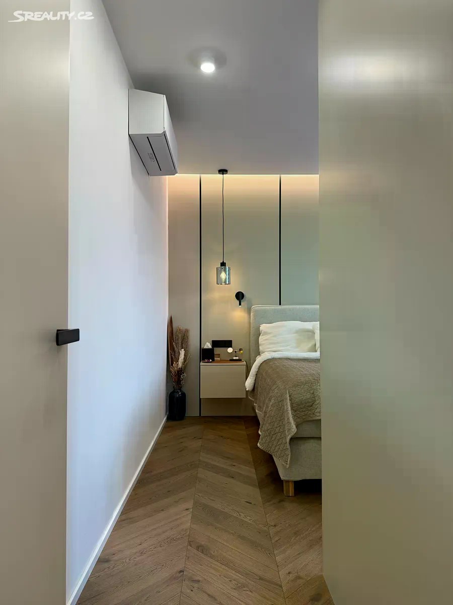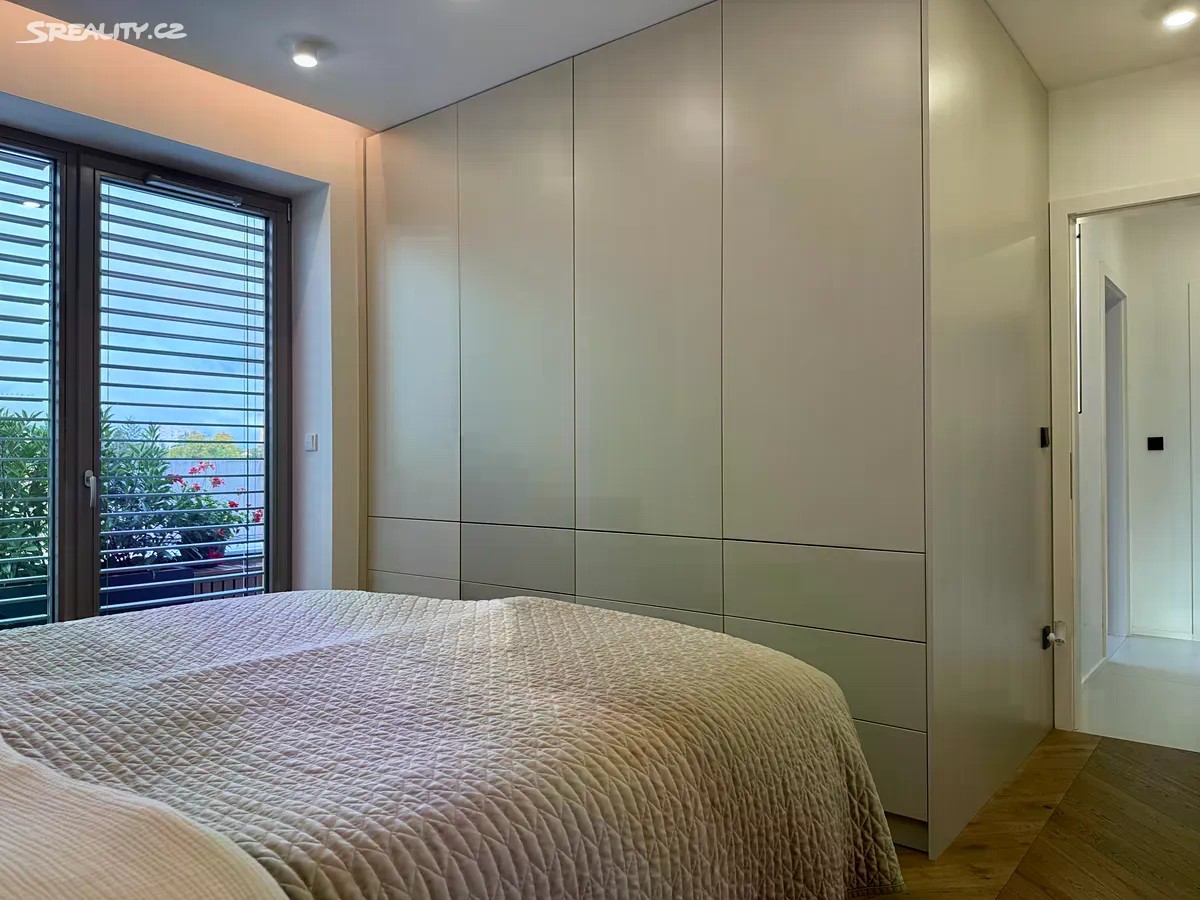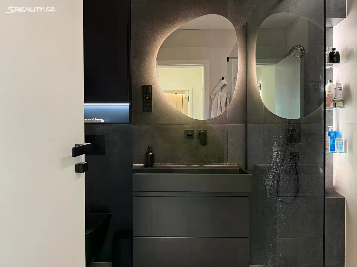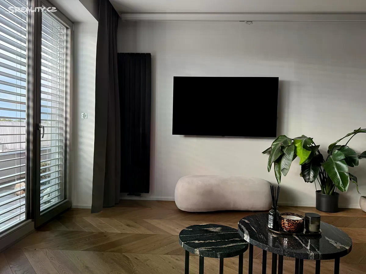 Nabízíme exkluzivní příležitost koupi této naprosto nadstandardní a ojedinělé nemovitosti. Projekt Rezidence Pod Lipami, který vznikl před necelými 3 lety obsahující kolem 80 bytů o dvou vchodech, je unikátní svým umístěním v docházkové vzdálenosti od samotného centra města s výhledem na čtvrť prvorepublikových vil. Nabízená nemovitost disponuje vestavěným nábytkem na míru od truhláře s povrchovou nadstandardní lakovanou úpravou. Kuchyňská linka se pyšní obložením z přírodního kamene o tloušťce až 3 cm s krémovo-zlatou žílou včetně dřezu z tohoto kamene, dále rovněž konferenční stolky a deska na odkládání nezbytností v předsíni tak, aby celý interiér zůstal designově propojený. Obývací pokoj s kuchyňským koutem o rozloze 33,5 m2. Ložnice s vestavěnou skříní po celé stěně 14,4 m2. Pokoj/pracovna 12,9 m2. Koupelna 5,3 m2. Samostatná toaleta 1,9 m2. Vstupní chodba 4,7 m2. Chodba 3,2 m2 Garážové stání 13,6 m2 x2. Sklep 2,2 m2. Velkou nevšedností jsou černá umyvadla a rovněž celočerné toalety. Koupelna disponuje prostorným walk-in sprchovým koutem. Díky rohovému situování poskytuje byt velké soukromí. Každá z místností má své LED podsvětlení. Velký důraz byl kladen na dostatek osvětlení, zásuvek a úložného prostoru. Součástí vybavení bytu jsou dále dřevěné dubové třívrstvé parkety, prémiové spotřebiče francouzské značky De Dietrich (trouba, myčka), lednice Liebherr, předokenní žaluzie ovládané přes aplikaci nebo dálkový ovladač, klimatizační jednotky v každé obytné místnosti (venkovní jednotka umístěná na střeše domu, a tak nezabírá místo na terase), interiérové dveře s vyšší hmotností pro komfortní tlumení hluku s magnetickými zámky, dřevěná okna. Terasa vedená podél celého bytu orientovaná od jihovýchodu po západ o rozloze 29,5 m2. Součástí ceny je veškerý vestavěný nábytek s vestavěnými spotřebiči. Měsíční náklady činí 36.962,- (nájemné družstvu včetně spotřeby vody, elektřiny, nákladů na správu domu, obě garážová stání a sklep). Garážová stání jsou vedle sebe a ihned u výtahu. Díky družstevnímu vlastnictví odpadá nutnost skládání celé kupní ceny nemovitosti naráz. Anuita k 30.9. 2025 činí 6.166.203,- Kč. Úroková sazba fixována do roku 2027. Převod do osobního vlastnictví možný kdykoliv. Bez provize RK. Osobní prohlídky možné pouze pro velmi vážné zájemce. Děkujeme za respektování.