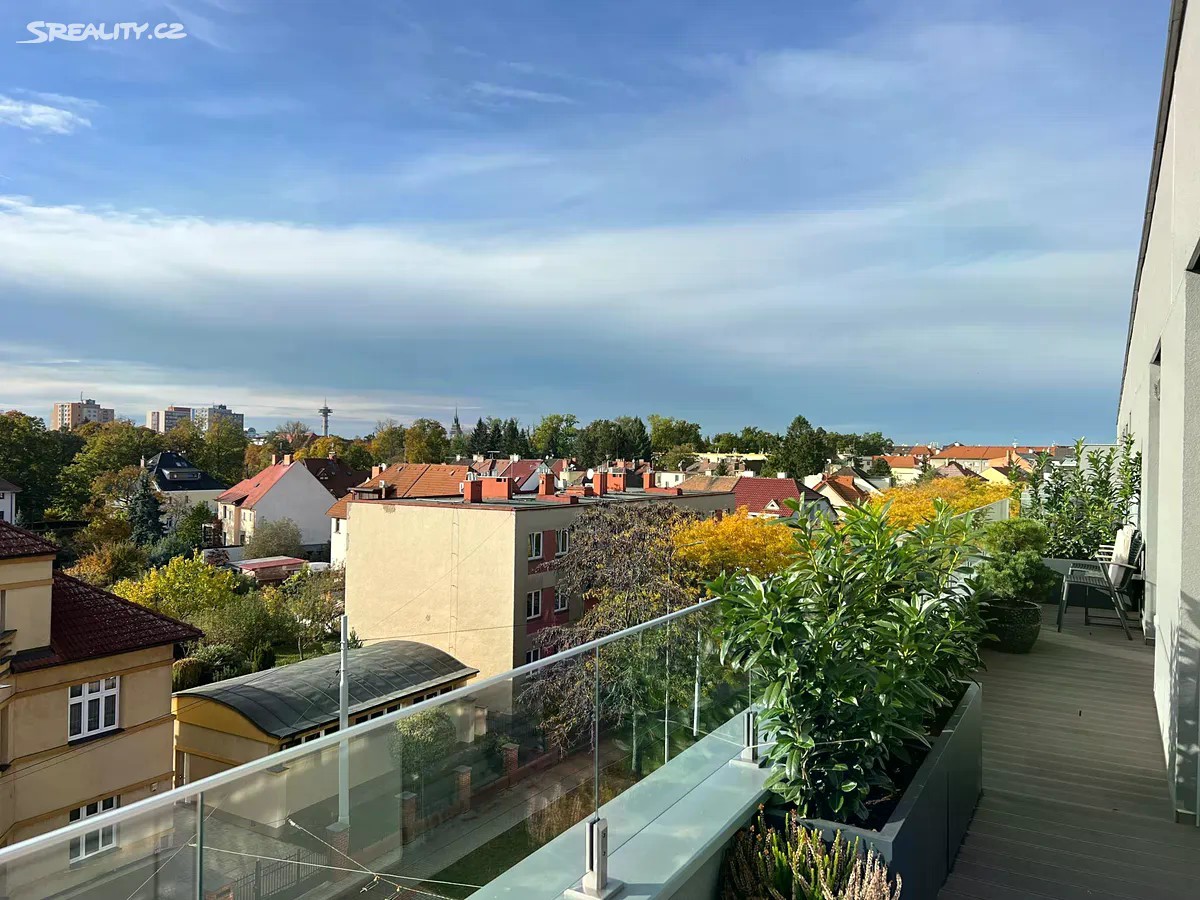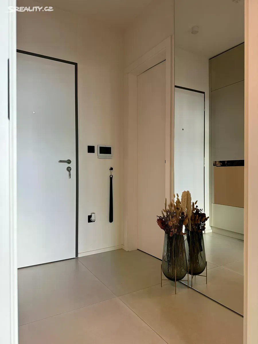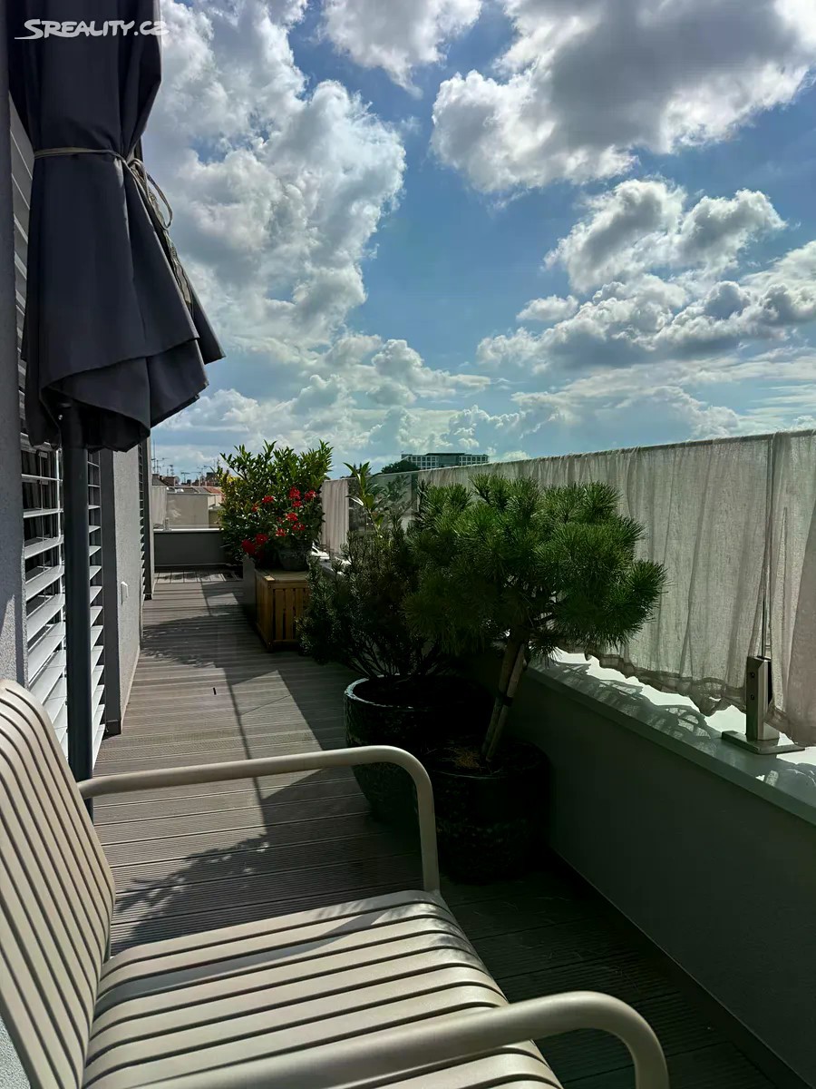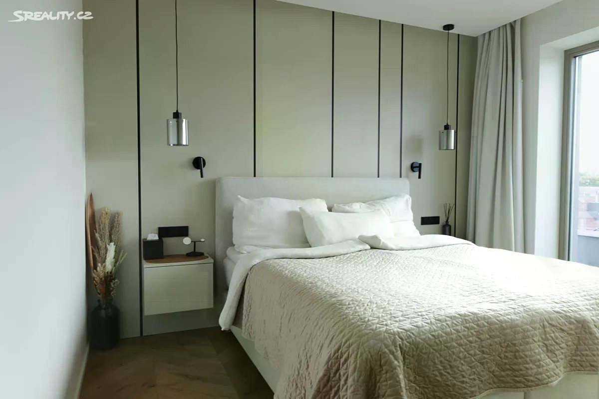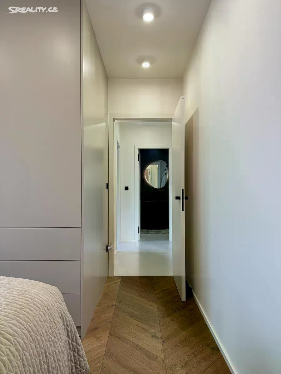 Nabízíme exkluzivní příležitost koupi této naprosto nadstandardní a ojedinělé nemovitosti. Projekt Rezidence Pod Lipami, který vznikl před necelými 3 lety obsahující kolem 80 bytů o dvou vchodech, je unikátní svým umístěním v docházkové vzdálenosti od samotného centra města s výhledem na čtvrť prvorepublikových vil. Nabízená nemovitost disponuje vestavěným nábytkem na míru od truhláře s povrchovou nadstandardní lakovanou úpravou. Kuchyňská linka se pyšní obložením z přírodního kamene o tloušťce až 3 cm s krémovo-zlatou žílou včetně dřezu z tohoto kamene, dále rovněž konferenční stolky a deska na odkládání nezbytností v předsíni tak, aby celý interiér zůstal designově propojený. Obývací pokoj s kuchyňským koutem o rozloze 33,5 m2. Ložnice s vestavěnou skříní po celé stěně 14,4 m2. Pokoj/pracovna 12,9 m2. Koupelna 5,3 m2. Samostatná toaleta 1,9 m2. Vstupní chodba 4,7 m2. Chodba 3,2 m2 Garážové stání 13,6 m2 x2. Sklep 2,2 m2. Velkou nevšedností jsou černá umyvadla a rovněž celočerné toalety. Koupelna disponuje prostorným walk-in sprchovým koutem. Díky rohovému situování poskytuje byt velké soukromí. Každá z místností má své LED podsvětlení. Velký důraz byl kladen na dostatek osvětlení, zásuvek a úložného prostoru. Součástí vybavení bytu jsou dále dřevěné dubové třívrstvé parkety, prémiové spotřebiče francouzské značky De Dietrich (trouba, myčka), lednice Liebherr, předokenní žaluzie ovládané přes aplikaci nebo dálkový ovladač, klimatizační jednotky v každé obytné místnosti (venkovní jednotka umístěná na střeše domu, a tak nezabírá místo na terase), interiérové dveře s vyšší hmotností pro komfortní tlumení hluku s magnetickými zámky, dřevěná okna. Terasa vedená podél celého bytu orientovaná od jihovýchodu po západ o rozloze 29,5 m2. Součástí ceny je veškerý vestavěný nábytek s vestavěnými spotřebiči. Měsíční náklady činí 36.962,- (nájemné družstvu včetně spotřeby vody, elektřiny, nákladů na správu domu, obě garážová stání a sklep). Garážová stání jsou vedle sebe a ihned u výtahu. Díky družstevnímu vlastnictví odpadá nutnost skládání celé kupní ceny nemovitosti naráz. Anuita k 30.9. 2025 činí 6.166.203,- Kč. Úroková sazba fixována do roku 2027. Převod do osobního vlastnictví možný kdykoliv. Bez provize RK. Osobní prohlídky možné pouze pro velmi vážné zájemce. Děkujeme za respektování.