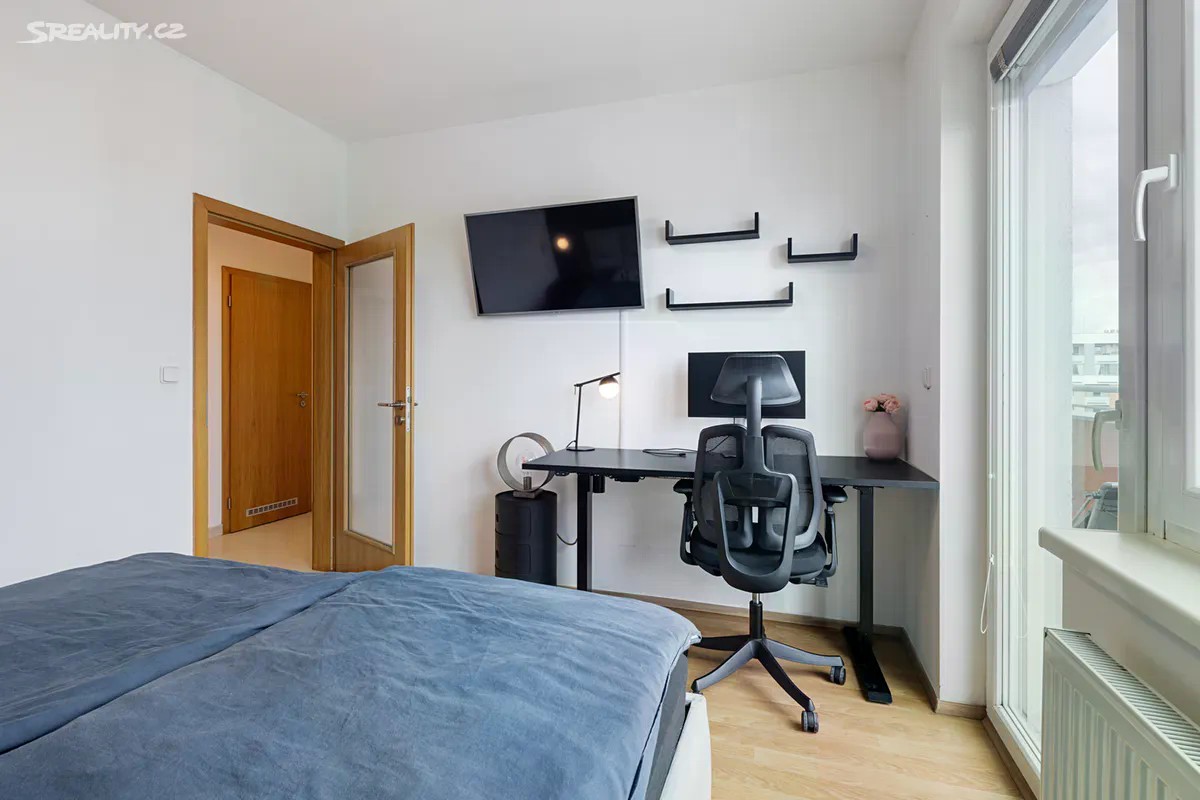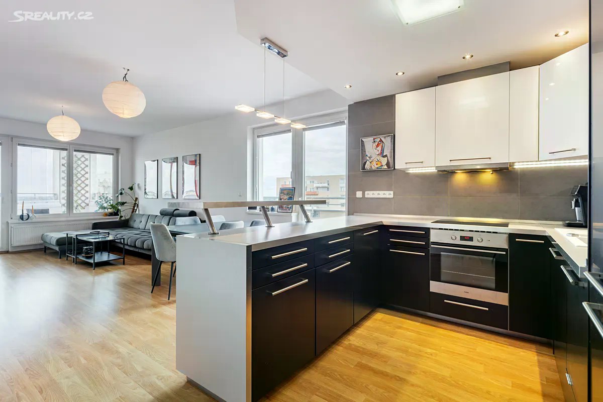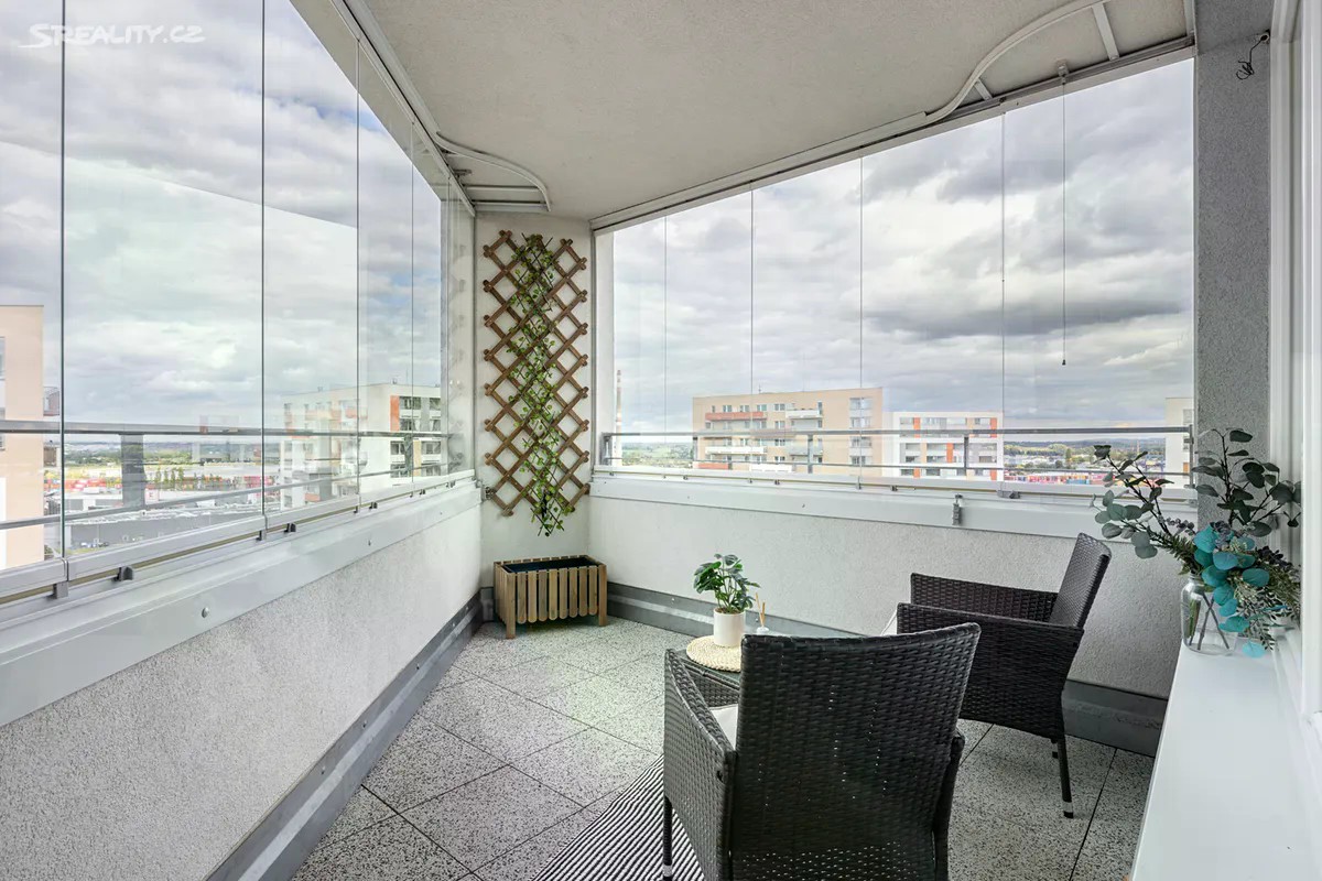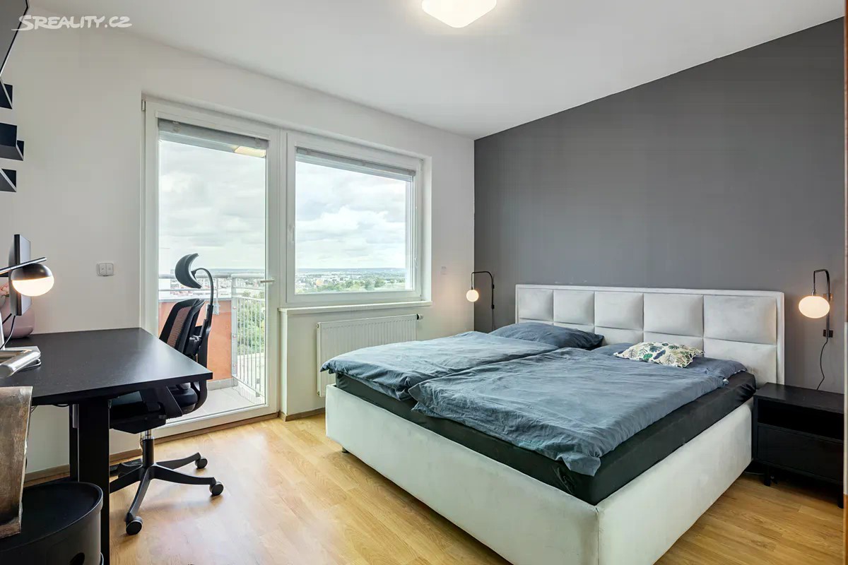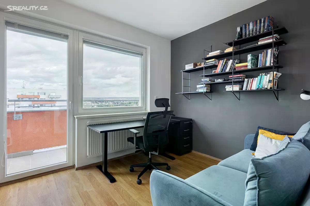 Nabízím k prodeji prostorný a světlý byt o dispozici 3+kk s užitnou plochou 81,6 m² a celkovou plochou 107,5 m², která zahrnuje dva balkóny a zasklenou lodžii. K bytu náleží garážové stání a sklep. Byt se nachází v posledním, 12. nadzemním podlaží moderního cihlového domu, což zajišťuje výjimečné soukromí a nádherné výhledy do okolí. Tato poloha zároveň poskytuje naprostý klid, který v nižších patrech obvykle nenajdete. Dispozice bytu je velmi praktická a promyšlená - obytná část je zcela oddělena od části odpočinkové. Dominantou bytu je prostorný obývací pokoj s moderní kuchyňskou linkou o rozloze 36 m², který nabízí dostatek místa pro rodinný život i společné chvíle s přáteli. Z obývacího pokoje je přístup na jeden z balkónů a také na zasklenou lodžii, která je chráněna před větrem a chladem. Díky tomu se dá pohodlně využívat po celý rok - ať už k odpočinku, čtení, nebo práci. Při vstupu do bytu se nachází předsíň navazující na centrální chodbu s prostornou komorou a vestavěnými skříněmi na míru, které zajišťují dostatek úložného prostoru. Ložnice je umístěna co nejdále od obývací části, aby poskytovala maximální klid. Má vlastní vstup na balkón a je vybavena elektricky ovládanými zatemňovacími roletami, které umožňují dokonalé zatemnění kdykoli během dne. Na ložnici navazuje další pokoj, který v současnosti slouží jako pracovna. I tento pokoj je vybaven zatemňovacími roletami a má přístup na druhý balkón, který je propojený s obývacím pokojem. Koupelna je vybavena prostornou rohovou vanou a je propojena s toaletou, která díky své velikosti nabízí i možnost doplňkového úložného prostoru. Bytový dům je moderní, s dobře fungujícím společenstvím vlastníků. Měsíční náklady na provoz bytu včetně elektřiny a internetu činí přibližně 8 000 Kč. Lokalita nabízí vše, co člověk k pohodlnému životu potřebuje - zastávka MHD je přímo před domem, v okolí se nachází široká nabídka služeb, obchodů, dětských hřišť i sportovišť. Milovníci přírody ocení zeleň a parky hned za domem. Tento byt představuje ideální kombinaci prostoru, soukromí, výborné dispozice a skvělé polohy. Rád se s Vámi potkám na prohlídce : )