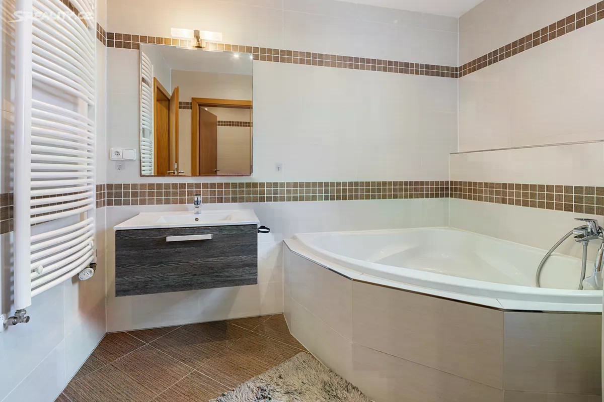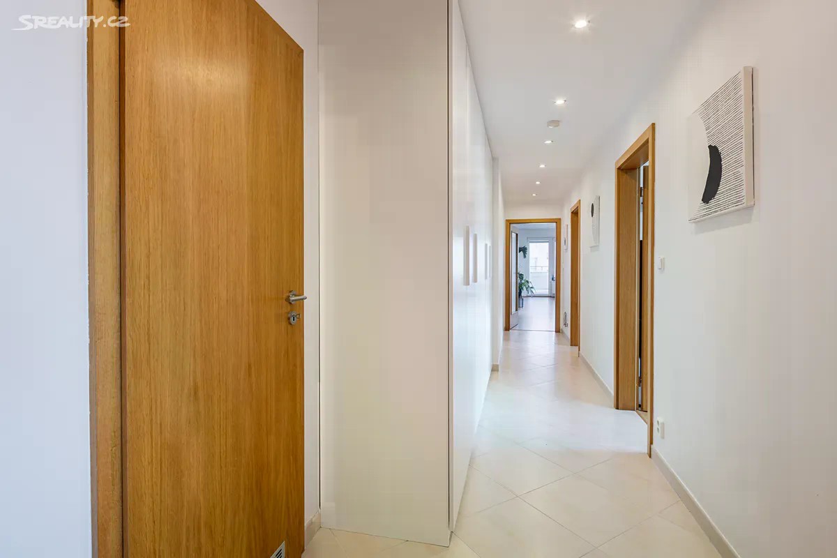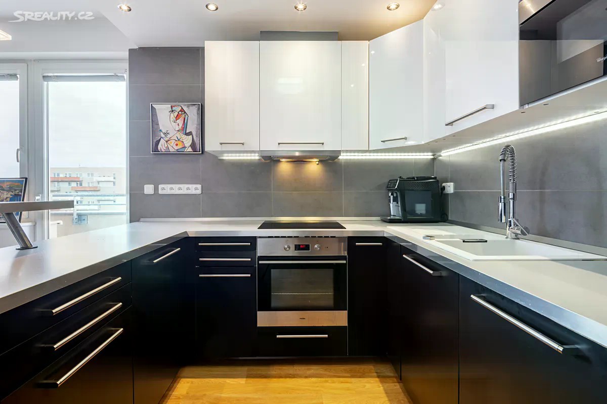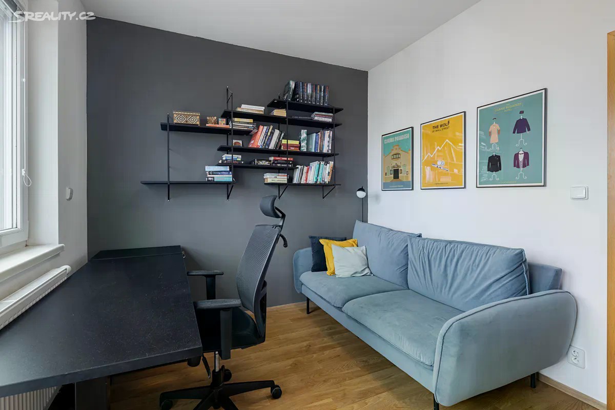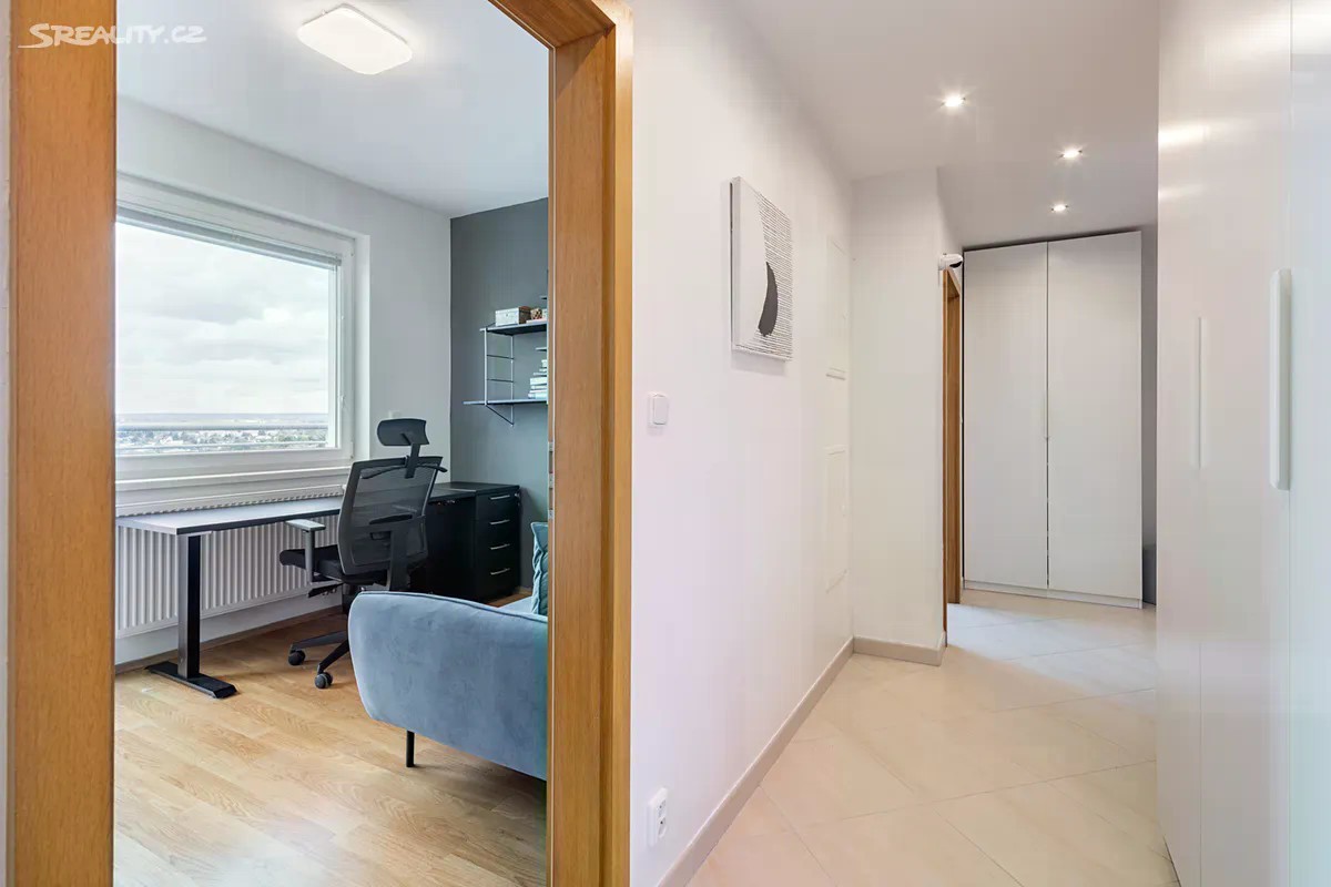Nabízím k prodeji prostorný a světlý byt o dispozici 3+kk s užitnou plochou 81,6 m² a celkovou plochou 107,5 m², která zahrnuje dva balkóny a zasklenou lodžii. K bytu náleží garážové stání a sklep. Byt se nachází v posledním, 12. nadzemním podlaží moderního cihlového domu, což zajišťuje výjimečné soukromí a nádherné výhledy do okolí. Tato poloha zároveň poskytuje naprostý klid, který v nižších patrech obvykle nenajdete. Dispozice bytu je velmi praktická a promyšlená - obytná část je zcela oddělena od části odpočinkové. Dominantou bytu je prostorný obývací pokoj s moderní kuchyňskou linkou o rozloze 36 m², který nabízí dostatek místa pro rodinný život i společné chvíle s přáteli. Z obývacího pokoje je přístup na jeden z balkónů a také na zasklenou lodžii, která je chráněna před větrem a chladem. Díky tomu se dá pohodlně využívat po celý rok - ať už k odpočinku, čtení, nebo práci. Při vstupu do bytu se nachází předsíň navazující na centrální chodbu s prostornou komorou a vestavěnými skříněmi na míru, které zajišťují dostatek úložného prostoru. Ložnice je umístěna co nejdále od obývací části, aby poskytovala maximální klid. Má vlastní vstup na balkón a je vybavena elektricky ovládanými zatemňovacími roletami, které umožňují dokonalé zatemnění kdykoli během dne. Na ložnici navazuje další pokoj, který v současnosti slouží jako pracovna. I tento pokoj je vybaven zatemňovacími roletami a má přístup na druhý balkón, který je propojený s obývacím pokojem. Koupelna je vybavena prostornou rohovou vanou a je propojena s toaletou, která díky své velikosti nabízí i možnost doplňkového úložného prostoru. Bytový dům je moderní, s dobře fungujícím společenstvím vlastníků. Měsíční náklady na provoz bytu včetně elektřiny a internetu činí přibližně 8 000 Kč. Lokalita nabízí vše, co člověk k pohodlnému životu potřebuje - zastávka MHD je přímo před domem, v okolí se nachází široká nabídka služeb, obchodů, dětských hřišť i sportovišť. Milovníci přírody ocení zeleň a parky hned za domem. Tento byt představuje ideální kombinaci prostoru, soukromí, výborné dispozice a skvělé polohy. Rád se s Vámi potkám na prohlídce : )