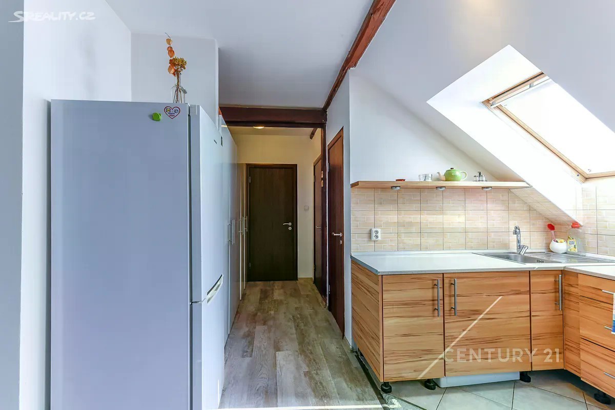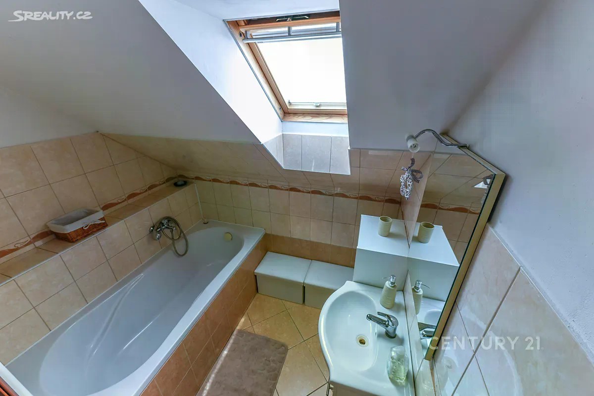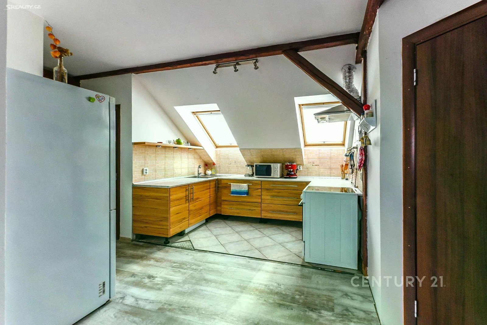 Pronájem podkrovního bytu s dispozicí 3+kk o podlahové ploše 70 m2 v druhém nadzemním podlaží rodinného domu v Braškově. Byt sestává z obývacího pokoje 34 m2, 2 x ložnice 9 m2, kuchyňského koutu 5 m2, koupelny 3,5 m2, předsíně 2,5 m2, chodby 4 m2, WC 1,5 m2, komory 1,5 m2. Orientace bytu je severjih. Parkovat auto lze ve dvoře domu, možno využívat i část zahrady. Byt je vybavený kuchyňskou linkou se dřezem, elektrickým sporákem, digestoří, pračkou, mikrovlnou troubou a rychlovarnou konvicí. Topení i teplá voda v bytě jsou zajištěny plynovým kotlem se zásobníkem, možnost připojení internetu. Nájemné činí 15.000, Kč/měs. Poplatky 4.700,Kč/měs (zahrnují teplou a studenou vodu, stočné, odpad, platbu za plyn a elektrickou energii). Vratná kauce je dva nájmy. Provize RK je jeden nájem bez DPH. Byt je volný, ihned k nastěhování. Preferuje se dlouhodobý pronájem, pouze nekuřáci, zaměstnaná rodina. Veškerá občanská vybavenost je ve 4km vzdáleném Kladně nebo ve 3km vzdálené Unhošti, zastávka BUS č. 630 u domu. V případě zájmu o prohlídku nebo jakýchkoliv dotazů volejte makléře.