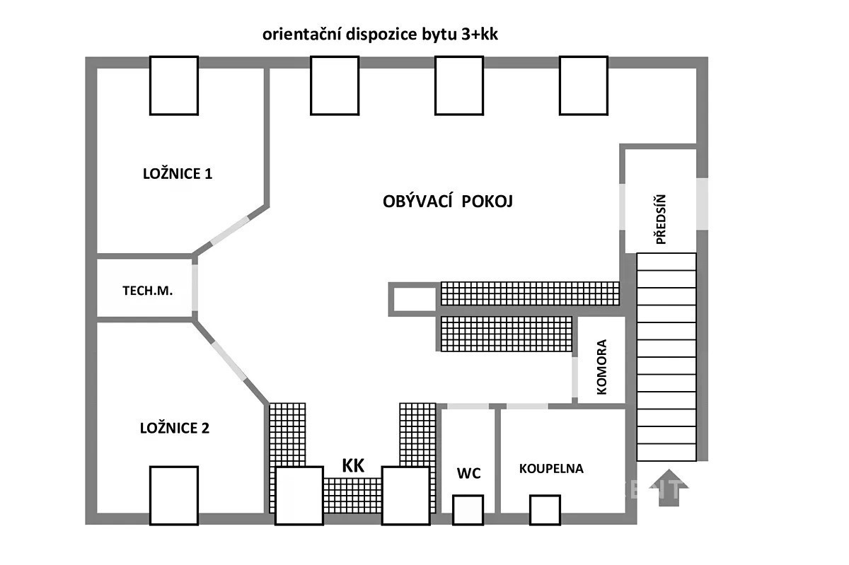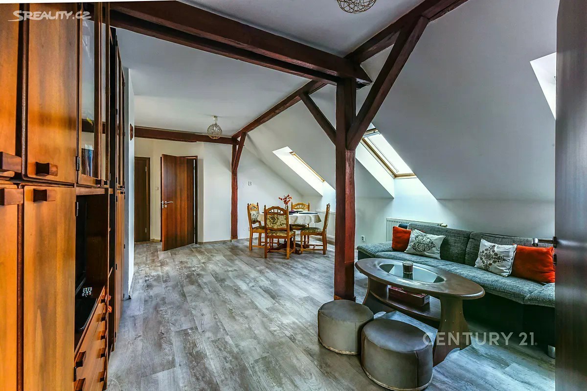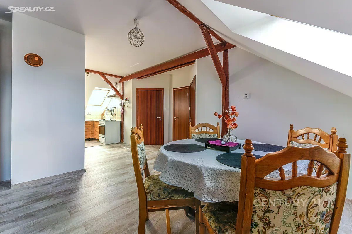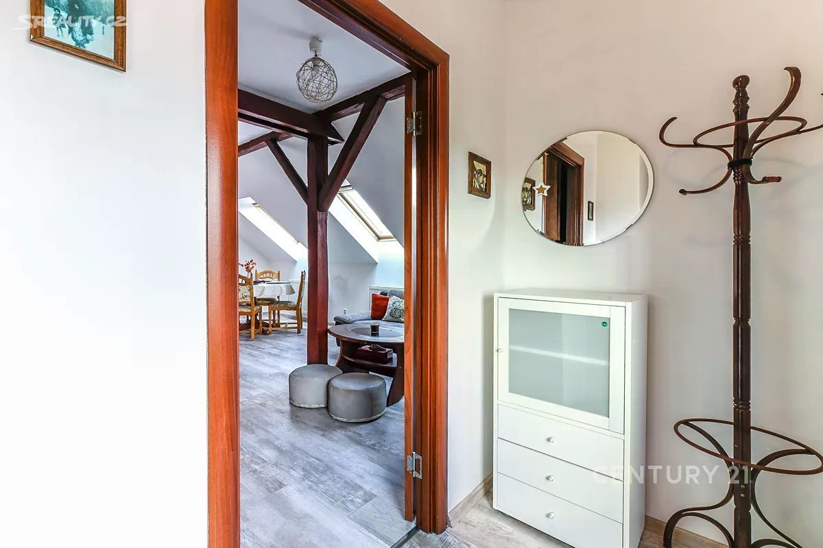 Pronájem podkrovního bytu s dispozicí 3+kk o podlahové ploše 70 m2 v druhém nadzemním podlaží rodinného domu v Braškově. Byt sestává z obývacího pokoje 34 m2, 2 x ložnice 9 m2, kuchyňského koutu 5 m2, koupelny 3,5 m2, předsíně 2,5 m2, chodby 4 m2, WC 1,5 m2, komory 1,5 m2. Orientace bytu je severjih. Parkovat auto lze ve dvoře domu, možno využívat i část zahrady. Byt je vybavený kuchyňskou linkou se dřezem, elektrickým sporákem, digestoří, pračkou, mikrovlnou troubou a rychlovarnou konvicí. Topení i teplá voda v bytě jsou zajištěny plynovým kotlem se zásobníkem, možnost připojení internetu. Nájemné činí 15.000, Kč/měs. Poplatky 4.700,Kč/měs (zahrnují teplou a studenou vodu, stočné, odpad, platbu za plyn a elektrickou energii). Vratná kauce je dva nájmy. Provize RK je jeden nájem bez DPH. Byt je volný, ihned k nastěhování. Preferuje se dlouhodobý pronájem, pouze nekuřáci, zaměstnaná rodina. Veškerá občanská vybavenost je ve 4km vzdáleném Kladně nebo ve 3km vzdálené Unhošti, zastávka BUS č. 630 u domu. V případě zájmu o prohlídku nebo jakýchkoliv dotazů volejte makléře.