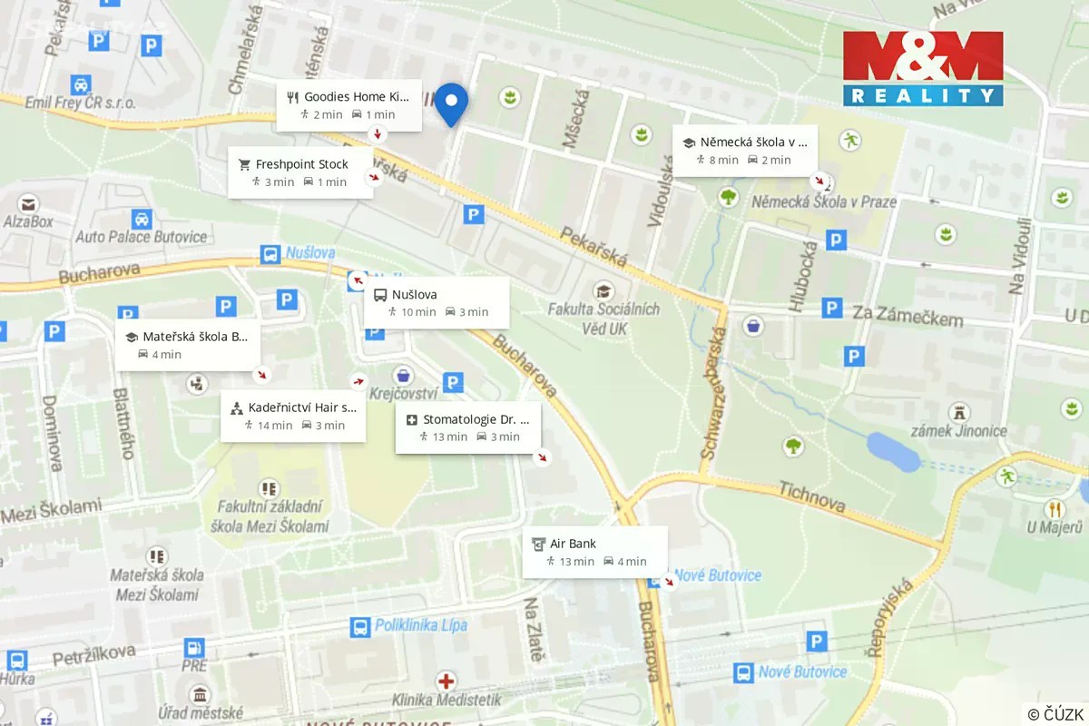 Světlý, prostorný byt 2+kk o rozloze 59 m² z roku 2017 rezidenční čtvrti Botanika v Jinonicích, ve výborném stavu. Skládá se ze vstupní haly s vestavnou skříní, ložnice a obývacího pokoje s kuchyňským koutem. Dále koupelny s vanou a samostatné toalety. Majitel má ve výhradním užívání terasu o rozloze 5,5 m² a předzahrádku o rozloze 60 m², která je součástí nemovitosti. Jedná se o nízkoenergetický dům (třída B) se sběrem dešťové vody k zalévání zahrady, s recyklovanou vodou k použití na toaletě, solárními panely na střeše, bezbariérovým přístupem. Nízké měsíční náklady: 4400 Kč + elektřina. Podlahy jsou dřevěné, příprava pro elektrické žaluzie, dveře Sapeli v interiéru, okna a terasové dveře Vekra, bezpečnostní vstupní dveře, plně vybavená moderní kuchyň. Německá škola 500 metrů, zastávka autobusu 2 minuty chůze, stanice metra Nové Butovice nebo Hůrka 10 minut chůze, park Vidoule/Cubulka.