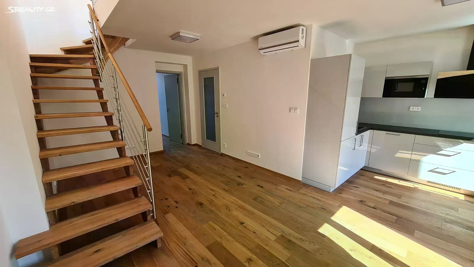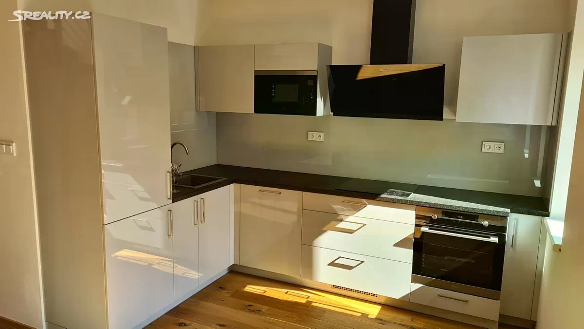 Velmi tichý, mezonetový byt 3+kk 78 m2 s terasou 20 m2 v 6 a 7.patře s výtahem v bytovém domě v ulici Husitská, Praha 3 - Žižkov, kolaudovaný v roce 2020. Orientace bytu do ulice na severozápadní stranu a do vnitrobloku na jihovýchodní stranu. Byt sestává ve spodním patře ze vstupní chodby, obývacího pokoje spojeného s vybavenou kuchyňskou linkou (digestoř, varná deska, trouba, myčka, MW, lednice, mrazák), samostatné ložnice a koupelny s toaletou. V horním patře je další ložnice, prostor pro šatnu, druhá koupelna s toaletou a nádherná velká slunná terasa do vnitrobloku. V bytě vše v moderním designu, nadstandardní materiály, velká okna, moderní schodiště, nerezové a skleněné prvky, dřevěné podlahy, podlahové topení v celém bytě, klimatizace, italské obklady a dlažby, sanita Grohe a WB, UPC internet s optickým kabelem. Dům po celkové rekonstrukci fasád, společných prostor, výtah. Skvělá lokalita centra města s celou řadou kaváren, restaurací a obchodů nedaleko Divadla Járy Cimrmana nebo kasáren Karlín. Rozlehlý, čerstvě rekonstruovaný, Vítkovský park je na dosah. Byt je volný ihned.