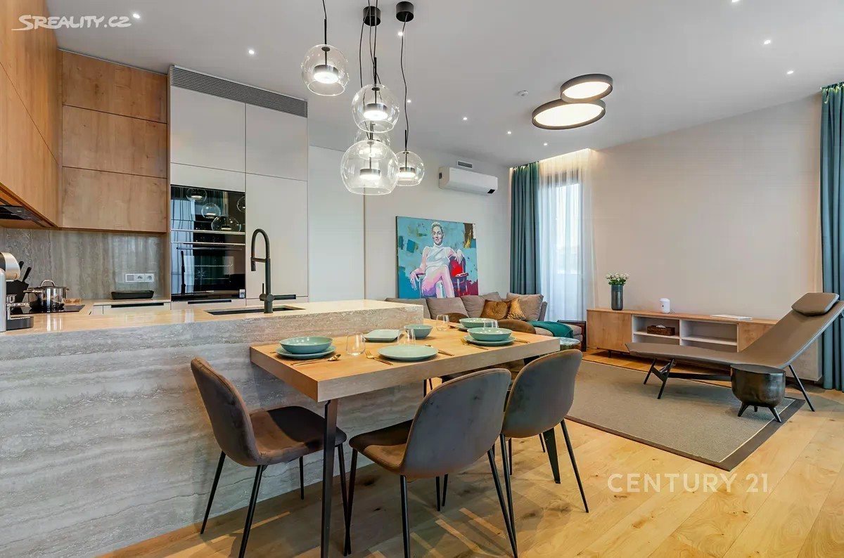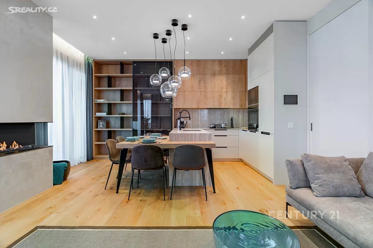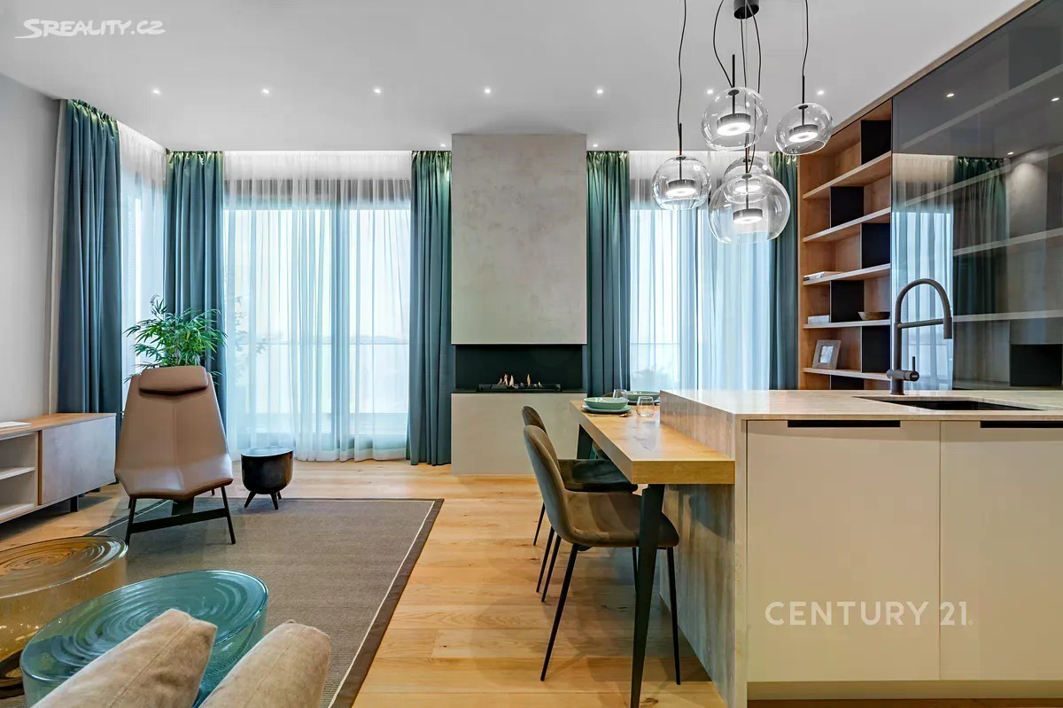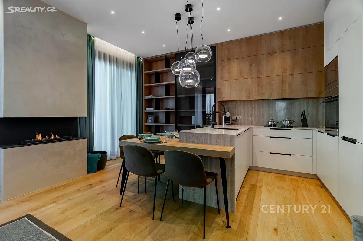 Exkluzivní byt 3+kk s výhledem na celou Prahu, terasa 52 m², Praha 5 Košíře Nabízíme k prodeji krásný a designově vybavený byt o dispozici 3+kk, který okouzlí každého, kdo touží po kvalitním a pohodlném bydlení s výjimečným výhledem na celou Prahu. Tento prostorný byt se nachází v klidné a žádané lokalitě na pomezí Prahy 5 - Košíře, nedaleko parku Vidoule. Součástí bytu je také pevné vybavení a velkorysý obývací pokoj s krbem a moderní kuchyní, která potěší nejen milovníky jídla, ale i každého, kdo rád tráví čas v příjemném prostředí. Celý byt obklopuje terasa o velikosti 52 m², která je ideálním místem pro odpočinek nebo venkovní posezení. V bytě se nachází také místnost, kterou lze využít jako pracovnu či jogovou místnost, ze které vstupujete do prostorné ložnice s vlastní šatnou. K dispozici je také koupelna s vanou i sprchovým koutem, samostatná toaleta a dostatek úložného prostoru. Byt nabízí nejen komfortní bydlení, ale také 2 parkovací stání a sklep. Tato nemovitost je ideální pro ty, kteří hledají klid a zároveň skvělou dostupnost do centra města. Neváhejte a domluvte si prohlídku tohoto jedinečného bytu, který vás nadchne svou atmosférou a výhledem!