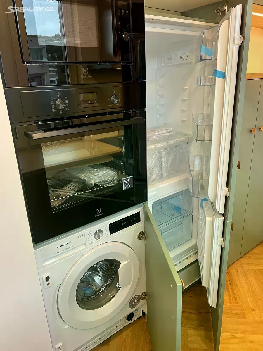 Nabízíme Vám k dlouhodobému pronájmu luxusní nový, ještě nebydlený byt 2+kk s lodžií, v 2. patře cihlového domu, obklopeného krásnou zahradou v klidné lokalitě Radotína s bezproblémovým parkováním i výbornou dopravní dostupností do centra. Byt prošel kompletní rekonstrukcí, má k dispozici novou kuchyňskou linku s indukční varnou deskou, elektrickou troubou, lednicí s mrazákem, mikrovlnkou a myčkou, v koupelně sprchový kout, samostatné WC. Světlý obývací pokoj s lodžií a okny na sever a lodžií na jih. Na všech oknech žaluzie. Ústřední vytápění, ohřev vody boilerem. Dostatek nových vestavných skříní jak v ložnici, tak v předsíni. K bytu náleží sklep. Výborná dopravní dostupnost. Zastávka busu i vlaku 5 min od domu dojezd na metro Smíchovské nádraží do 10 min. Veškerá občanská vybavenost v přímém okolí. Billa a Penny 3 min od domu. Volné ihned. Určeno k dlouhodobému pronájmu ideálně pro pár nekuřáků bez domácích mazlíčků. Doporučujeme prohlídku.