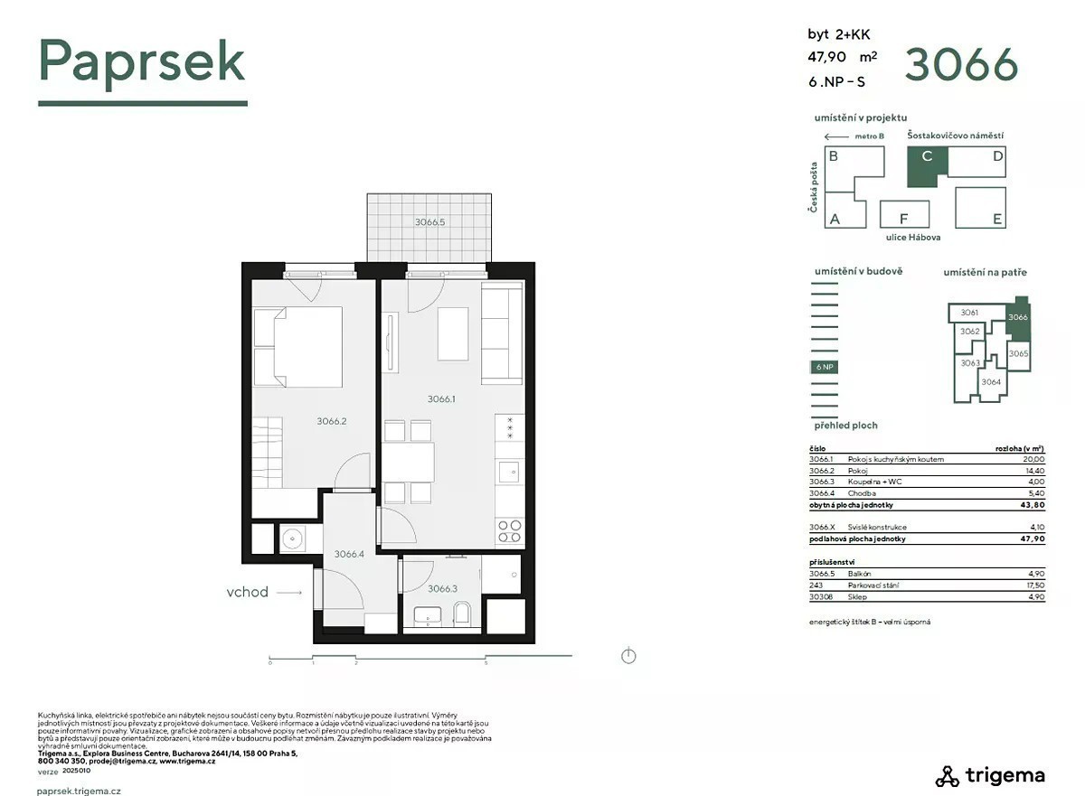 Nabízíme Vám jedinečnou nabídku pronájmu moderního bytu 2+kk nacházející se v rezidenčním komplexu PAPRSEK - přímo u stanice metra B - Stodůlky. Tento byt je umístěn v 6. NP a s užitnou plochou bytu 47,9 m2 + balkon 4,9 m2 - je ideální pro pár nebo jednotlivce, kteří ocení luxusní a moderní design. Je vybaven podlahovým vytápěním, centrální rekuperací a inteligentním systémem LOXONE, který umožňuje ovládání osvětlení, vytápění, žaluzií či ventilace pomocí tabletu v bytě nebo přes aplikaci v telefonu. Součástí vybavení jsou elektricky ovládané venkovní žaluzie. K ceně pronájmu je parkovací místo a prostorný sklep 4,9 m2. Byt je kompletně zařízený a navržen architektem - kuchyňská linka s vestavěnými spotřebiči, vestavěné skříně, kompletní nábytek, televize, pračka se sušičkou. Autentické fotografie. Přímo v objektu najdete obchodní prostory, supermarket Albert, lékárnu, drogérii, kavárnu a další služby. V těsné blízkosti jsou také restaurace, fitness, lékaři, školy, školky i možnosti pro volnočasové aktivity v přírodě - včetně cyklostezek a běžeckých tras. Hlavní benefit tvoří bezprostřední blízkost ke stanici metra Stodůlky. Byt je připraven k nastěhování od 1.11.2025. Nájem je stanoven na 29.500.-Kč + GS (2500,-Kč) + sklep (1000,-Kč) + poplatky 3.500,-Kč + elektřina. Majitel požaduje 2 vratné kauce a nový nájemce neplatí provizi RK. Buďte první obyvatelé tohoto krásného bytu. Pokud Vás tento byt zaujal, neváhejte nám napsat nebo zavolat a rádi Vám vše ukážeme osobně. Prohlídky jsou možné po předchozí domluvě. Nabízíme v tomto skvělém developerském projektu více bytů, takže si můžete vybrat byt, který Vám bude vyhovovat.