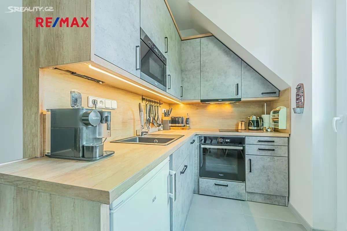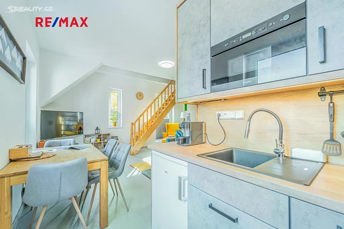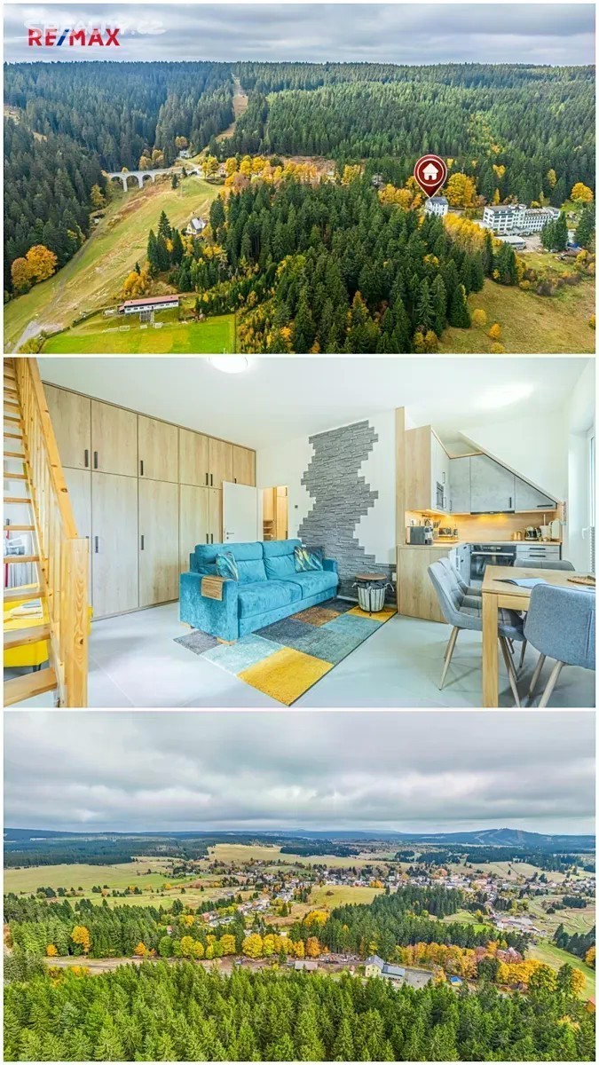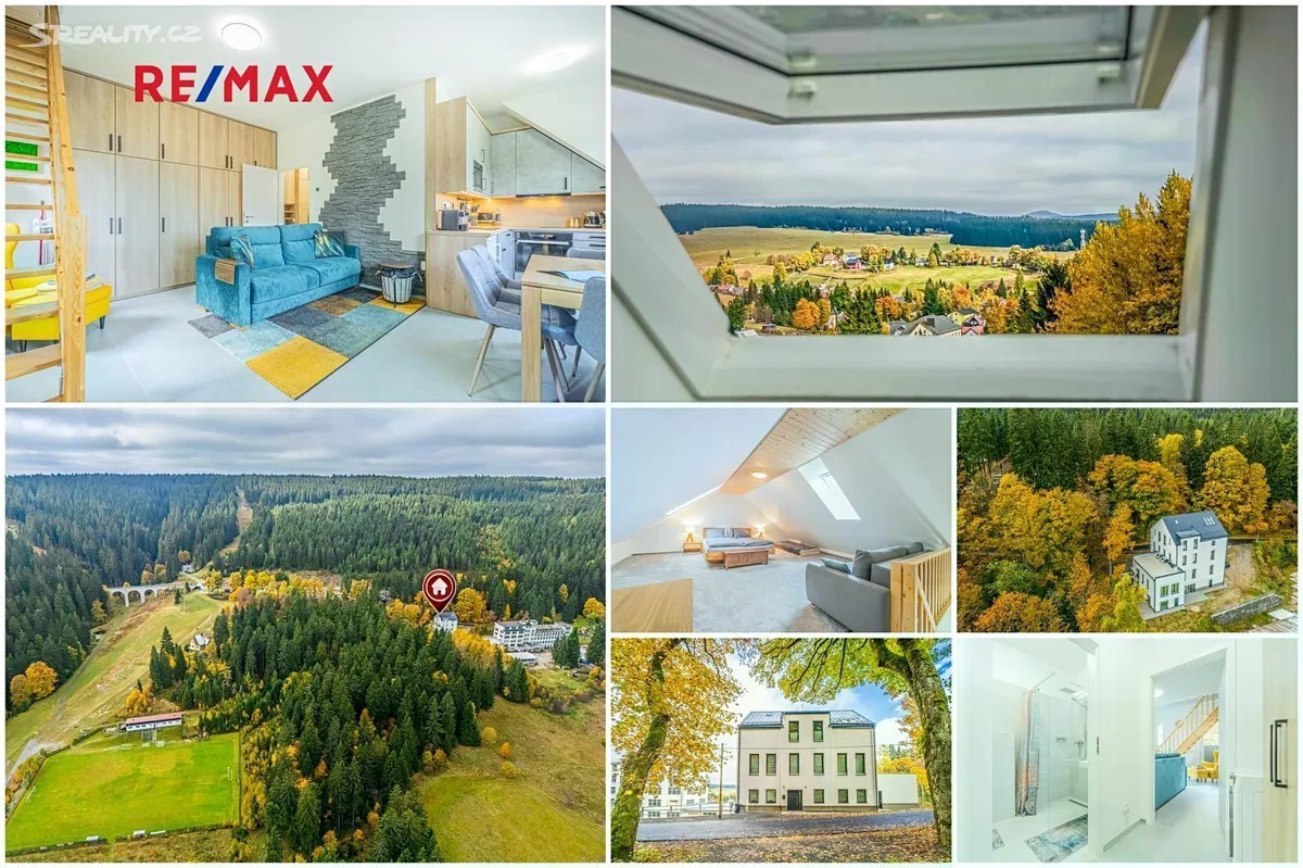 Tento byt (apartmán) doporučuji jako ideální investici! Ve výhradním zastoupení majitele nabízím krásný mezonetový byt o dispozici 2+KK, 67 m2 ve druhém (třetím nadzemním) podlaží v Nádražní ulici v Perninku. Celý dům prošel celkovou rekonstrukcí v roce 2022. Vše je nové a moderní. Dům je zateplený, plastová okna se žaluziemi, nové rozvody, plechová střecha, tepelné čerpadlo, vlastní bojler pro ohřev teplé vody, sušárna na boty (přeskáče) a lyžárna jsou v 1. podzemním podlaží. Byt má vstupní dveře se zabezpečením. Přízemí má 31,4 m2. Všechny vnitřní dvěře jsou nové s obloženými zárubněmi. V chodbě (3,0 m2) je vestavěná skříň (v jedné z nich je bojler pro ohřev teplé vody), pračka. V koupelně (3,2 m2) je sprchový kout, umyvadlo, toaleta, skříňky, moderní obklady. Obývací pokoj (21,2 m2) je spojený s kuchyní (4 m2). Tento prostor je světlý, proslunněný, s krásným výhledem. V obývacím pokoji je kromě sedačky, stolu, židlí opět vestavěná skříň. Rohová kuchyňka je dělaná na míru a prosvětlená oknem. Je v ní trouba, mikrovlnka, myčka, lednice, digestoř, kávovar. Do zvýšeného patra se jde po dřevěných schodech. Zde se vám poté otevře velký prostor (35 m2), který se dá rozdělit na dvě menší místnosti. Jsou tady dvě střešní okna se žaluziemi, manželská postel, gauč (válenda) a sófa. Celý byt je pokrytý moderní dlažbou, jen v horním patře je položený koberec, který celou místnost zatepluje a zútulňuje. Dle domluvy s panem majitelem může drtivá většina nábytku v bytě zůstat. V těsné blízkosti je vlakové nádraží, odkud je možné dělat výlety do Karlových Varů, Nejdeku, Ostrova.atd. Asi 200 m od domu je sjezdovka. Dá se ale tady nejen lyžovat, ale je zde plno běžkařský tratí, krásné trasy pro horské túry nebo cyklostezky. Prostě ideální místo pro apartmánové bydlení nebo krátkodbobé či dlouhodobé pronajímání. Měsíční náklady na bydlení jsou ca 4 500,00 Kč. Ke každému apartmánu náleží jedno parkovací míst. Veškerá občanská vybavenost je v Perninku, z bytu jste v centru asi za pět minut. Pekárna, obchody, MHD, pošta, lékárna atd. Pokud byste toužili tento apartmán vidět na vlastní oči nebo chtěli znát další bližší informace, neváhejte mě kontaktovat.