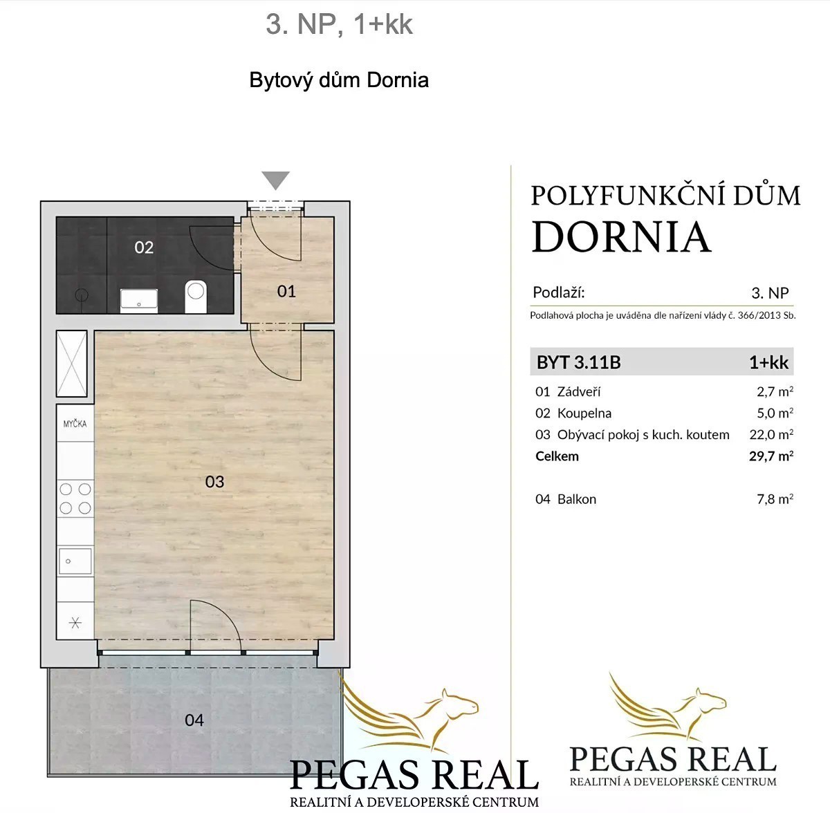 Hledáte pronájem moderního, kompletně zařízeného bytu v klidné lokalitě, ale s dobrou dostupností všech výhod, které město nabízí? Právě pro Vás máme na pronájem hezký byt s dispozici 1+kk s balkonem nacházející se ve třetím podlaží novostavby bytového domu DORNIA. Bytový dům je vybaven výtahem. Je zasazen do vnitrobloku a odkloněn od ruchu města. Celková výměra bytu činí 29,7 m2 + balkon 7,8 m2. Z obytného prostoru je vstup na krytý balkon, směřující na jihozápad. Je orientovaný do klidného a zeleného vnitrobloku okolních budov. Na pronájem se byt nabízí jako kompletně zařízený a vybavený nábytkem z fotek. K dispozici je na míru dělaná kuchyňská linka s lednicí s mrazákem, myčkou, troubou, dřezem, digestoří a varnou deskou. Dále je zde jídelní stůl, dvě židle, sedačka, vestavěné skříně a úložné systémy v předsíni a v obytném prostoru, pračka se sušičkou a předsíňový nábytek. Velice prakticky je řešena výklopná postel (160 cm), kterou je možné jednoduše rozložit a složit tak, aby nezabírala místo. Okna bytu jsou vybavena elektricky ovladatelnými venkovními žaluziemi. Nájem činí 15.900 Kč + 2.195 Kč zálohy za služby a energie (voda, teplá voda, teplo) + vlastní spotřeba elektrické energie a internet. Vratná kauce je v hodnotě 35.000 Kč. Provize RK je jedna měsíční platba + DPH. V případě zájmu je možný pronájem garážového stání za cenu 2.500 Kč měsíčně přímo v budově. Byt v sobě propojuje klidné bydlení s dobrou dostupností centra města. V okolí je k dispozici tramvajová zastávka, dostupná je Galerie Vaňkovka nebo nově vybudovaný areál Vlněny, restaurace, potraviny, fitness centra a mnoho dalšího. Byt je k dispozici ihned. Těším se na Vás na prohlídkách.