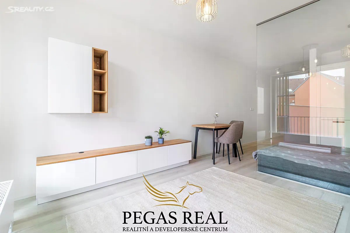 Jsem potěšen, že Vám mohu nabídnout pronájem bytu, který je umístěn v novostavbě bytového domu DORNIA, ve dvorním traktu ul. Dornych. Dům disponuje 6ti nadzemními a jedním podzemním podlažím. Strategická poloha zajišťuje ideální dostupnost do centra města, které se nachází v dochozí vzdálenosti několik set metrů. Nedaleko je oblíbené obchodní centrum Vaňkovka. Nabízený byt je umístěn ve 4NP domu. Výměra jednotky činí necelých 35m2 + balkón. Byt je velmi prakticky a funkčně řešen. Ze zádveří vstoupíte do koupelny se sprchovým koutem, toaletou, pračkou a do obytné části, která je velmi prakticky rozdělena na prostor s kuchyňskou linkou, část pro spaní s vestavnou skříní a prostor obytný, který je od spací části oddělen skleněnou příčkou. Jednotka disponuje na zakázku vyrobenou kuchyňskou linkou, která je vybavena veškerými potřebnými spotřebiči. Z balkónu se Vám rozprostře krásný výhled do okolí. K bytu je možno pronajmout parkovací stání, které se nachází v 1PP / cena 2.500Kč/měsíc / Veškeré vybavení, které je ve fotogalerii je součástí bytu. V domě je k dispozici výtah. Cena pronájmu činí 15.900Kč + 2.500Kč pronájem garážového stání + 3.000Kč zálohy na služby a energie / včetně elektřiny /. K dispozici je pevný internet, náklady na provoz nejsou součástí nájmu. Kauce 19.000Kč Provize 32.000Kč + DPH. Byt bude k dispozici od 1.11.2025, případně dle dohody. Majitel preferuje jednotlivce či pracují pár nekuřáků, bez domácích mazlíčků, ideálně s vizí dlouhodobého pronájmu. Jsem přesvědčen, že Vás tato atraktivní nabídka osloví. Velmi rád Vám nabízenou nemovitost představím osobně.