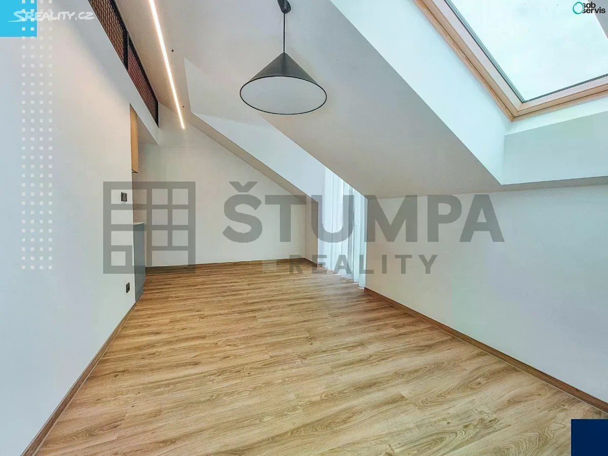 Pronájem podkrovního bytu 1+1 s chytrou domácností v Brně - Černovicích Nabízíme k pronájmu stylový byt 1+1 o ploše 49,2 m² v novostavbě na ulici Slámova. Byt se nachází ve 4. nadzemním podlaží moderního domu bez výtahu a díky své podkrovní poloze nabízí jedinečnou atmosféru, kterou jen tak někde nenajdete. Vysoký standard a chytré řešení Chytrá domácnost Loxone - ovládání osvětlení, teploty a dalších prvků Vytápění a ohřev vody pomocí tepelného čerpadla Prémiové materiály, kuchyňská linka na míru s vestavěnými spotřebiči Miele + lednice Whirlpool Moderní koupelna se sprchovým koutem Klimatizace pro komfortní bydlení i v letních měsících Designový interiér Pokoj se nachází ve vyvýšeném patře nad kuchyní a koupelnou, přístupný po stylovém žebříku z předsíně Loftový prvek dodává bytu vzdušnost, hravost a přirozené oddělení klidové zóny od denní části Interiér je laděn v jednotném, nadčasovém stylu Společné prostory pro relax Upravená zahrada se zelenou střechou - ideální pro grilování a odpočinek Sdílená terasa o velikosti 18 m² Sklepní kóje o velikosti 5,2 m² pro sezónní věci či sportovní vybavení Možnost parkování ve vnitřních garážích za měsíční poplatek Lokalita Brno-Černovice Oblíbená městská část s výbornou dostupností do centra V okolí kavárny, bistra, supermarkety, sportoviště, cyklostezky i zelené plochy Zastávky MHD v docházkové vzdálenosti - centrum Brna za pár minut Byt je ideální volbou pro jednotlivce nebo pár, kteří hledají stylové, funkční a originální bydlení s atmosférou, která má charakter. V případě zájmu o prohlídku mě neváhejte kontaktovat.