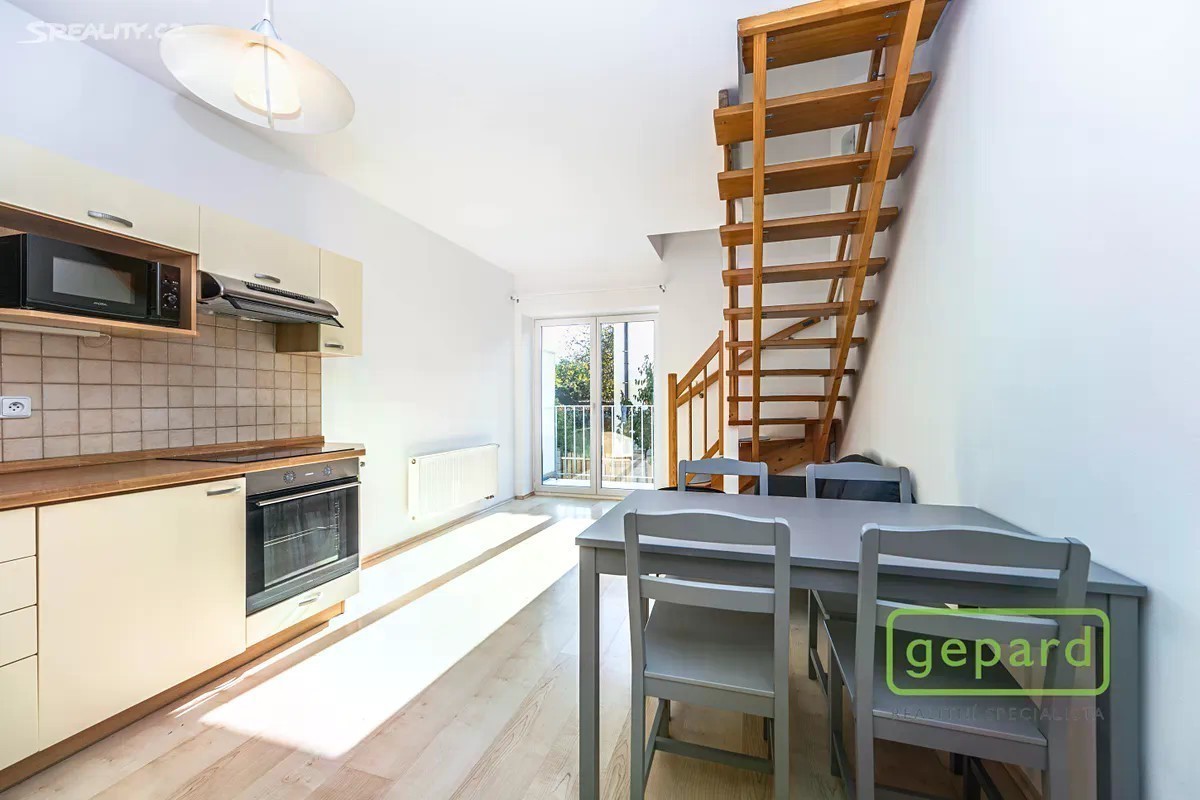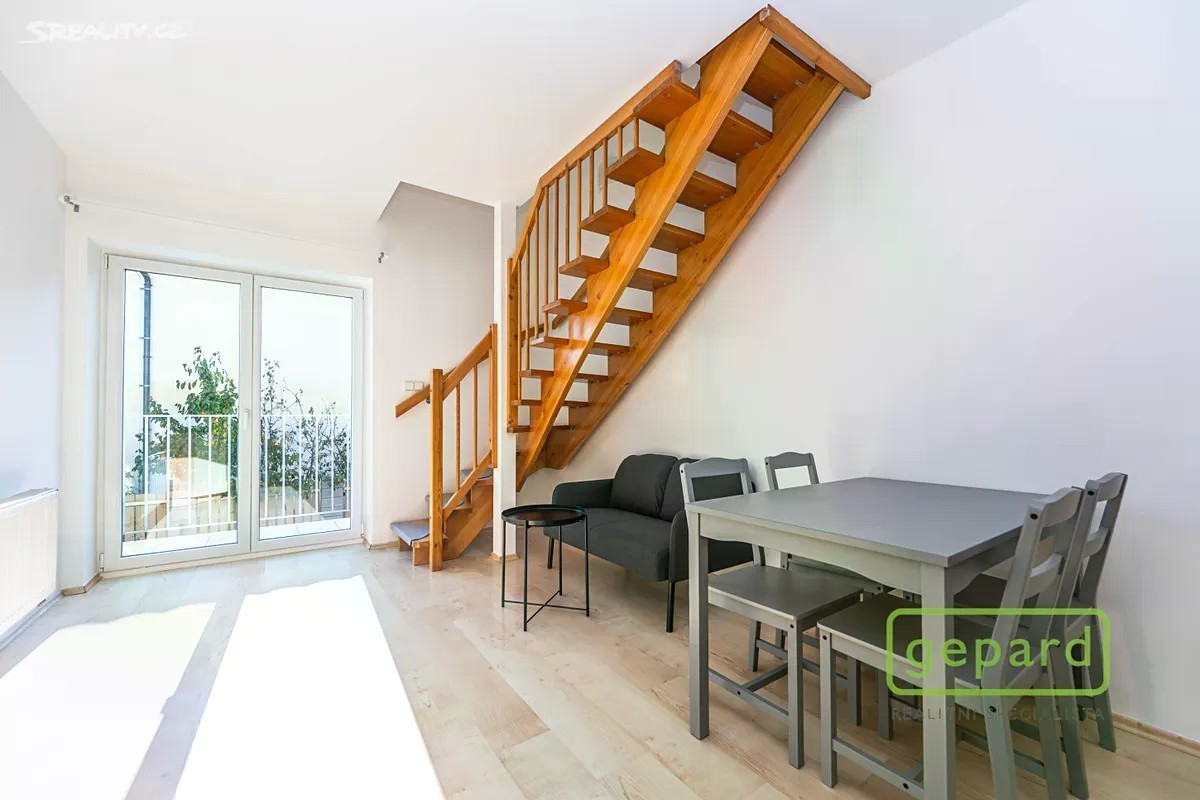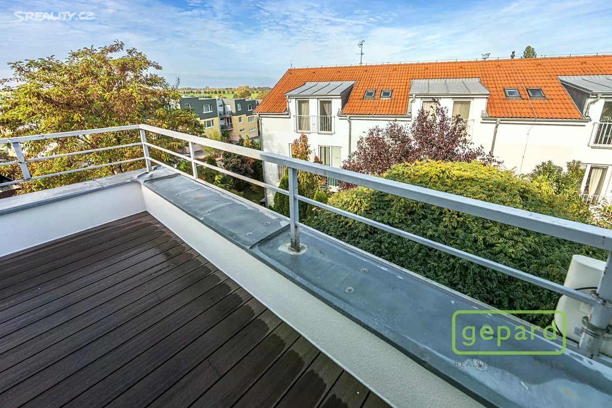 Společnost Gepard Reality Vám nabízí k pronájmu mezonetový byt o dispozici 3+kk v klidné části Brandýsa nad Labem v ulici Vrábská. Celková plocha bytu činí 59 m2 včetně terasy (5,5 m2) a balkonu (2,5 m2). Byt je situován v 1. patře a v podkroví cihlového domu z roku 2006. Ve spodním patře bytu je obývací pokoj s kuchyňským koutem a vstupem na balkon (orientovaný na jihovýchod), předsíň a koupelna s toaletou. V horním patře jsou dva pokoje a koupelna s vanou. Z většího pokoje vede vstup na terasu, která je směrována na severozápad. V obytných místnostech je plovoucí podlaha, v předsíni a v koupelně je dlažba. Schody jsou dřevěné s protiskluzovými nášlapy. Na oknech jsou dvojité garnýže. Byt je z větší části vybaven nábytkem a spotřebiči, jak je znázorněno na fotografiích. Součástí pronájmu je vybavení uvedené zde v textu. Kuchyňská linka obsahuje vestavnou lednici, sklokeramickou varnou desku, elektrickou pečící troubu a digestoř a dále volně stojící mikrovlnnou troubu. V obývacím pokoji je k dispozici jídelní stůl se 4 židlemi a pohovka, v pokoji trojdílná šatní skříň a v ložnici rám postele 200x180 cm včetně roštů a komoda. V předsíni je botník se zrcadlem. V koupelnách je koupelnový nábytek a pračka. Nájemce může využívat společnou zahradu se zahradním sezením. Parkovat lze volně na ulici, případně je možné zprostředkovat pronájem parkovacího stání na oploceném parkovišti u domu. Jedná se o velmi příjemné bydlení v klidné lokalitě s výbornou dostupností do Prahy: autem metro B Černý Most 13 minut a metro C Letňany 18 minut. Zastávky autobusu i vlakové nádraží jsou do 10 minut pěšky od domu. Město Brandýs nad Labem - Stará Boleslav nabízí veškerou občanskou vybavenost. Okolí poskytuje mnoho příležitostí pro sportovní aktivity a výlety. S ohledem na dispozici bytu je toto bydlení ideální pro 2 osoby (pár). Byt je připraven k Vašemu nastěhování. Zúčtovatelné zálohy na služby (pro 2 osoby) včetně energií a vysokorychlostního internetu od O2 činí 5.000,- Kč. V záloze není zahrnut odvoz odpadu. Vratná kauce je stanovena ve výši 25.000,- Kč. Nájemce hradí provizi ve výši jednoho měsíčního nájemného včetně poplatku za služby. Majitelé si vyhrazují právo vybrat nájemce na základě jimi zvolených kritérií. Tuto nabídku vřele doporučujeme. Pro více informací či domluvení termínu prohlídky mne prosím kontaktujte.