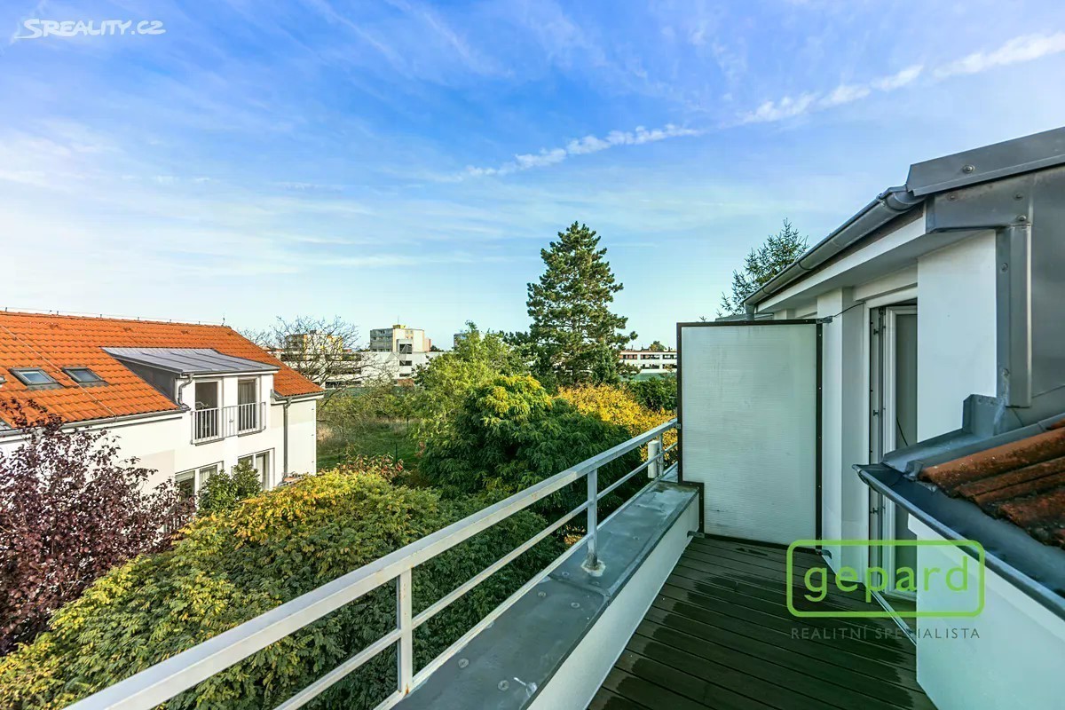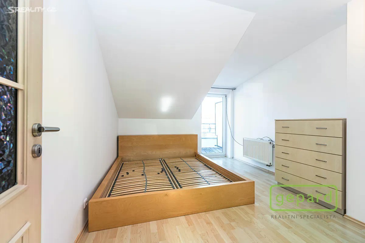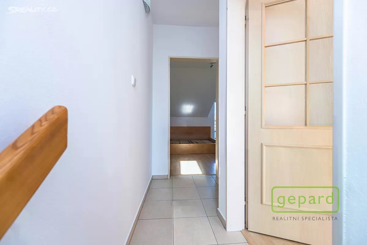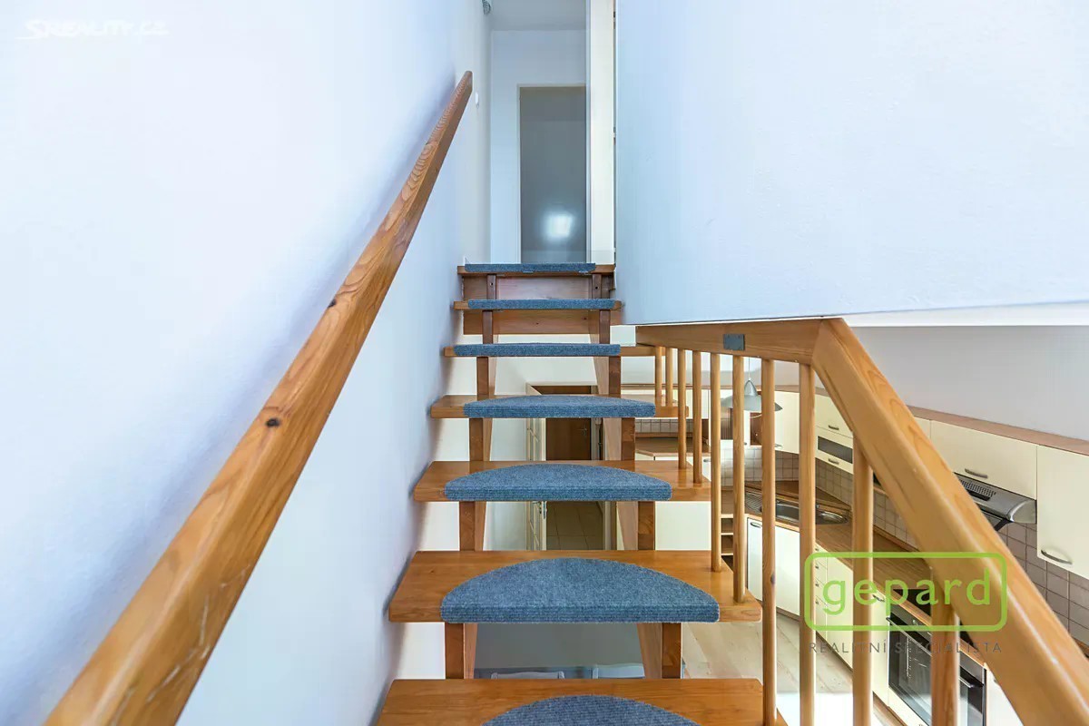 Společnost Gepard Reality Vám nabízí k pronájmu mezonetový byt o dispozici 3+kk v klidné části Brandýsa nad Labem v ulici Vrábská. Celková plocha bytu činí 59 m2 včetně terasy (5,5 m2) a balkonu (2,5 m2). Byt je situován v 1. patře a v podkroví cihlového domu z roku 2006. Ve spodním patře bytu je obývací pokoj s kuchyňským koutem a vstupem na balkon (orientovaný na jihovýchod), předsíň a koupelna s toaletou. V horním patře jsou dva pokoje a koupelna s vanou. Z většího pokoje vede vstup na terasu, která je směrována na severozápad. V obytných místnostech je plovoucí podlaha, v předsíni a v koupelně je dlažba. Schody jsou dřevěné s protiskluzovými nášlapy. Na oknech jsou dvojité garnýže. Byt je z větší části vybaven nábytkem a spotřebiči, jak je znázorněno na fotografiích. Součástí pronájmu je vybavení uvedené zde v textu. Kuchyňská linka obsahuje vestavnou lednici, sklokeramickou varnou desku, elektrickou pečící troubu a digestoř a dále volně stojící mikrovlnnou troubu. V obývacím pokoji je k dispozici jídelní stůl se 4 židlemi a pohovka, v pokoji trojdílná šatní skříň a v ložnici rám postele 200x180 cm včetně roštů a komoda. V předsíni je botník se zrcadlem. V koupelnách je koupelnový nábytek a pračka. Nájemce může využívat společnou zahradu se zahradním sezením. Parkovat lze volně na ulici, případně je možné zprostředkovat pronájem parkovacího stání na oploceném parkovišti u domu. Jedná se o velmi příjemné bydlení v klidné lokalitě s výbornou dostupností do Prahy: autem metro B Černý Most 13 minut a metro C Letňany 18 minut. Zastávky autobusu i vlakové nádraží jsou do 10 minut pěšky od domu. Město Brandýs nad Labem - Stará Boleslav nabízí veškerou občanskou vybavenost. Okolí poskytuje mnoho příležitostí pro sportovní aktivity a výlety. S ohledem na dispozici bytu je toto bydlení ideální pro 2 osoby (pár). Byt je připraven k Vašemu nastěhování. Zúčtovatelné zálohy na služby (pro 2 osoby) včetně energií a vysokorychlostního internetu od O2 činí 5.000,- Kč. V záloze není zahrnut odvoz odpadu. Vratná kauce je stanovena ve výši 25.000,- Kč. Nájemce hradí provizi ve výši jednoho měsíčního nájemného včetně poplatku za služby. Majitelé si vyhrazují právo vybrat nájemce na základě jimi zvolených kritérií. Tuto nabídku vřele doporučujeme. Pro více informací či domluvení termínu prohlídky mne prosím kontaktujte.