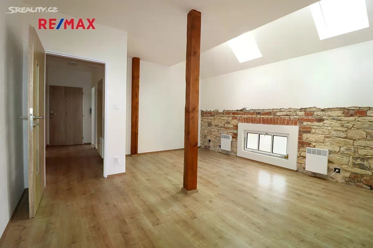 Nabídka pronájmu prostorného, nově zrekonstruovaného bytu s dispozicí 3+kk (vnitřní plocha 95 m2) s uzavřeným parkovacím stáním, který leží ve 2. NP zrekonstruované budově bývalého statku v příjemné a klidné lokalitě Prahy 5 - Zličín (ulice Hrozenkovská). Vstup do domu je z uzavřeného nádvoří. Interiér bytu se skládá z centrální chodby, dále pak velkého obývacího pokoje s kuchyňským koutem (nová kuchyňská linka se spotřebiči), dvou samostatných pokojů (jeden kokoj s uložným výklenkem), koupelny s vanou a samostatného WC s umyvadlem. Pokoje a chodba jsou osazeny kvalitní plovoucí podlahou, v koupelně a WC je příjemná moderní dlažba. Vytápění je formou elektrických topných těles, ohřev vody zajišťuje boiler. V bytě jsou nová dřevěná okna s trojskly, elektřina je v mědi. K bytu náleží parkovací stání umístěné na nádvoří. Byt leží klidné lokalitě s kompletní občanskou vybaveností a velmi dobrou dopravní dostupností do centra. Byt je inned k dispozici. Pro více informací kontaktujte makléře nabídky.
