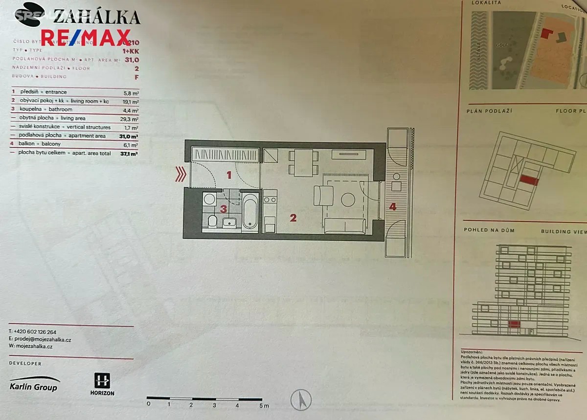 Nabízím k pronájmu moderní a světlý byt 1+kk o velikosti 31,5 m² s lodžií (5,5 m²) a sklepní kójí (3,2 m²), který se nachází ve 2. patře novostavby v prestižním rezidenčním projektu Zahálka. Byt je orientován do klidné části areálu, což zaručuje příjemné a nerušené bydlení. Dispozice bytu: vstupní chodba, koupelna s toaletou, obývací pokoj s kuchyňským koutem a vstupem na lodžii, která poskytuje ideální prostor k odpočinku. Byt je vybavený, jak je vidět na fotografiích - kuchyňská linka, lednice s mrazákem, varná deska, trouba a pračka. Kvalitní dřevěné podlahy, velkoformátová okna a elegantní koupelnové obklady podtrhují moderní charakter bytu. Technologie a komfort Velkou předností je systém rekuperace vzduchu, který zajišťuje stálý přísun čerstvého vzduchu, zlepšuje kvalitu bydlení a přispívá k úsporám energie. Projekt Zahálka patří mezi nejvyhledávanější developerské projekty v Praze. Nabízí moderní architekturu, dostatek zeleně a prostředí ideální pro aktivní životní styl. V blízkosti naleznete cyklostezku podél Vltavy, golfové hřiště Hodkovičky, sportovní centra, dětská hřiště i komunitní zahrady. Dopravní dostupnost Vynikající spojení do centra Prahy - v blízkosti je tramvajová a autobusová zastávka, stejně jako železniční spojení. Do centra města se dostanete pohodlně za 15-20 minut. Měsíční nájem 19.000 kč, zálohy za služby 2.409,-kč, ( na jednu osobu ) elektřina cca 800 -kč, bude převedena na nájemce. Kauce - 38.000 kč. Provize RK ve výši 19.000 kč. plus DPH. K nastěhování od 25.11.2025.