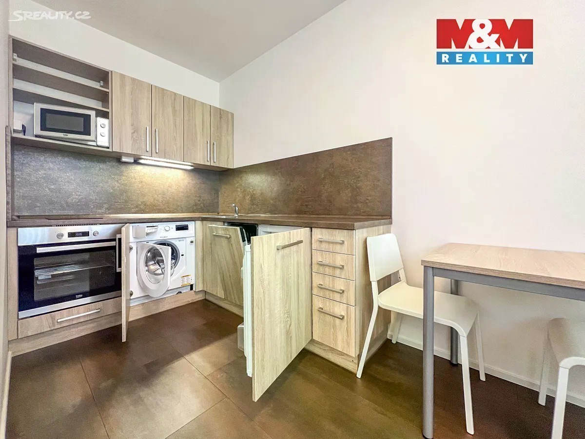 Dovoluji si Vám nabídnout k pronájmu moderní a plně vybavenou ubytovací jednotku 2+kk o ploše 34 m², v atraktivní lokalitě Praha 5 - Hlubočepy, ulice Geologická (Barrandov). Jednotka se nachází v novostavbě z roku 2019 a je připravena k okamžitému nastěhování. Dispozice zahrnuje obývací prostor s kuchyňskou linkou vybavenou spotřebiči (malá pračka a lednice, myčka, mikrovlnná trouba, elektrická trouba a dvojplotýnka), gaučem, TV stolkem, jídelním stolem a židlemi. V ložnici je postel s matrací, šatní skříň a noční stolek. Koupelna se sprchovým koutem, WC a umyvadlem. K jednotce náleží sklepní kóje v přízemí domu, k dispozici je i společná prádelna s pračkou a sušičkou. Klidná a tichá lokalita s výbornou dopravní dostupností - zastávka autobusu Slavínského přímo u domu. Jedná se o nebytový prostor upravený jako ubytovací jednotka, nelze zde mít trvalé bydliště. Ideální pro jednotlivce či pár.