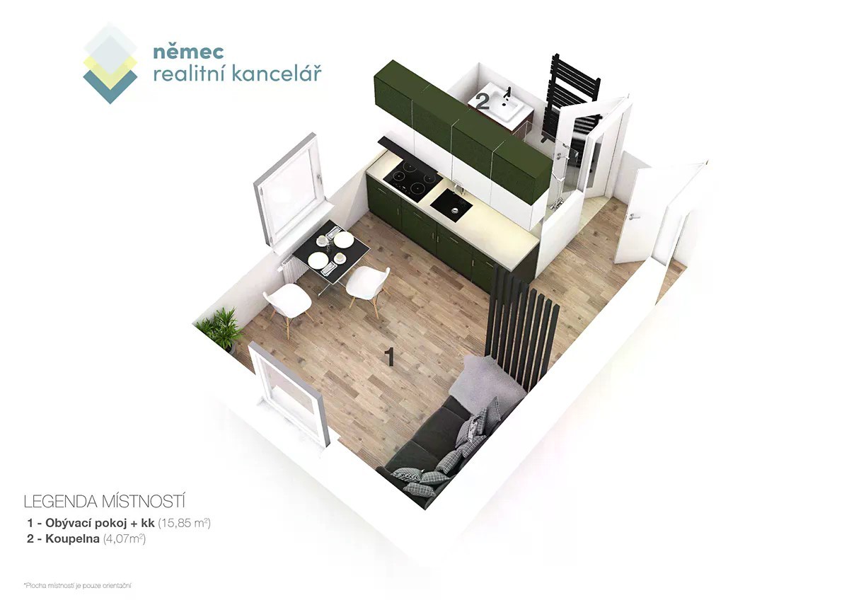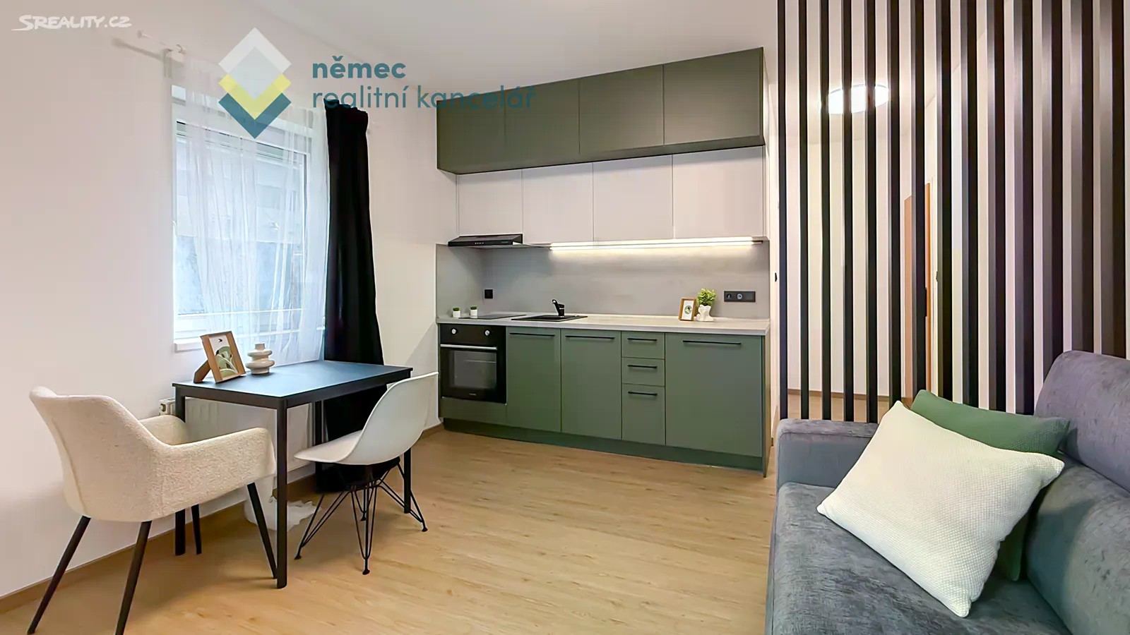 Zbrusu nově a stylově zrekonstruovaný byt (dokončeno 04/2025) o ploše 18,6 m² nabízí chytře řešené startovací bydlení pro 1 osobu, ideální jako investici na následný pronájem (byt je nyní pronajat s dlouhodobým výnosem). Jedná se o zkolaudovanou bytovou jednotku v přízemí cihlového domu ve velmi žádané části Šestajovic u Prahy. Jsou garsonky a garsonky. Troufáme si říct, že tohle je TA garsonka. Minimalistický design lahodící oku - na podlaze je rigidní vinylová podlaha v dekoru Oak, kvalitní kuchyň na míru od profesionálního truhlářského studia barevně kombinuje zelenou verde, bílou arctic a chromix stříbrnou. K tomu všemu černé doplňky, vestavné spotřebiče (hork. trouba, odsavač par, varná deska, lednice, příprava na myčku) a černý granitový dřez s baterií. Prostor přepažuje lehká lamelová stěna oddělující spací část od té jídelní. Pohodlí vám či nájemci zajistí rozkládací pohovka s plnohodnotným lůžkem a matrací s aloe vera. Z dalšího zařízení je zde jídelní stůl se židlemi. Oproti fotografiím byla nyní navíc instalovaná zrcadlová šatní skříň na míru v předsíni. Koupelna je opět v decentní kombinaci šedé, černé, bílé a dřeva. Oceníte široký walk-in sprchový kout, závěsné wc, designové topidlo a prostor pro pračku. Okna jsou opatřeny předokenními zatemňujícími žaluziemi zajišťující klidný spánek a bezpečí. Bezproblémové parkování před domem bez zón. Šestajovice jsou skvělé místo k životu - jsou zde restaurace, obchody (s velkou obchodní zónou), pošta, lékař, vinotéka, pivovar, venkovní posilovna, sportovní klub s fotbalovým hřištěm, sportovní hala, konají se zde farmářské trhy. A co nenajdete tady, je v sousedních Jirnech či Klánovicích. Přilehlý les nabízí neomezené možnosti na trávení volného času. Dopravní spojení do centra Prahy je zajištěno buď autobusy (zastávka 100 m) na metro „B“ Černý most, super je i vlakové spojení z vedlejších Klánovic, kam jezdí k nádraží pravidelné autobusové spoje. Jsme schopni spravovat i následný pronájem této bytové jednotky. Velmi nízké měsíční poplatky.