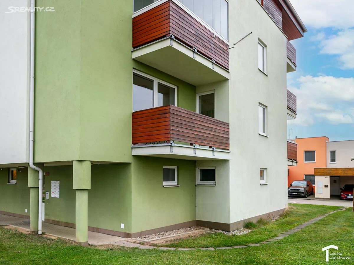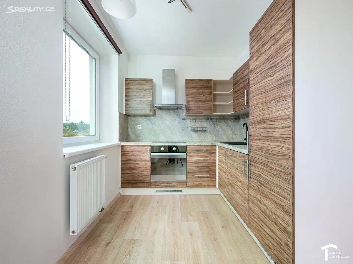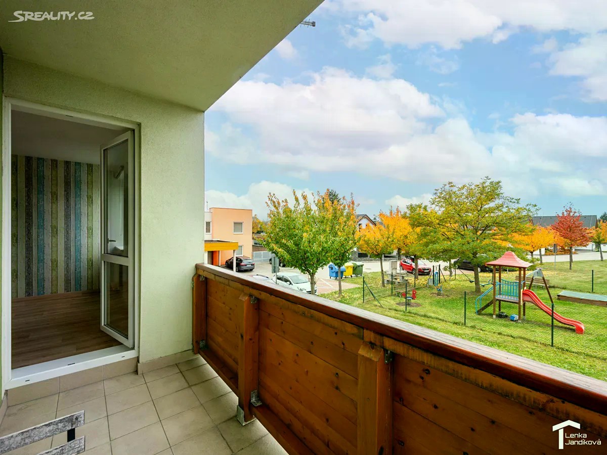 Pokud hledáte bydlení v moderním cihlovém domě, ráda bych vám nabídla k prodeji bytovou jednotku o dispozici 2+kk. Byt o celkové výměře 65m2 je umístěný ve 2.NP domu na Nemošické ulici a náleží k němu vymezené parkovací místo před domem a sklep. Po vstupu do bytu se ocitáme v prostorné chodbě, kde je k dispozici vestavěná šatní skříň. Z chodby vejdeme do koupelny. Ta je spojená s WC a je osazena vanou. Z chodby vstoupíme do světlého prostorného obývacího pokoje, na který navazuje kuchyňský kout. Kuchyňská linka má vestavěnou elektrickou varnou desku, elektrickou troubu, vestavěnou lednici s mrazákem a mikrovlnnou troubu. Z obývacího pokoje je vstup do ložnice, ze které vejdeme na lodžií. Podlahová plocha bytu je 49,4m2. Dále k němu náleží prostorný zděný sklep o výměře 10,10m2 a lodžie s výměrou 5,49m2. V pokojích je na zemi položeno nové PVC. V chodbě a koupelně je na zemi dlažba. Vytápění je řešeno pomocí centrálního plynového rozvodu v domě. Byt je v tuto chvíli nezařízený a tak si dovoluji vložit dvě fotografie s vizualizací pro představu rozmístění nábytku. Bytový dům byl kolaudovaný v roce 2011 a jeho energetická náročnost je D. V blízkosti domu se nachází oplocené dětské hřiště a dále autobusová zastávka. Dům je umístěný na okraji obce, ale s velmi dobrou dopravní dostupností jak autem, tak i městskou dopravou.