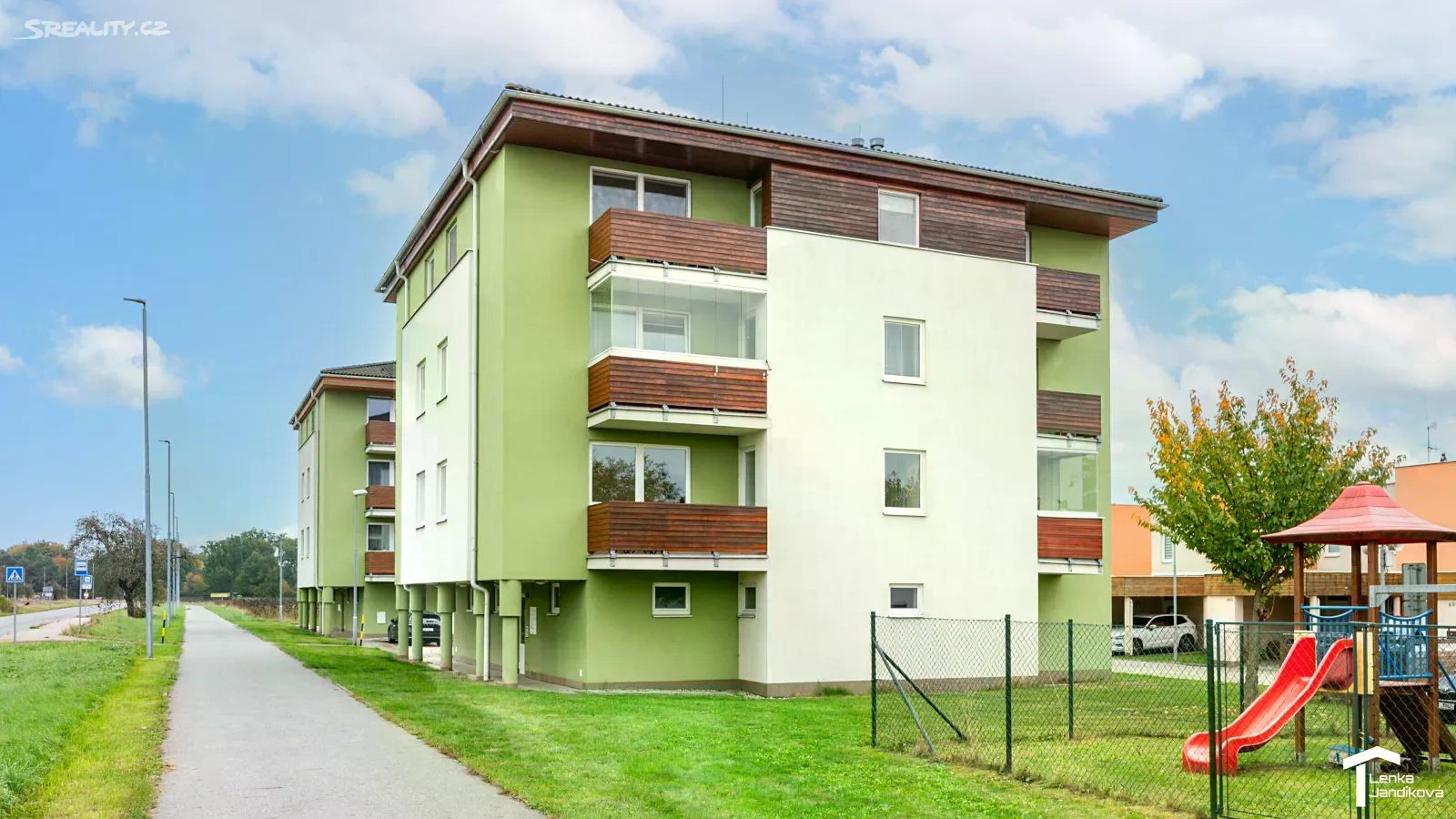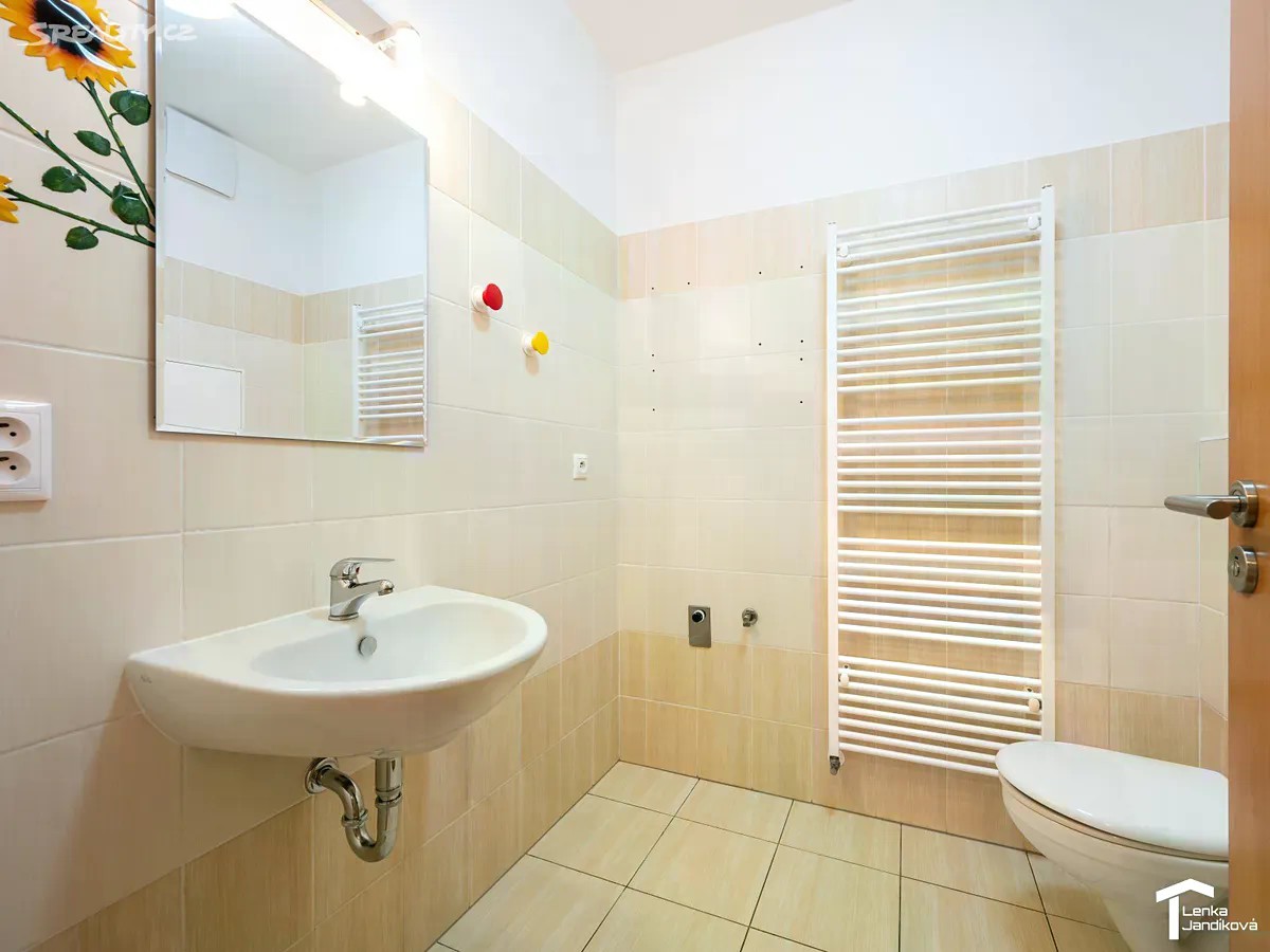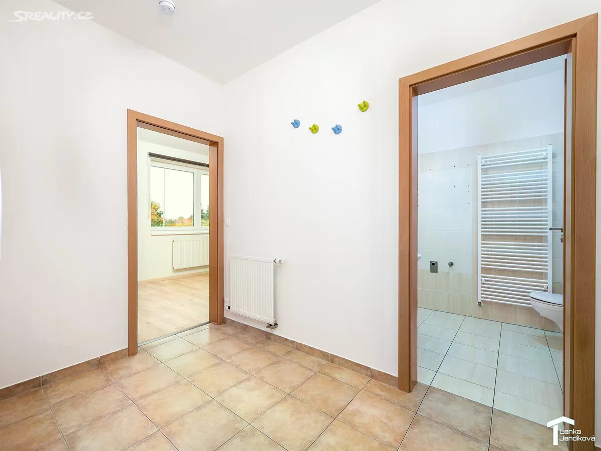 Pokud hledáte bydlení v moderním cihlovém domě, ráda bych vám nabídla k prodeji bytovou jednotku o dispozici 2+kk. Byt o celkové výměře 65m2 je umístěný ve 2.NP domu na Nemošické ulici a náleží k němu vymezené parkovací místo před domem a sklep. Po vstupu do bytu se ocitáme v prostorné chodbě, kde je k dispozici vestavěná šatní skříň. Z chodby vejdeme do koupelny. Ta je spojená s WC a je osazena vanou. Z chodby vstoupíme do světlého prostorného obývacího pokoje, na který navazuje kuchyňský kout. Kuchyňská linka má vestavěnou elektrickou varnou desku, elektrickou troubu, vestavěnou lednici s mrazákem a mikrovlnnou troubu. Z obývacího pokoje je vstup do ložnice, ze které vejdeme na lodžií. Podlahová plocha bytu je 49,4m2. Dále k němu náleží prostorný zděný sklep o výměře 10,10m2 a lodžie s výměrou 5,49m2. V pokojích je na zemi položeno nové PVC. V chodbě a koupelně je na zemi dlažba. Vytápění je řešeno pomocí centrálního plynového rozvodu v domě. Byt je v tuto chvíli nezařízený a tak si dovoluji vložit dvě fotografie s vizualizací pro představu rozmístění nábytku. Bytový dům byl kolaudovaný v roce 2011 a jeho energetická náročnost je D. V blízkosti domu se nachází oplocené dětské hřiště a dále autobusová zastávka. Dům je umístěný na okraji obce, ale s velmi dobrou dopravní dostupností jak autem, tak i městskou dopravou.