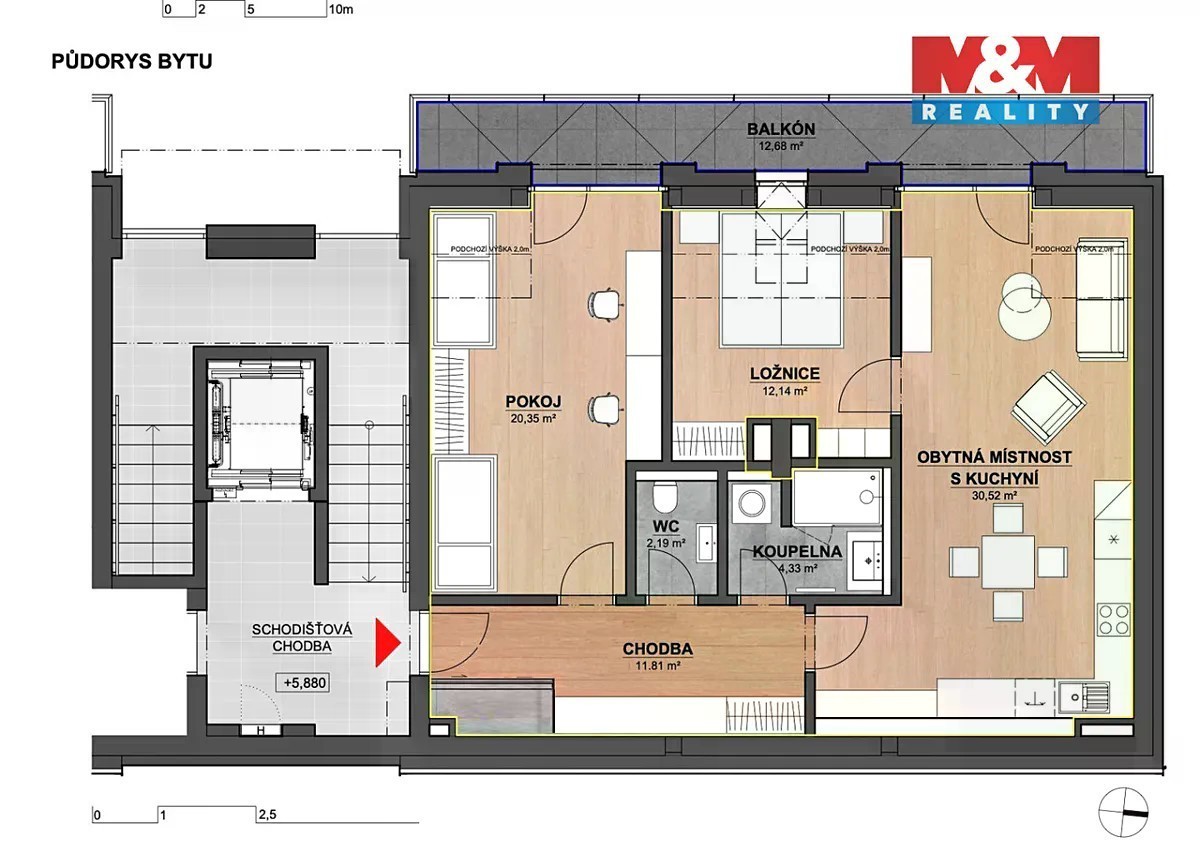 Nabízíme k prodeji prostorný a světlý byt 3+kk o užitné ploše 86,4 m², který se nachází v podkroví ve 3. podlaží cihlové novostavby z loňského roku s výtahem v centru Modřic. Díky klimatizaci, podlahovému topení a tepelnému čerpadlu v kombinaci s fotovoltaikou nabízí pro Vaše nové bydlení maximální komfort i mimořádně nízké provozní náklady. Dispozice bytu je variabilní a snadno se přizpůsobí rodině, páru i jednotlivci. K bytu náleží sklep a dvě parkovací místa. K bytu je v užívání také část střechy s vlastní fotovoltaickou elektrárnou. Možnost úhrady parkovacích stání do 6 měs. Centrum Modřic s obchody, kavárnami, školami, školkami potom už jen zjednoduší Váš život, protože vše máte doslova za rohem. Parkovat ale můžete přímo v domě, a to hned dvě auta. Modřice jsou obec s rozsáhlou nabídkou akcí a různých možností vyžití. Plocha bytu je uvedena bez balkonu, který má 12 m2. Cena bytu: 10 490 000 Kč Odměna RK: 350 000 Kč Dvě parkovací stání: 1 000 000 Kč Celková cena: 11 840 000 Kč