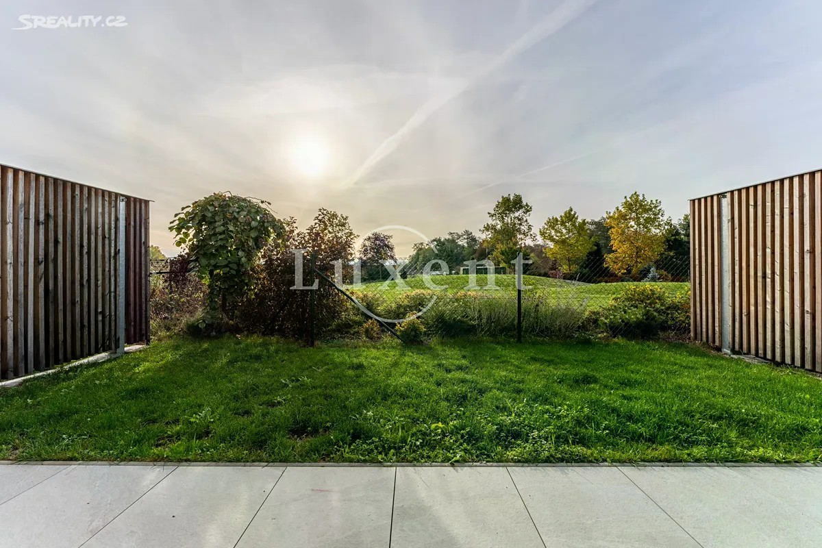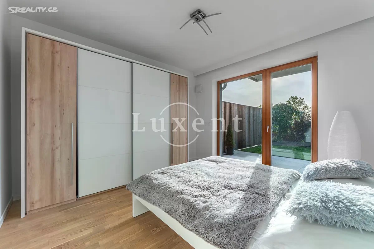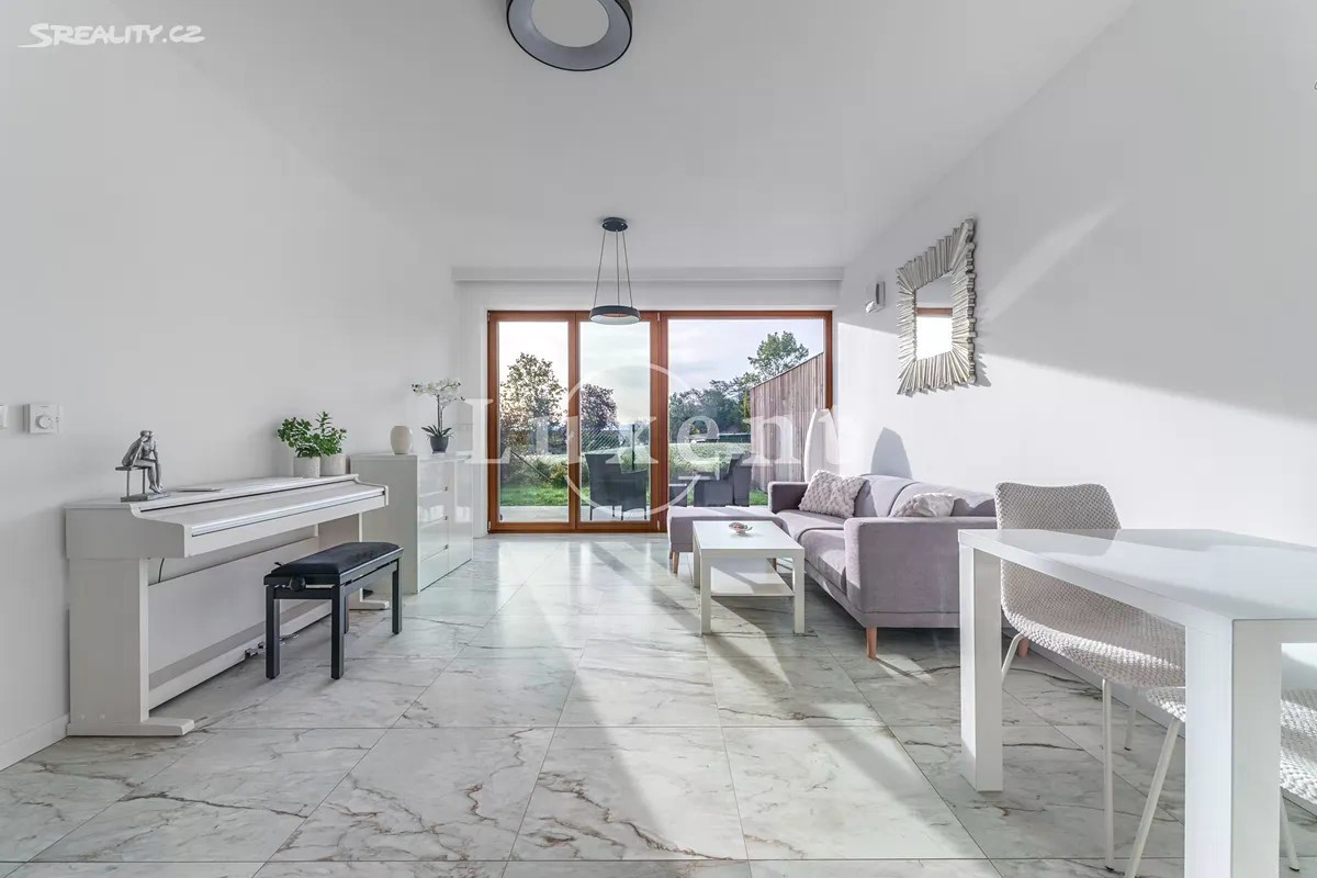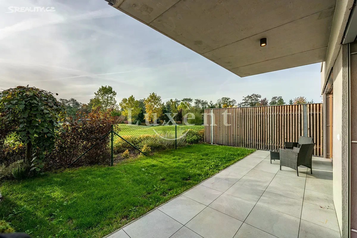 Nabízíme exkluzivně k prodeji moderní byt 2+kk o užitné ploše 56 m², s krásnou terasou a předzahrádkou, o velikosti 46,1 m², sklepem a zastřešeným parkovacím stáním. Jedná se o komorní projekt Rezidence Stříbrná zahrada v žádané lokalitě Újezd u Průhonic. Byt je situován v 1.NP, interiér zahrnuje předsíň, velkorysý vzdušný obývací pokoj s kuchyní, ložnici, prostornou koupelnu s vanou, toaletou a komoru, kde je prostor pro pračku. Oba pokoje májí přímý vstup na předzahrádku, pro příjemné posezení, ale také propojení s přírodou a výhledy do atmosferické zahrady se vzrostlou zelení a jezírkem. Byt má jednotný minimalistický a nadčasový design. V nemovitosti jsou použity kvalitní materiály, podlahové vytápění, rekuperace, velkoformátová dřevěná okna s trojskly a předokenními žaluziemi. V obývacím pokoji je umístěna klimatizační jednotka. Podlahová krytina byla zvolena v kombinaci dlažby a plovoucí dřevěné podlahy, která je v ložnici. Energetická třída je velmi úsporná B. Újezd u Průhonic je žádanou rezidenční lokalitou, která nabízí komfortní bydlení v blízkosti přírody a skvělou dopravní dostupnost do centra Prahy. Pro volnočasové aktivity je ideální nedaleký Milíčovský les s rybníky nebo Průhonický park. V okolí je kompletní občanská vybavenost, školy, školky, nákupní centra, restaurace, kavárny. Před domem je autobusová zastávka směr Opatov nebo Průhonice - Čestlice. Autem 5 minut od OC Chodov nebo nákupní zóny Čestlice.