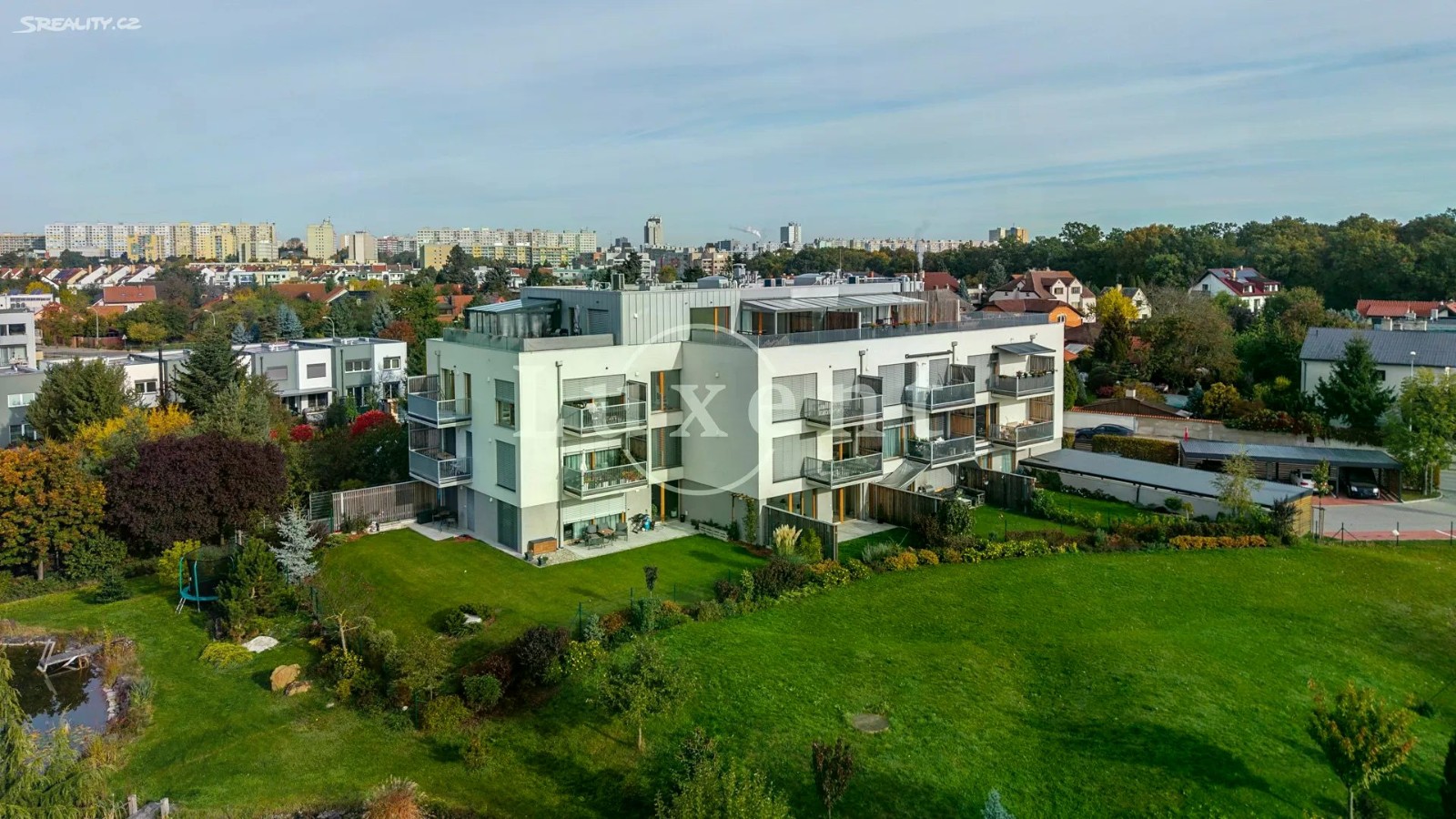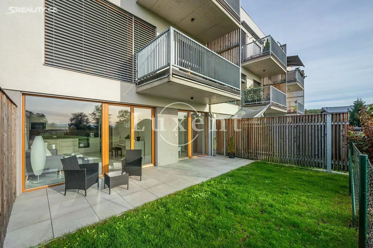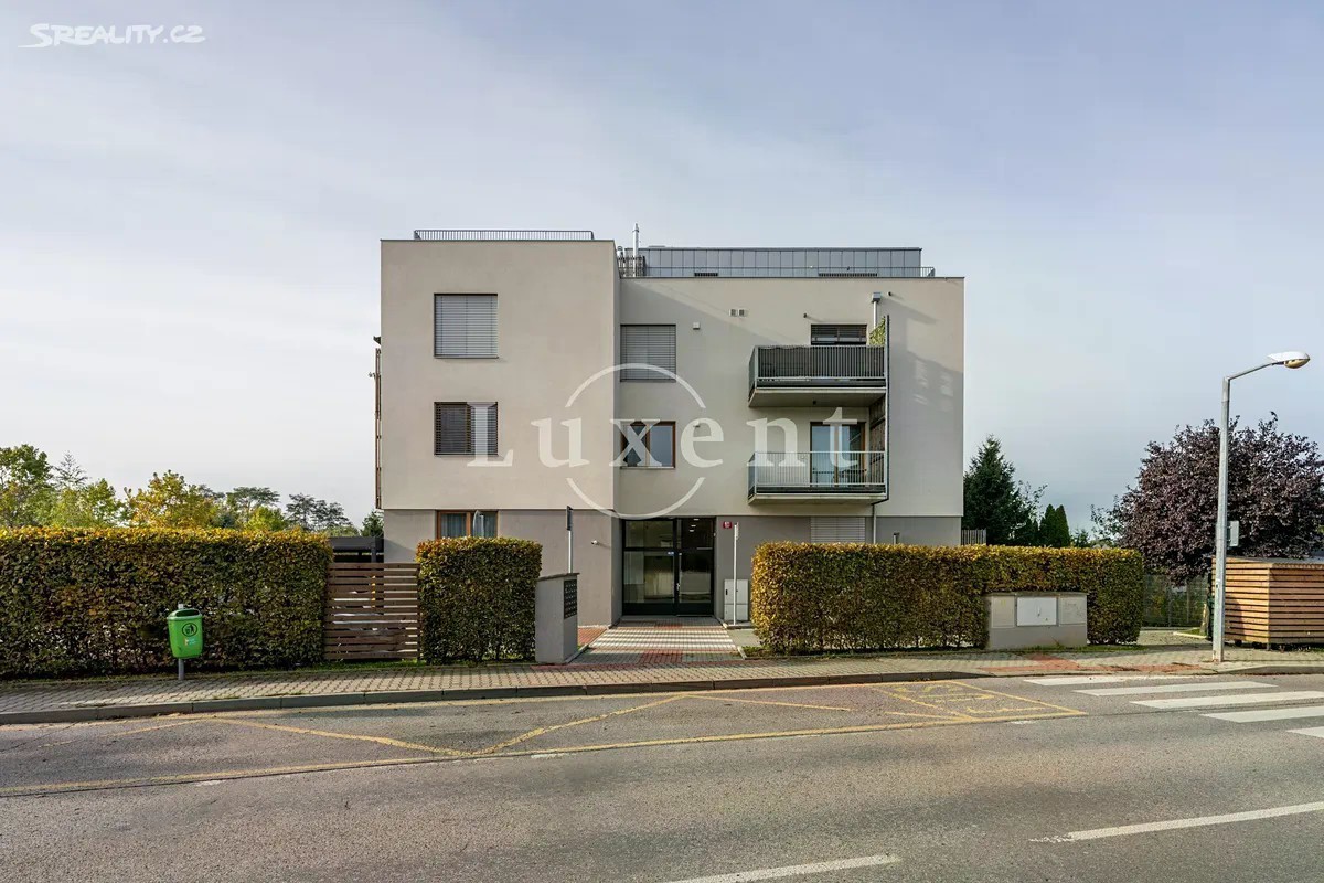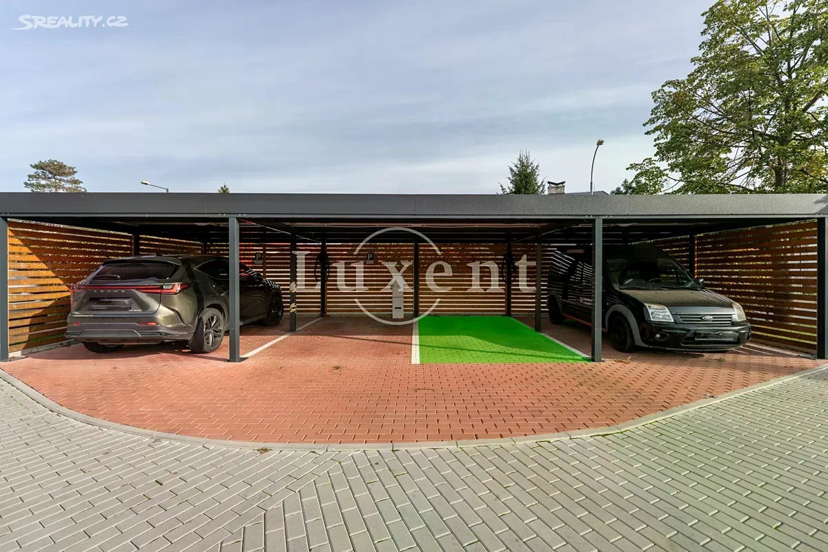 Nabízíme exkluzivně k prodeji moderní byt 2+kk o užitné ploše 56 m², s krásnou terasou a předzahrádkou, o velikosti 46,1 m², sklepem a zastřešeným parkovacím stáním. Jedná se o komorní projekt Rezidence Stříbrná zahrada v žádané lokalitě Újezd u Průhonic. Byt je situován v 1.NP, interiér zahrnuje předsíň, velkorysý vzdušný obývací pokoj s kuchyní, ložnici, prostornou koupelnu s vanou, toaletou a komoru, kde je prostor pro pračku. Oba pokoje májí přímý vstup na předzahrádku, pro příjemné posezení, ale také propojení s přírodou a výhledy do atmosferické zahrady se vzrostlou zelení a jezírkem. Byt má jednotný minimalistický a nadčasový design. V nemovitosti jsou použity kvalitní materiály, podlahové vytápění, rekuperace, velkoformátová dřevěná okna s trojskly a předokenními žaluziemi. V obývacím pokoji je umístěna klimatizační jednotka. Podlahová krytina byla zvolena v kombinaci dlažby a plovoucí dřevěné podlahy, která je v ložnici. Energetická třída je velmi úsporná B. Újezd u Průhonic je žádanou rezidenční lokalitou, která nabízí komfortní bydlení v blízkosti přírody a skvělou dopravní dostupnost do centra Prahy. Pro volnočasové aktivity je ideální nedaleký Milíčovský les s rybníky nebo Průhonický park. V okolí je kompletní občanská vybavenost, školy, školky, nákupní centra, restaurace, kavárny. Před domem je autobusová zastávka směr Opatov nebo Průhonice - Čestlice. Autem 5 minut od OC Chodov nebo nákupní zóny Čestlice.