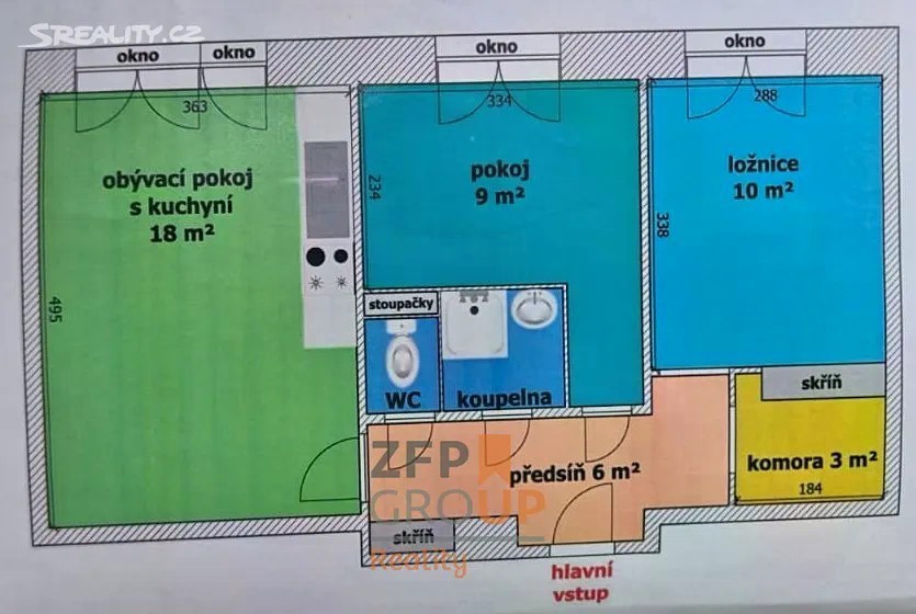 Nabízíme k dlouhodobému pronájmu velmi pěkný, světlý a prakticky řešený byt 3+kk o velikosti 50 m², umístěný ve 4. patře panelového domu s výtahem v klidné části Ostravy-Poruby. Veškerá občanská vybavenost v okolí - v blízkosti MHD (tramvaj, autobus), škol, školek, obchodů a služeb. Byt se nachází v klidné lokalitě bez negativních vlivů okolí, je tichý a příjemně prosvětlený. Dispozice bytu nabízí prostorný obývací pokoj s kuchyňským koutem, samostatnou ložnici, menší pokoj/pracovnu, koupelnu se sprchovým koutem, samostatný záchod a šatnu. Všechny pokoje jsou neprůchozí. Byt je částečně vybavený (postel, sedací souprava, skříně, barové židle). Součástí pronájmu je také společný balkon na patře (4m²). Nájemné a podmínky: Měsíční nájemné: 15 812 Kč Zálohy na služby: 2 073 Kč / měsíc (pro 1 osobu) + 500 Kč za každou další osobu Elektřina a plyn na nájemce Vratná kauce (jistota): 35 770 Kč Poplatek za zprostředkování: 14 000 Kč Byt k dispozici: od 1. 11. 2025 Byt je vhodný pro jednotlivce, pár nebo menší rodinu, kteří hledají klidné bydlení v pěkném prostředí s výbornou dostupností. Slušně vychovaní domácí mazlíčci jsou vítáni. Pro více informací nebo zájem o prohlídku mě kontaktujte.