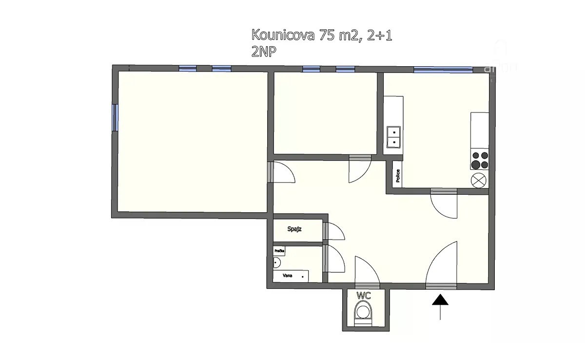 Pronájem bytu 2+1 75 m² Kounicova, Brno - Veveří