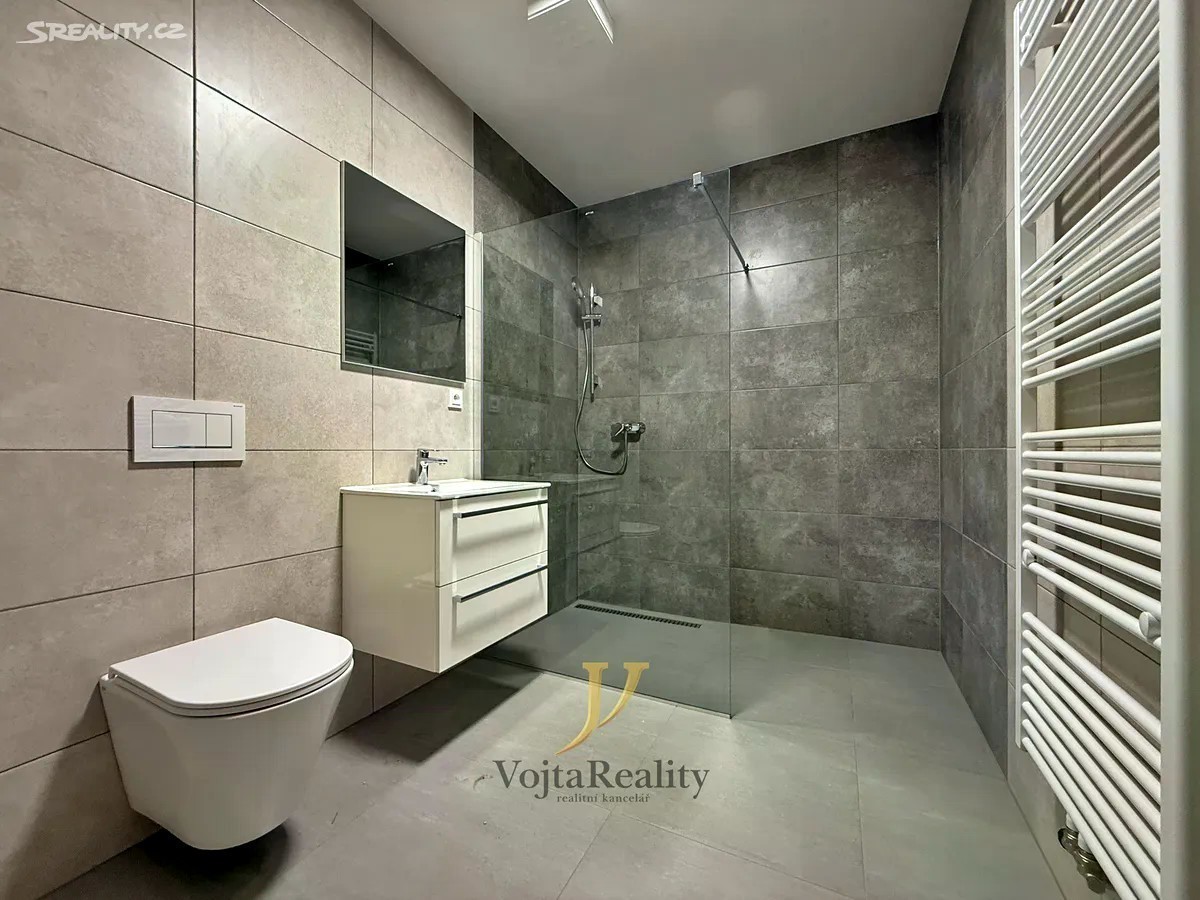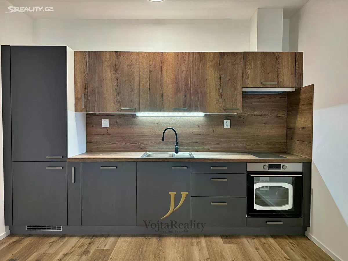 V zastoupení majitele nabízíme k pronájmu moderní ubytovací jednotku s dispozicí 1+kk o užitné ploše 57 m², která se nachází ve 2. nadzemním podlaží nově zrekonstruovaného cihlového domu v městské části Olomouc - Povel, na ulici Janského. Dispozice bytu zahrnuje vstupní chodbu, koupelnu a obývací pokoj s kuchyňským koutem. Kuchyň je vybavena novou kuchyňskou linkou se sklokeramickou varnou deskou, horkovzdušnou troubou, myčkou nádobí a lednicí s mrazicím boxem. V koupelně se nachází sprchový kout, toaleta, přípojka na pračku a elektrický topný žebřík. V bytě jsou instalována plastová okna s trojskly, vytápění je zajištěno prostřednictvím radiátorů. Díky zdařilé rekonstrukci se jednotka vyznačuje nízkými provozními náklady. Lokalita nabízí kompletní občanskou vybavenost a výborné dopravní spojení jak do centra města, tak na městský obchvat. Majitel požaduje vratnou kauci ve výši dvou měsíčních nájmů. Provize realitní kanceláři činí jeden měsíční nájem + DPH. Možnost pronájmu venkovního parkovacího stání za poplatek v docházkové vzdálenosti od budovy. Zálohy na energie činí 2 500,-Kč/měsíc při jedné osobě, případně 3 000,- Kč/měsíc při dvou osobách. Byt bude k nastěhování od 1.11.2025. V případě zájmu o bližší informace nebo sjednání prohlídky kontaktujte, prosím, makléře.