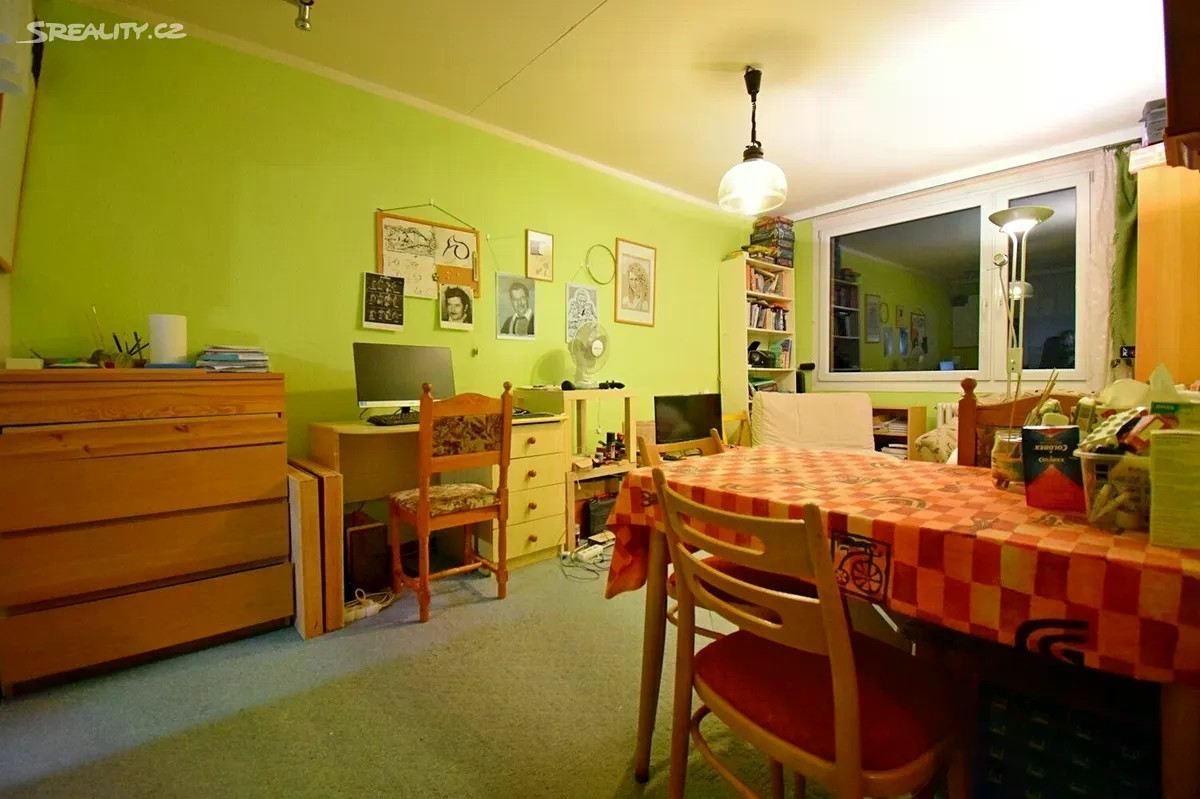 Částečně zařízený byt 2+kk pět minut chůze od stanice metra Háje. V předsíni se nacházejí šatní skříň, v ložnici postel s úložným prostorem. Koupelna s malou vanou je společná s WC a vybavená pračkou. U obývacího pokoje se nachází pohledově oddělený kuchyňský kout, u něhož se nachází malý jídelní stůl se dvěma židlemi. Skvělá dopravní dostupnost i občanská vybavenost. Velkou předností je nedaleký Milíčovský háj i rekreační oblast Hostivařské přehrady. K nastěhování od 1.12.2025, po dohodě možno i dříve.