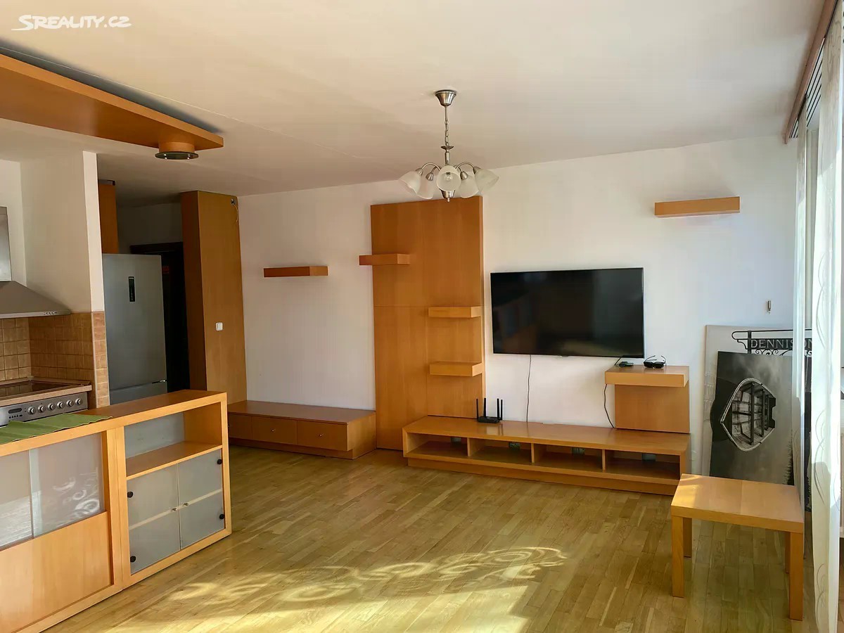 Dovolujeme si Vám nabídnout příjemný, velmi světlý byt, který vznikl rekonstrukcí z bytu 3+kk. Byt se skládá z velkého sluncem zalitého obývacího pokoje, který spojuje obytný prostor s prostorným a dobře vybaveným kuchyňským koutem se všemi spotřebiči. Dále je zde prostorná ložnice spojená s pracovnou a úložnými prostory. Velká koupelna s vanou, sprchou, umyvadlem a odděleným WC. K dispozici pračka. Dále oredsin s množstvím úložných prostor. K bytu náleží sklepní koje a komora přímo proti bytu. Byt se pronajímá částečně zařízený, viz foto. V okolí veškerá občanská vybavenost: Billa, Albert, škola, školka, obchody a restaurace. Volné ihned! Platí se provize ve výši nájmu 21000 Kč.