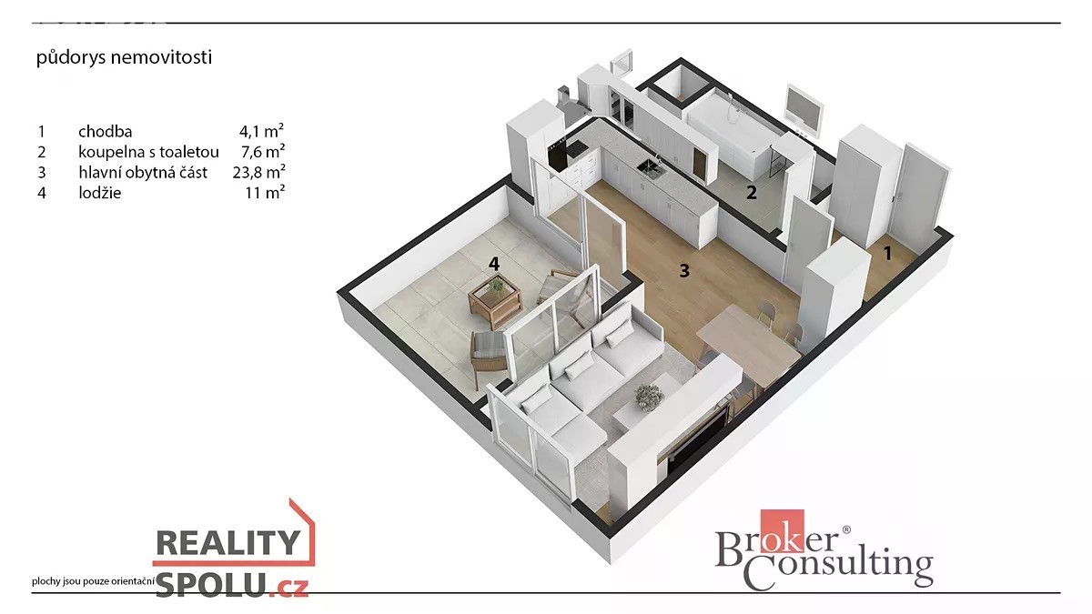 Hledáte moderní a neskutečně útulné bydlení v klidné části Prahy s nízkými náklady na provoz a možností mít také kus otevřeného prostoru jen pro sebe? Jste tu správně! Rád bych Vám nabídnul k podnájmu bytovou jednotku o dispozici 1+kk o celkové velikosti 44.4m2, ve které je zahrnuta také zasklená lodžie s krásnými 9.7m2. Byt se nachází v ulici Ondrákové, na okraji Barrandova v bytovém domě z roku 2023 ve třetím patře z celkových pěti. Nečekejte obyčejný byt, ale opravdu kvalitní a vkusně vybrané materiály pro komfortní bydlení. Už při příjezdu je Vás potěší, že se zde neplatí žádné parkovné a místa je tu vždy dostatek. Domovní dveře otevřete pohodlně čipem a do třetího patra Vás vyveze výtah. Po vstupu do bytu se ocitnete v zádveří a následně se dostanete do obývacího pokoje, který je propojený s kuchyní na míru vybavenou vestavnými spotřebiči. Z té je pak vstup na zasklenou lodžii, kde můžete trávit volný čas při západech slunce či kdykoliv během dne a počasí Vás zde neohrozí. Celý prostor je navíc plný denního světla, jelikož je na každé stěně veliké okno, stísněně se zde tedy rozhodně cítit nebudete. Budete-li hledat koupelnu a toaletu, najdete je po pravé straně od zádveří a rozkládají se na ploše 8m2! Jedná se o nový, velice vkusně a moderně zařízený byt ( bude vybaven pouze kuchyňskou linkou s vestavnými spotřebiči a jídelním barem) a také lokalita je velice příjemná. Překvapí Vás prostor, potěší měsíční náklady a okouzlí komfort bydlení i společných prostor. PŘEHLED PLATEB: - měsíční nájemné činí 19.900,- - měsíční náklady na služby jsou 3.200, - (S+T voda, topení, elektřina, odpady, výtah, spol. el. aj.) - celková měsíční platba je tedy 22.700,- - vratná kauce ve výši 45.000 - provize ve výši 19.900,- bez DPH (24.079,- vč. DPH) BYT JE K NASTĚHOVÁNÍ PO DOMLUVĚ V PRŮBĚHU LISTOPADU! V okolí naleznete, kromě veškeré občanské vybavenosti, také skvělou kavárnu, minimarket, malý parčík přímo pod okny, tramvajovou zastávku. Nedaleko se nachází také Prokopské údolí, kde naleznete místo pro odpočinek, a to nejen pasivní, ale také aktivní - procházky, jízda na kole, běh., prostě cokoliv, co Vás baví. Více informací rád poskytnu telefonicky, případně je možné domluvit si osobní prohlídku Vašeho budoucího bydlení, které Vás nadchne svým umístěním v klidné moderní části Prahy a nízkými náklady. S pojištěním nemovitosti Vám rádi pomohou naši finanční specialisté, ve které vložilo důvěru již více než 650.000 spokojených klientů.
