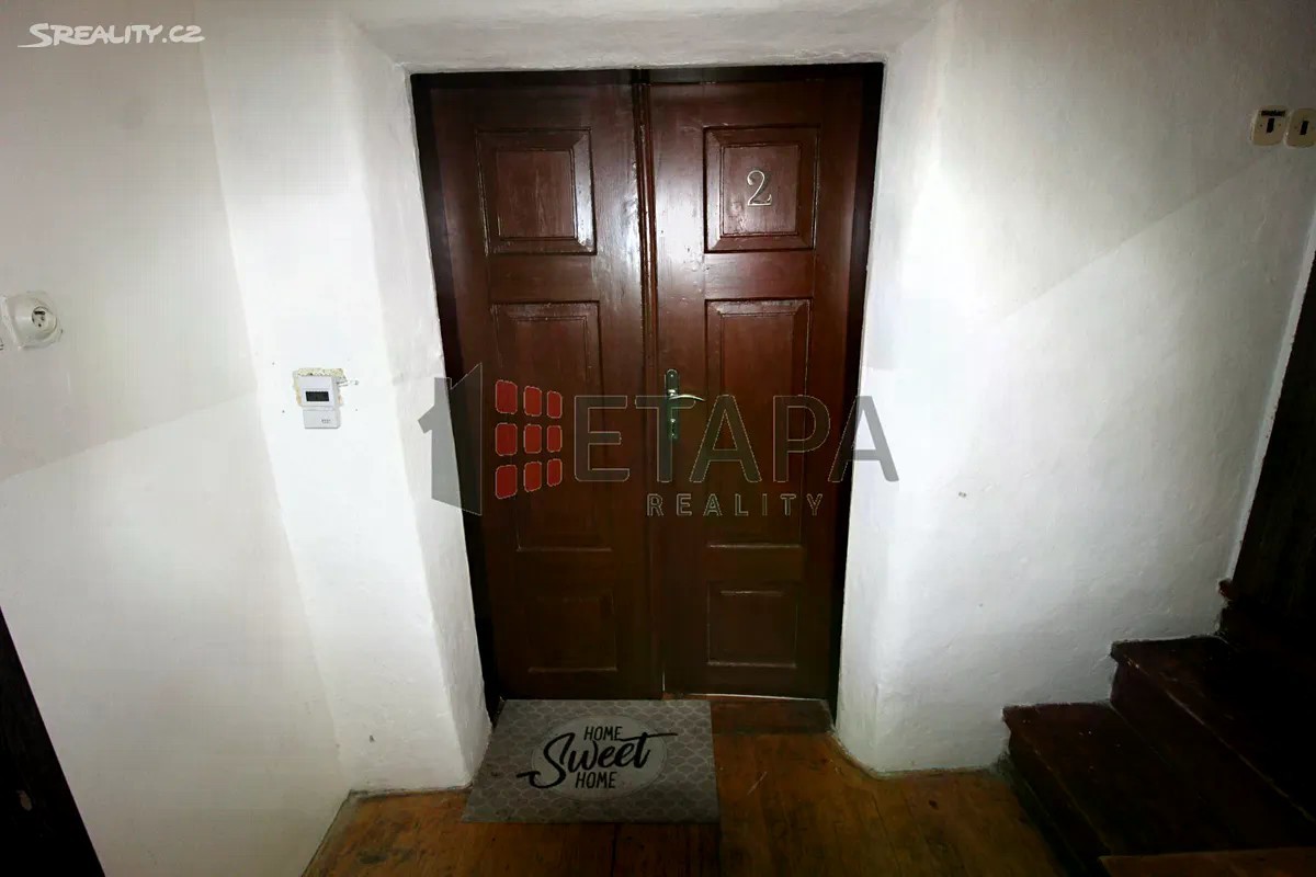 Nabízíme k pronájmu byt o dispozici 1+1 s komorou v prvním patře cihlového domu, který se nachází v centru města v ulici Hroznová a to pár metrů od Černé věže. Bytová jednotka je částečně zařízená a je v původním stavu. V kuchyni je kuchyňská linka, sporák se sklokeramickou deskou a elektrickou troubou, mikrovlnná trouba, stůl a židle. V pokoji je k dispozici starší nábytek a to včetně manželské postele a televizor. V bytě je i praktická komora. Koupelna s vanou, umyvadlem a toaletou není součástí bytu a nachází se v mezipatře domu. Koupelna je vybavena i pračkou. Podlahová plocha jednotky je 33 m² + koupelna. Měsíční nájemné je 6500 Kč + 2550 Kč zálohy na energie. Vratná kauce je ve výši 9000 Kč a provize RK je 7000. Byt je volný ihned a je vhodný max. pro dvě osoby. Pro více informací nebo domluvení prohlídky kontaktujte makléře. Majitel si vyhrazuje právo výběru nájemce.