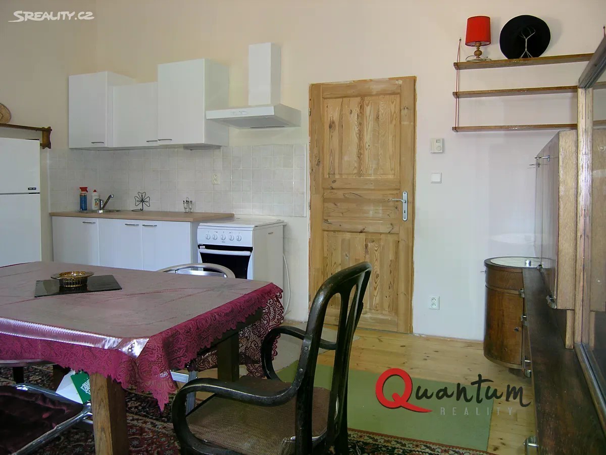 Exkluzivně nabízíme k pronájmu světlý, jihozápadně orientovaný byt 1+kk o ploše 29 m2, v 1. patře dvoupatrové budovy v příjemné lokalitě Prahy-západ, v Kabátech u Jílového. Byt je v dobrém, udržovaném stavu a nabízí se zařízený. Je zde kuchyňská linka s el. sporákem a lednicí s mrazákem, masivní dobový sekretář a jídelní stůl se židlemi. Na fotografiích je i pianino, menší dobová skříň a rozkládací pohovka - po dohodě je možné bez tohoto nábytku. V koupelně společně s WC je rohová vana a pračka, na chodbě velká šatní skříň. Podlahy jsou dřevěné, dlažba a koberec, okna plastová. Vytápění elektrické - deskové sálavé panely, el. bojler na ohřev vody. Budova, původně užívána jako hotel, prošla před pár lety kompletní rekonstrukcí - plastová okna, střecha, zateplená fasáda, interiéry. Lze využívat společný sklep a k příjemnému posezení i společnou zahradu u domu. K bytu náleží 1 venkovní parkovací stání. Jedná se o krásnou lokalitu se spoustou zeleně. Dostupnost Prahy - autem cca 30 min., busem 45 min. k metru Budějovická (autobusová zastávka 5 min. chůzí od domu) nebo vlakem cca 1 hodinu na Hlavní nádraží (nádraží v blízkosti domu). Nízké měsíční poplatky 600 Kč / 1 osoba + převod el. energie na nájemce (cca 2.500 Kč - 3.000 Kč). Kauce ve výši 15.000 Kč. K nastěhování od 1.11.2025.