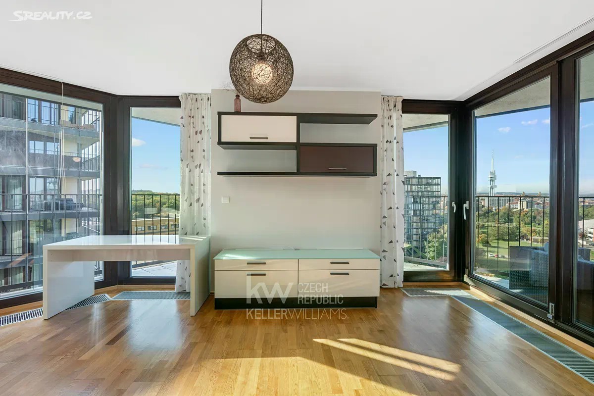 Nabízíme k pronájmu prostorný a nadstandardně řešený byt o dispozici 2+kk a celkové výměře 77,4 m², který se nachází v 10. nadzemním podlaží moderní rezidence na ulici Pitterova, v oblíbené pražské čtvrti Žižkov. Byt je designově i funkčně promyšlený do posledního detailu. Díky důmyslnému uspořádání nabízí dostatek úložných prostor a působí mimořádně vzdušně a elegantně. Dominantou bytu je světlý obývací prostor s kuchyňským koutem, který je vybaven moderní linkou a kvalitními spotřebiči. Z obývací části je přímý vstup na prostornou terasu 35 m², jež nabízí klidné místo k odpočinku s krásným výhledem na město. Zálohy na služby 7 130, - Kč Elektřina bude přepsáná na nájemce K bytu náleží sklep a parkovací stání za poplatek 2000,- měsíčně. Rezidence se nachází v prestižní lokalitě pražského Žižkova, v těsné blízkosti parku Parukářka a Vítkov, které nabízejí ideální prostor pro relaxaci či sport. V okolí je veškerá občanská vybavenost - obchody, restaurace, kavárny, školy i služby. Výbornou dopravní dostupnost zajišťuje blízkost stanice metra A Flora a několik tramvajových linek, díky nimž se do centra Prahy dostanete během několika minut. Tento byt představuje ideální volbu pro ty, kteří hledají komfortní a stylové bydlení v žádané lokalitě s vynikající dostupností i příjemnou atmosférou. V případě zájmu o prohlídku mě neváhejte kontaktovat.