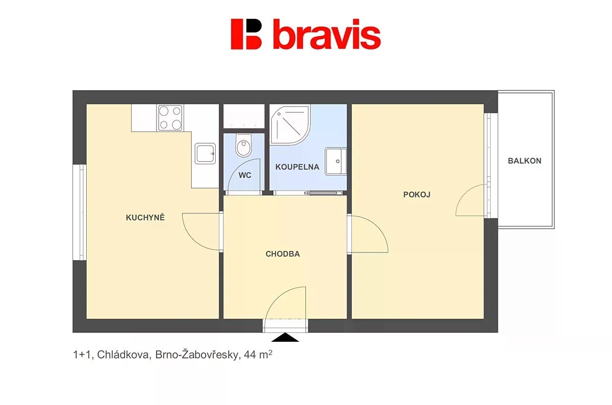 Pronájem bytu 2+kk 44 m² Chládkova, Brno - Žabovřesky