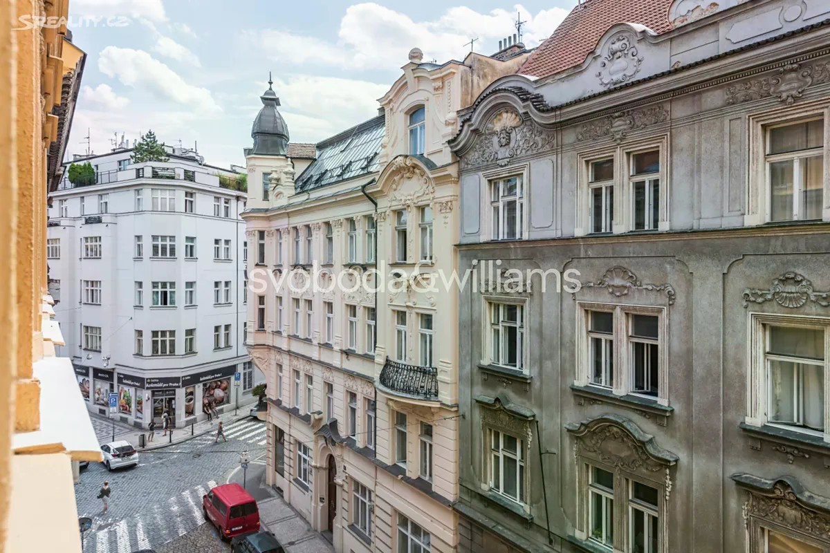 Velmi prostorný byt s balkónem zaujímá celé 2. podlaží kompletně zrenovovaného historického domu se zachovanými původními architektonickými prvky a novým výtahem v klidné ulici v historickém centru Prahy, pár kroků od nábřeží Vltavy, Žofína a Národního divadla. Dispoziční uspořádání nabízí jihozápadně orientovaný obývací pokoj částečně propojený s kuchyní a jídelnou, 2 ložnice, koupelnu s vanou i sprchovým koutem, 2 samostatné toalety a vstupní halu. Ložnice s balkónem směřuje na severovýchod do klidného vnitrobloku. Světlý interiér bytu působí díky vysokým stropům mimořádně vzdušně, dřevěná špaletová okna, kvalitní parkety a kazetové dveře zdůrazňují jeho historický charakter. Součástí vybavení je kuchyňská linka. Vytápění zajišťuje vlastní plynový kotel. Bydlení v samotném srdci města, na dohled od Národního divadla, přináší pestrý výběr kaváren, bister, restaurací, obchodů, butiků i nákupních center. Atmosféru doplňuje bohatý společenský a kulturní život. K odpočinku poslouží klidné prostředí nedalekého parku na Střeleckém ostrově nebo rozlehlé Petřínské sady na opačném břehu Vltavy. Pohodlné spojení po celé Praze zajišťují tramvajové linky i stanice metra Národní třída a Karlovo náměstí. Jednota je aktuálně pronajata za obvyklé tržní nájemné. Podlahová plocha 121,4 m2, balkón 1,7 m2.